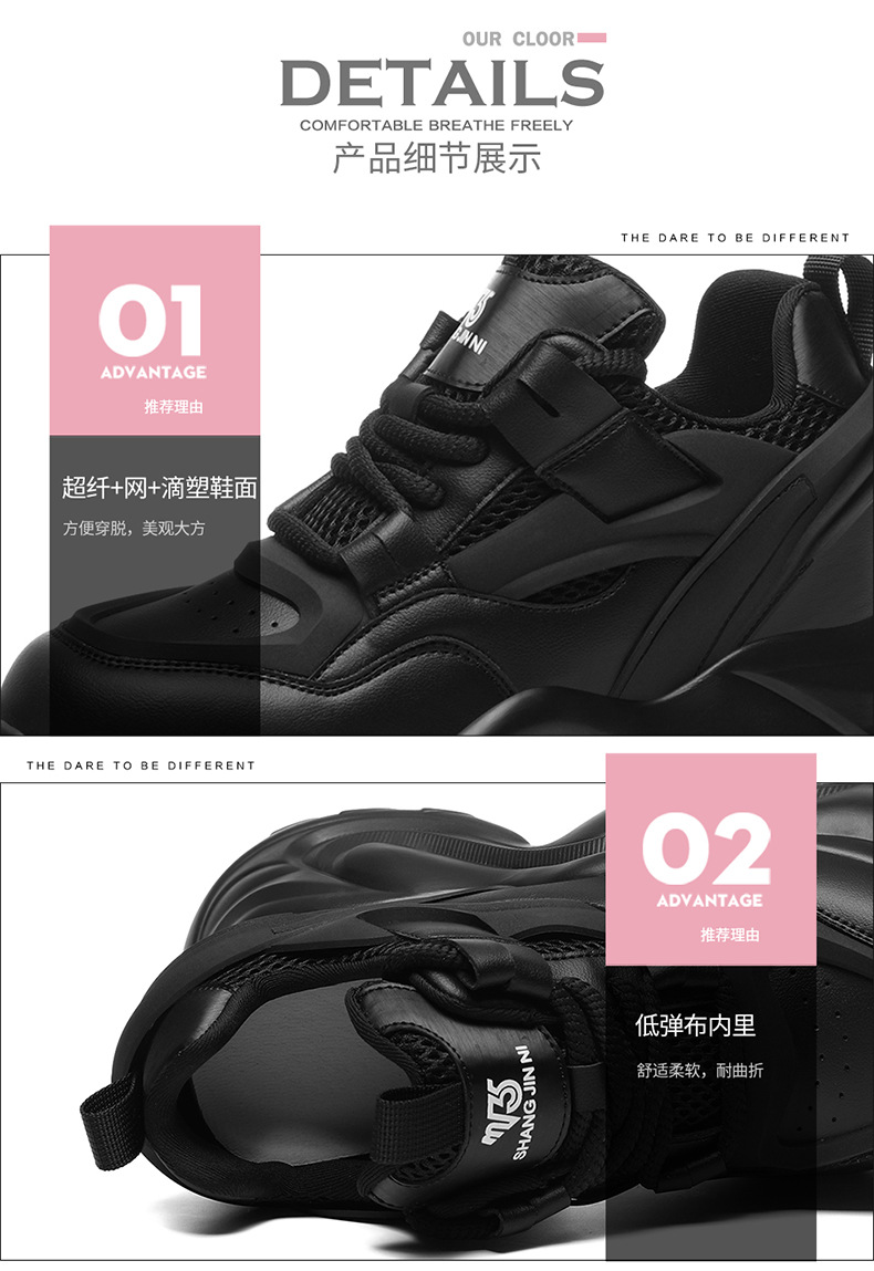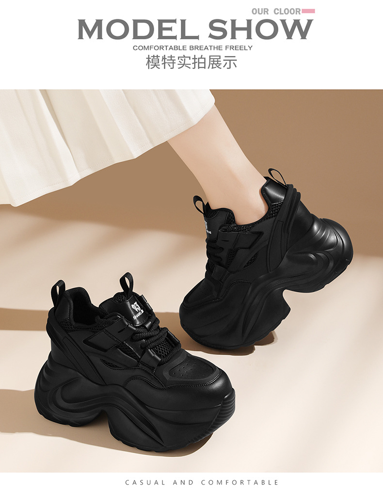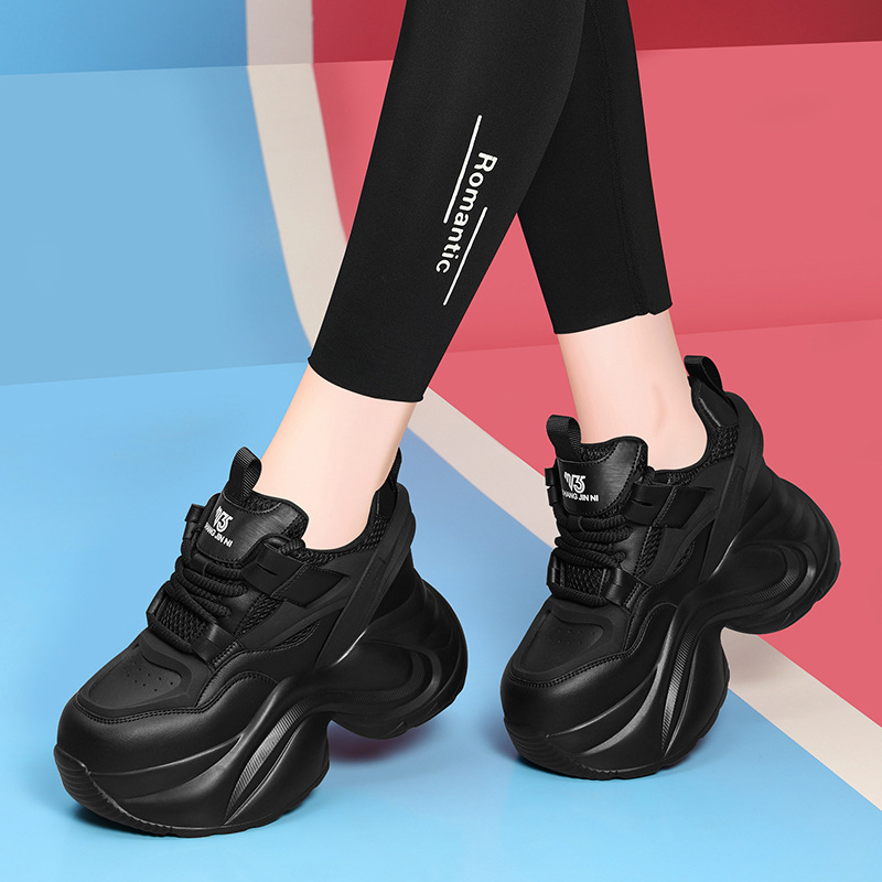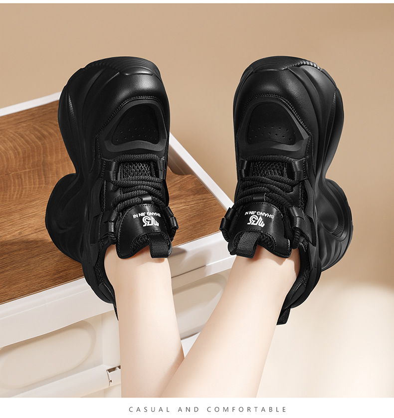 스포츠화 블랙 두꺼운 밑창 아빠 신발 2025 신상 키높이 여성화 가볍고 다용도 캐주얼 여성 신발스토어 가기