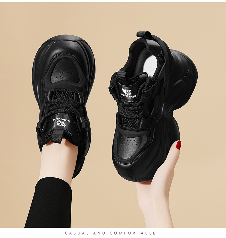 스포츠화 블랙 두꺼운 밑창 아빠 신발 2025 신상 키높이 여성화 가볍고 다용도 캐주얼 여성 신발