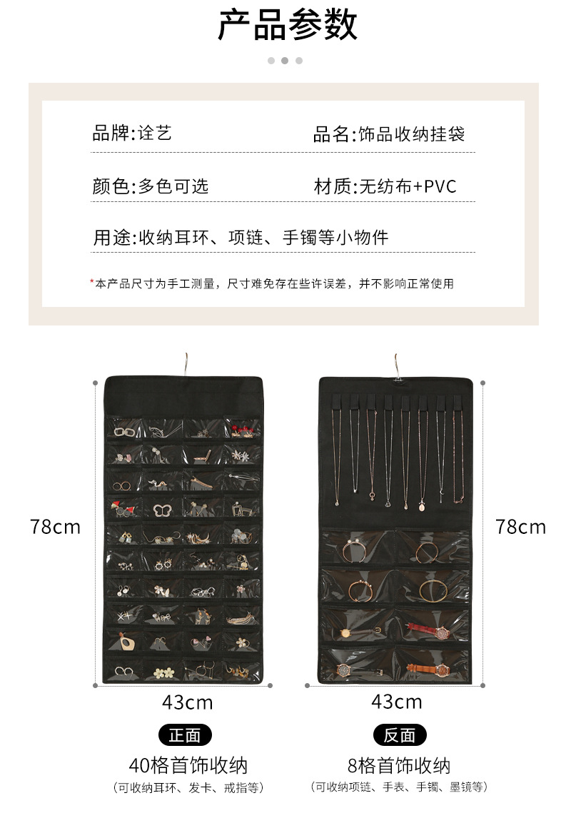 80 그리드 보석 보관 가방 가정용 양면 부직포 보석 조직 가방 귀 스터드 작은 물체 방진 보관 가방스토어 가기