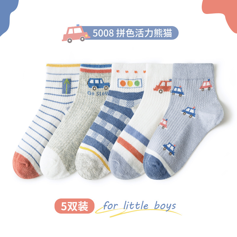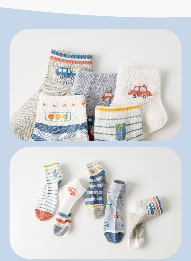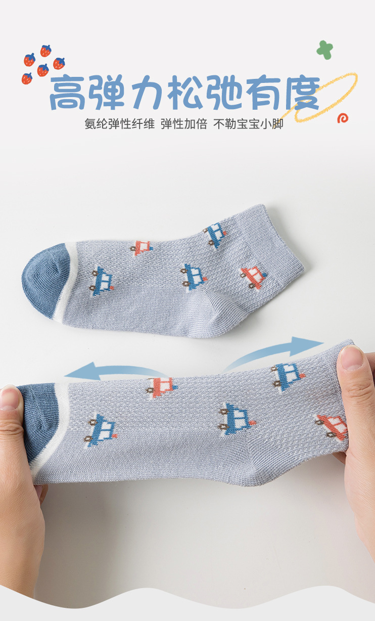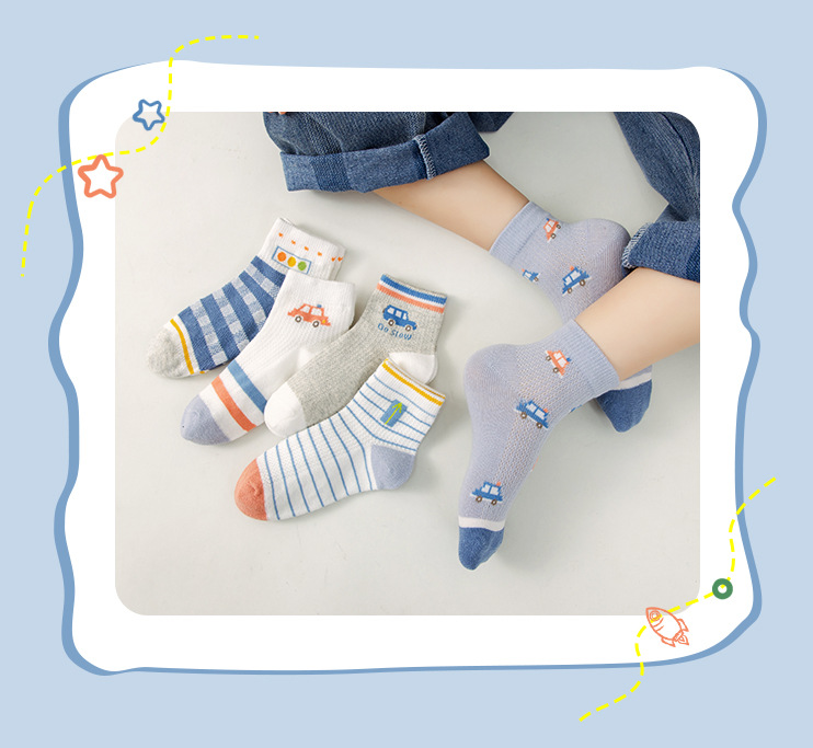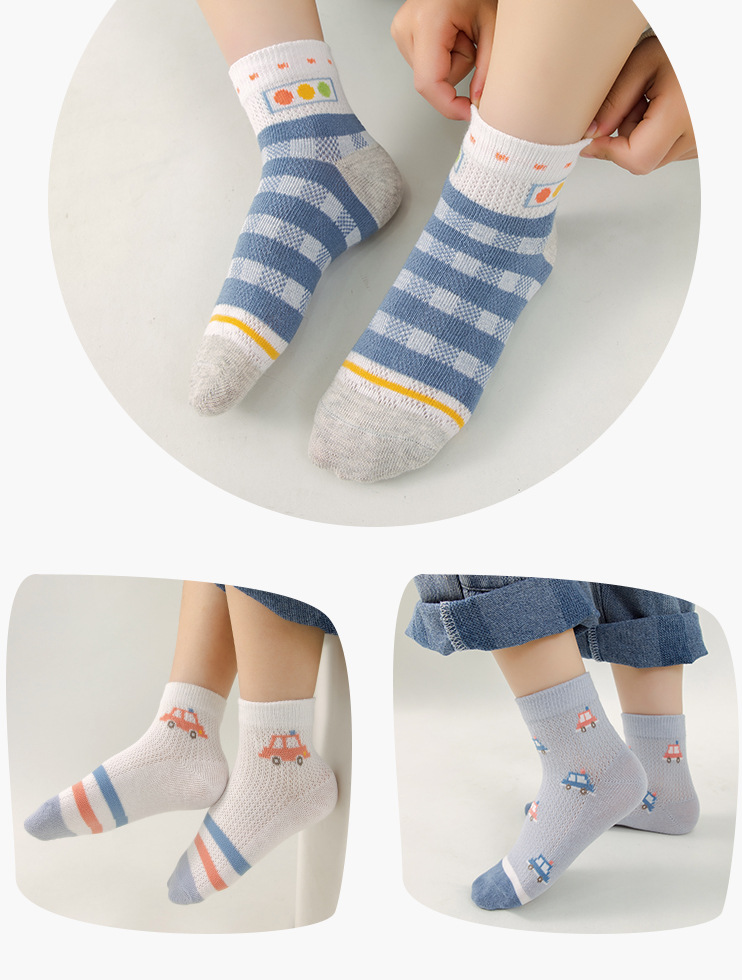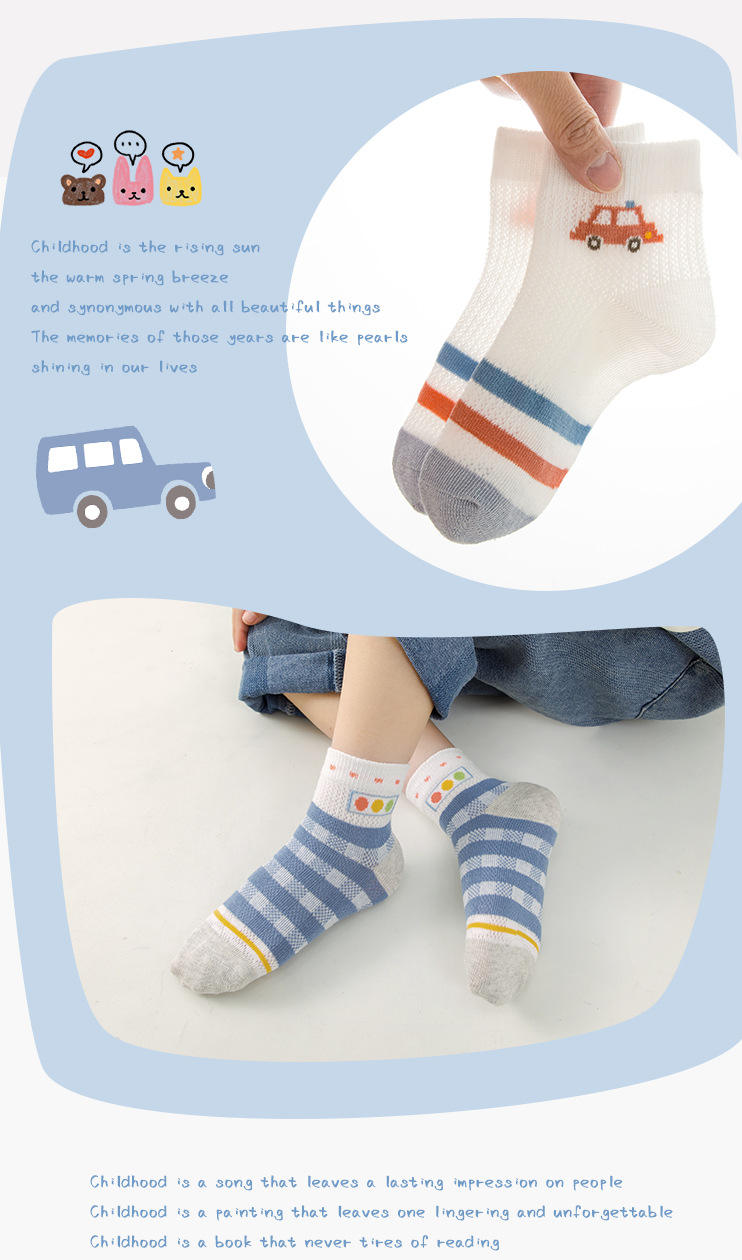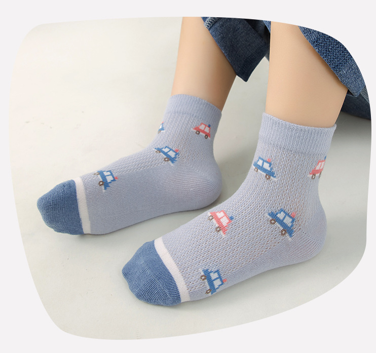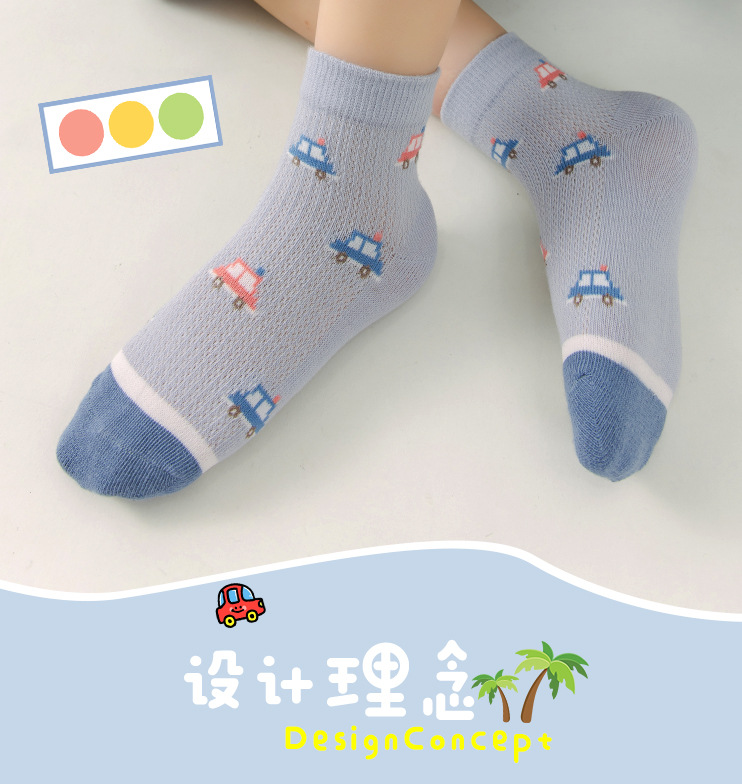 봄과 여름 어린이 양말 새로운 메쉬 통기성 만화 자동차 소년 면화 양말 학생 양말 귀여운 한국 어린이 양말