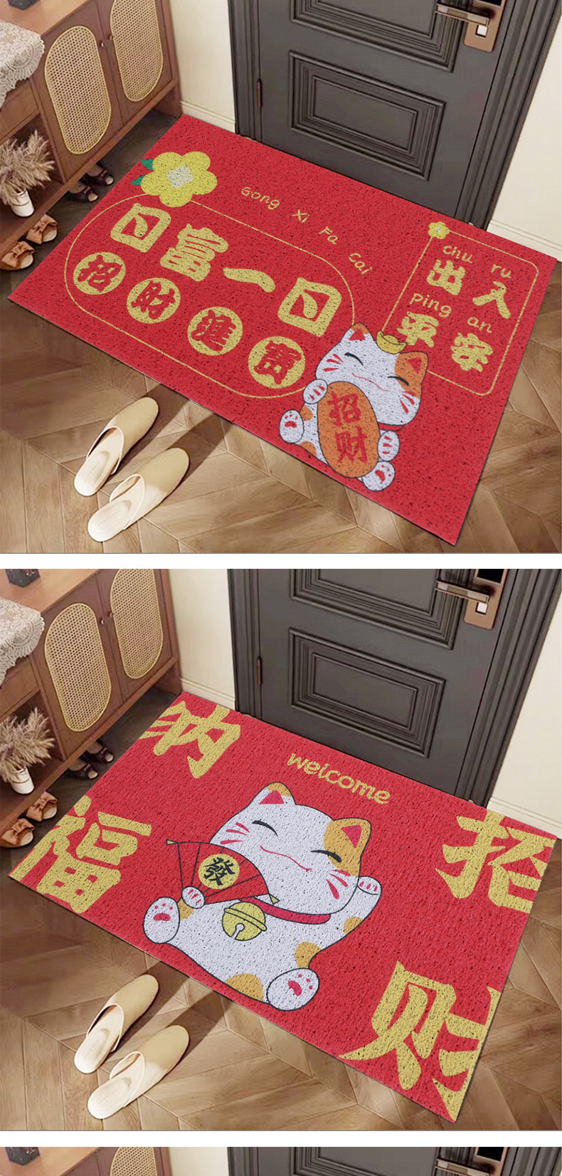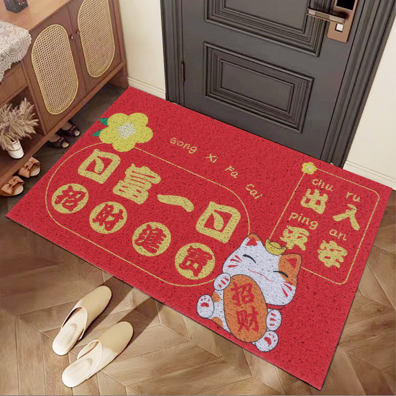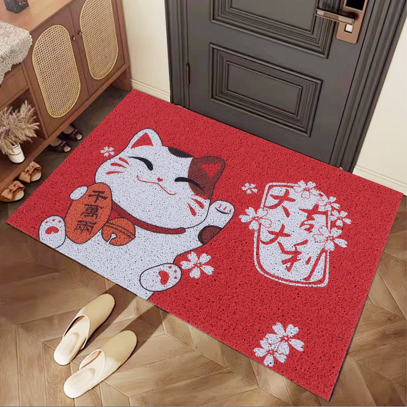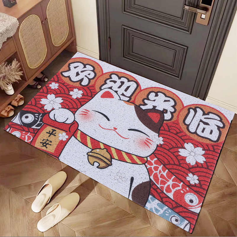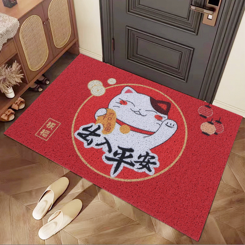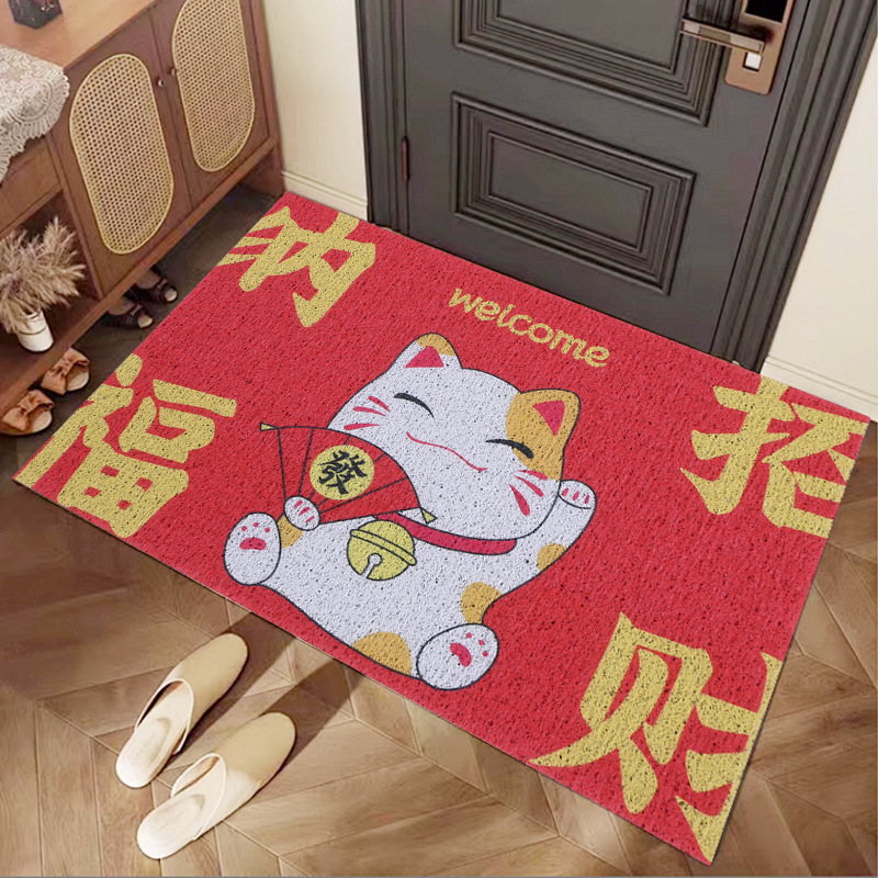 맞춤형 축제 행운의 고양이 빨간색 바닥 매트 입구 문 결혼식 집들이 문 스크래치 방지 미끄럼 방지 발 매트 문 카펫스토어 가기