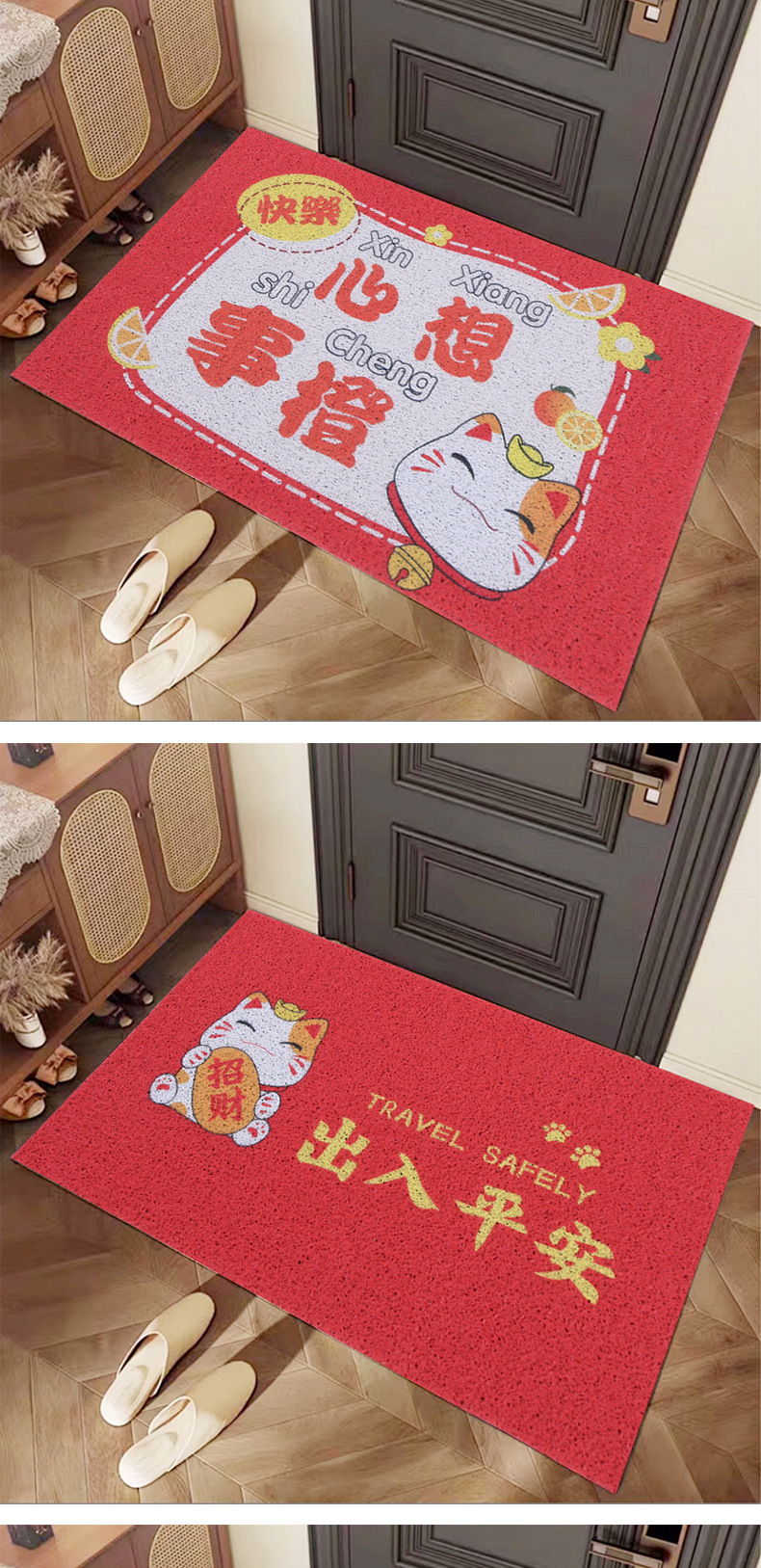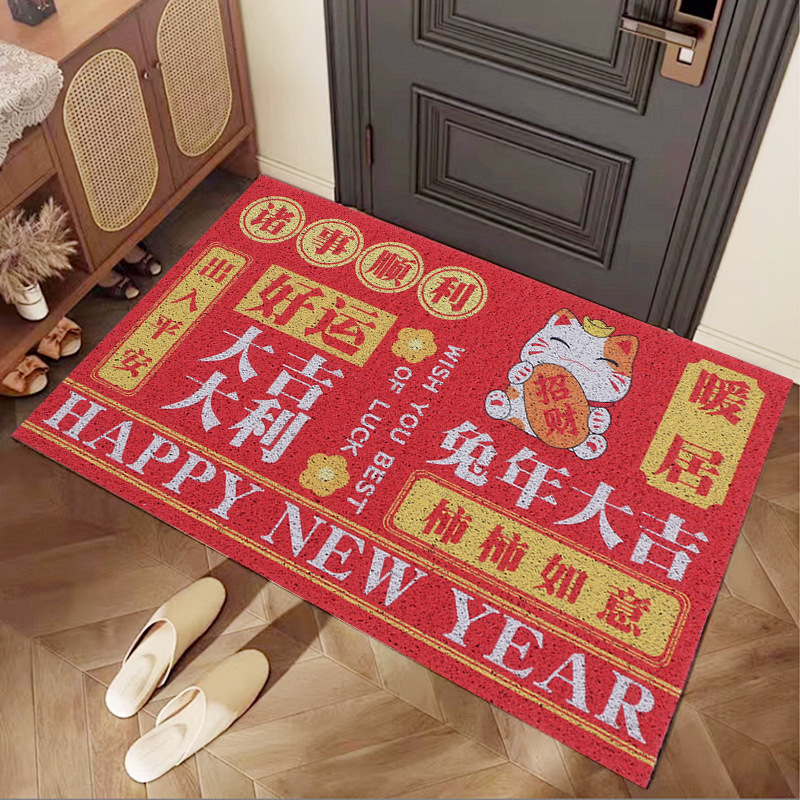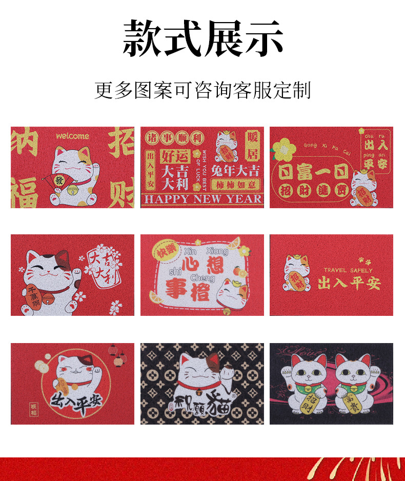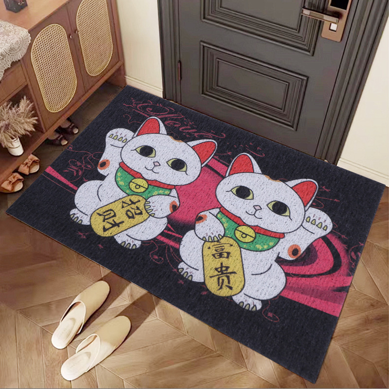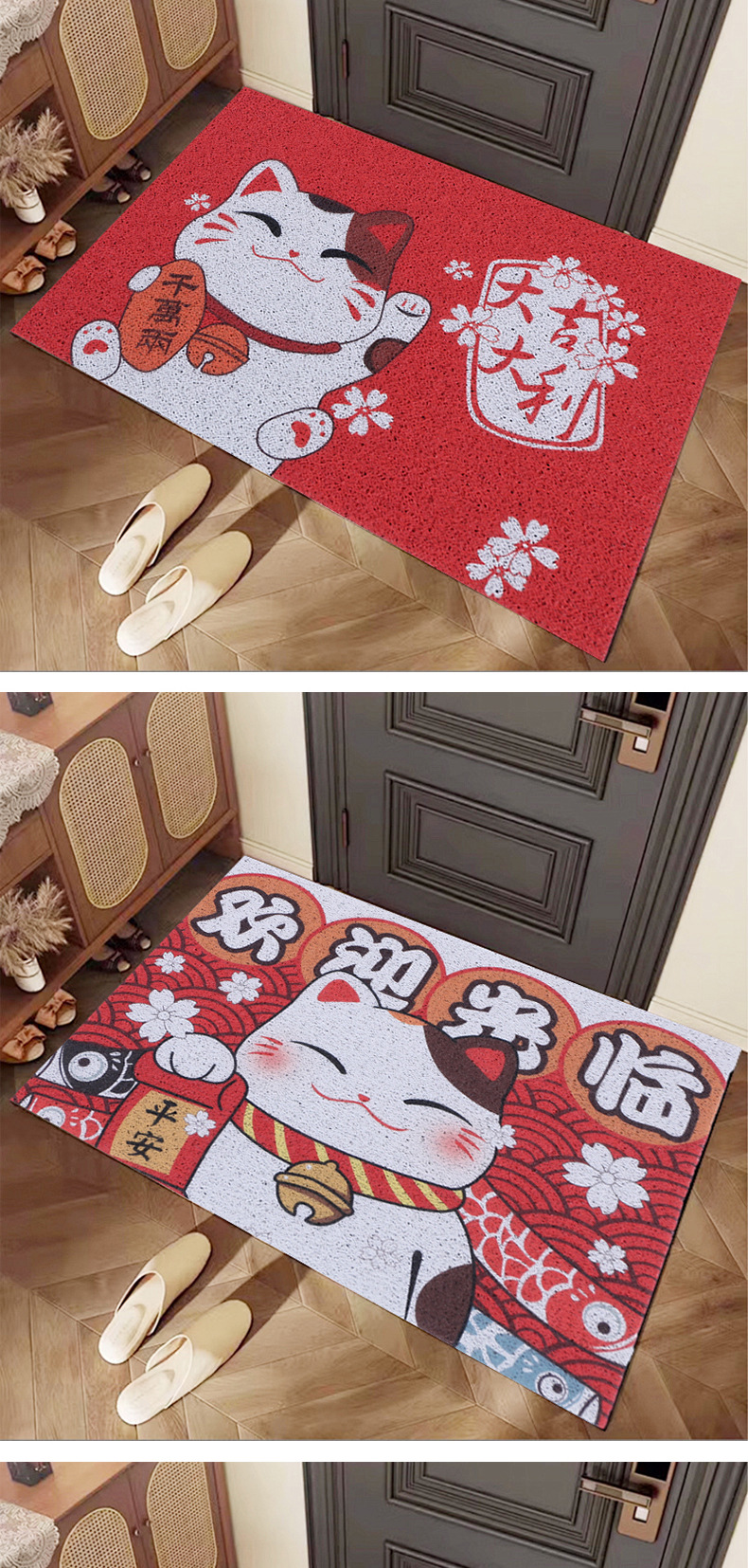 맞춤형 축제 행운의 고양이 빨간색 바닥 매트 입구 문 결혼식 집들이 문 스크래치 방지 미끄럼 방지 발 매트 문 카펫스토어 가기