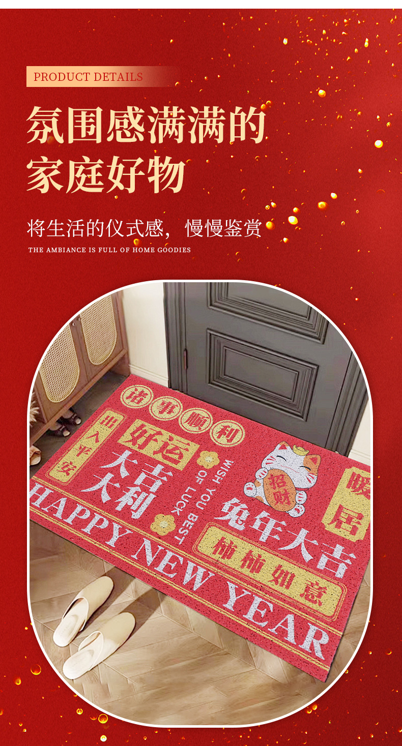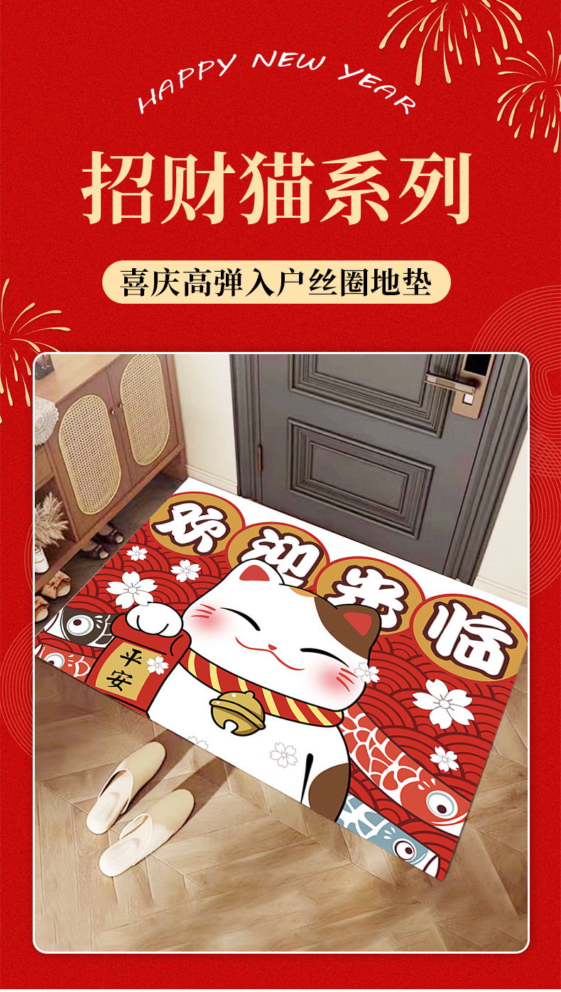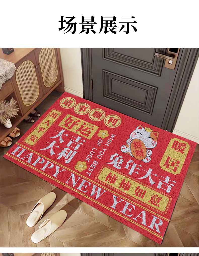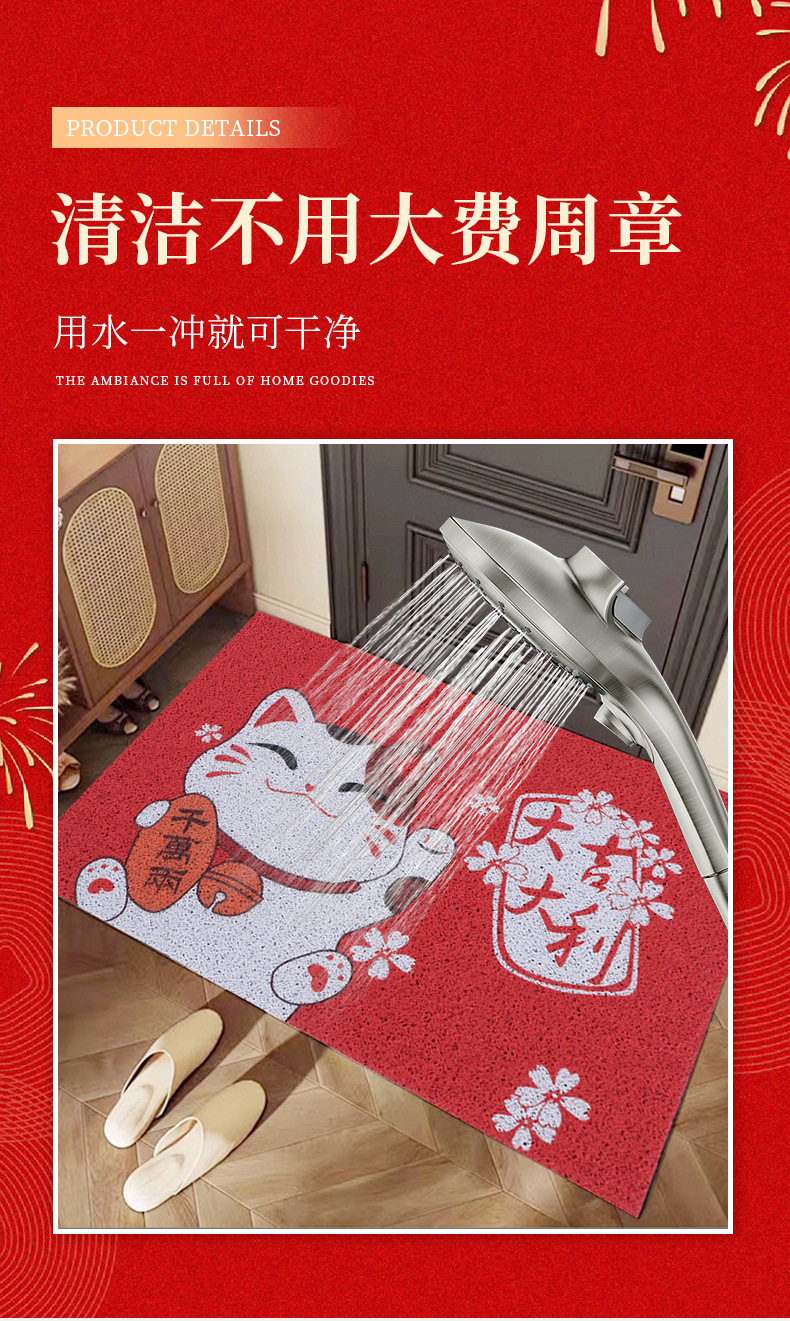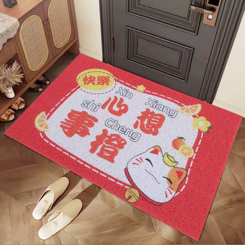 맞춤형 축제 행운의 고양이 빨간색 바닥 매트 입구 문 결혼식 집들이 문 스크래치 방지 미끄럼 방지 발 매트 문 카펫스토어 가기