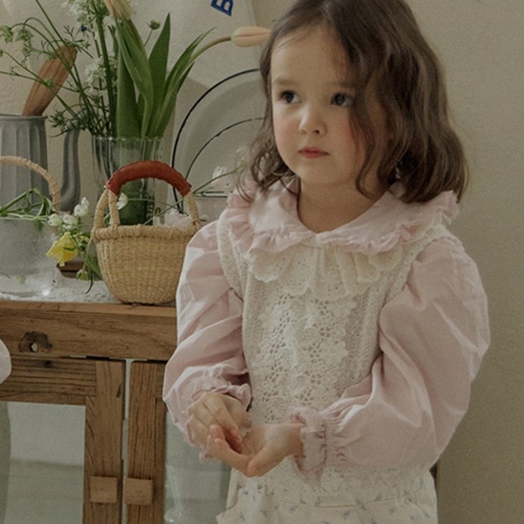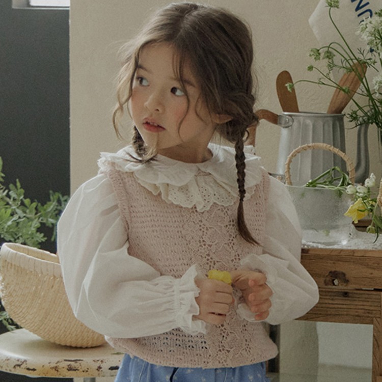 2026 봄 모델 딸기산 한국 여아용 레이스 칼라 얇은 스타일의 달콤하고 귀여운 풀오버 조끼 재고 있음