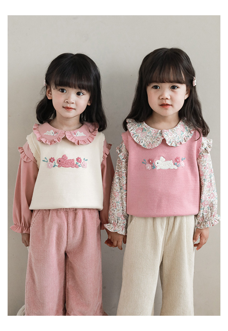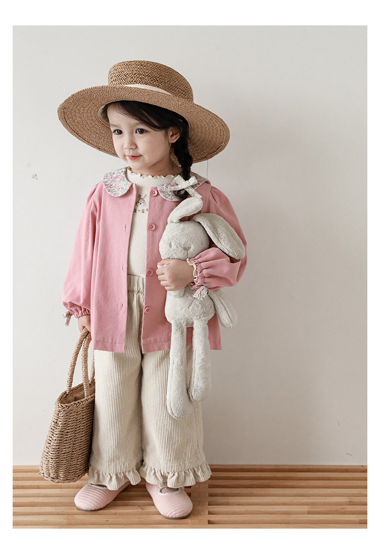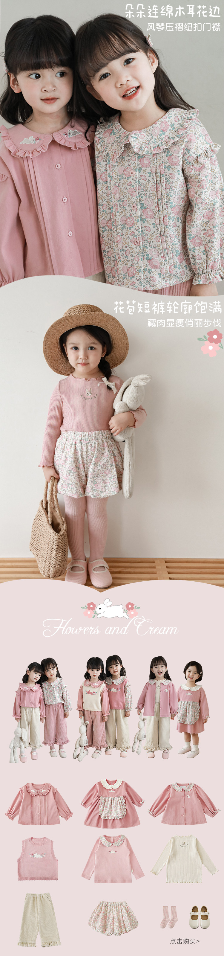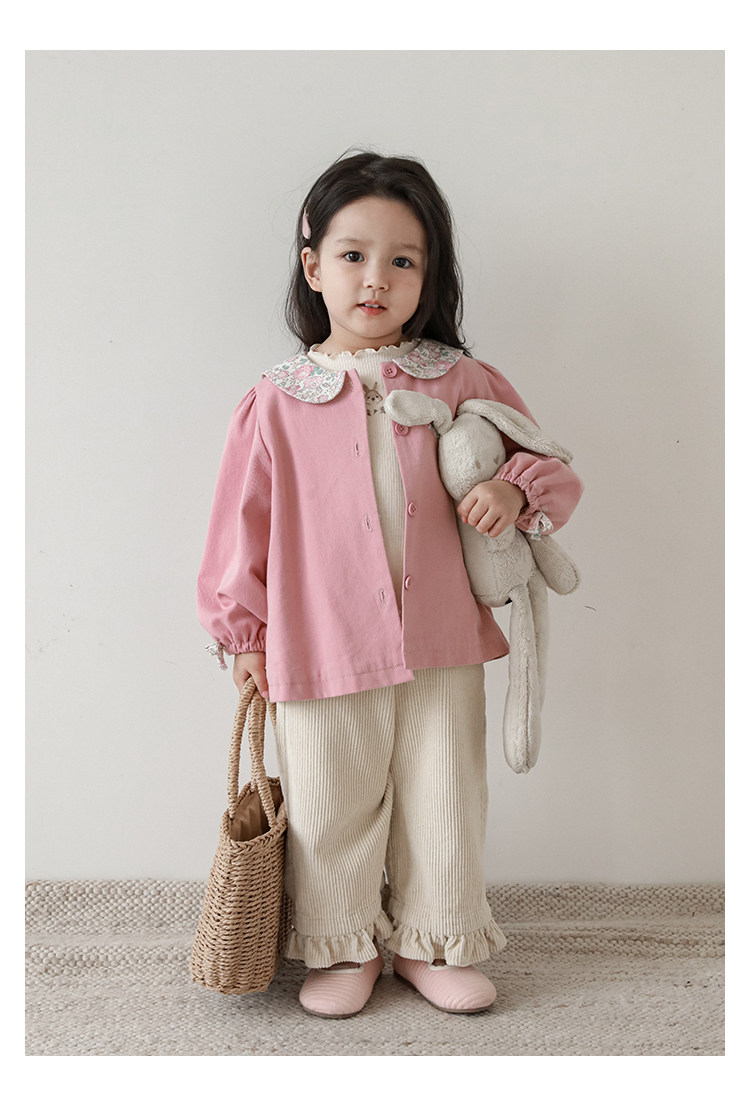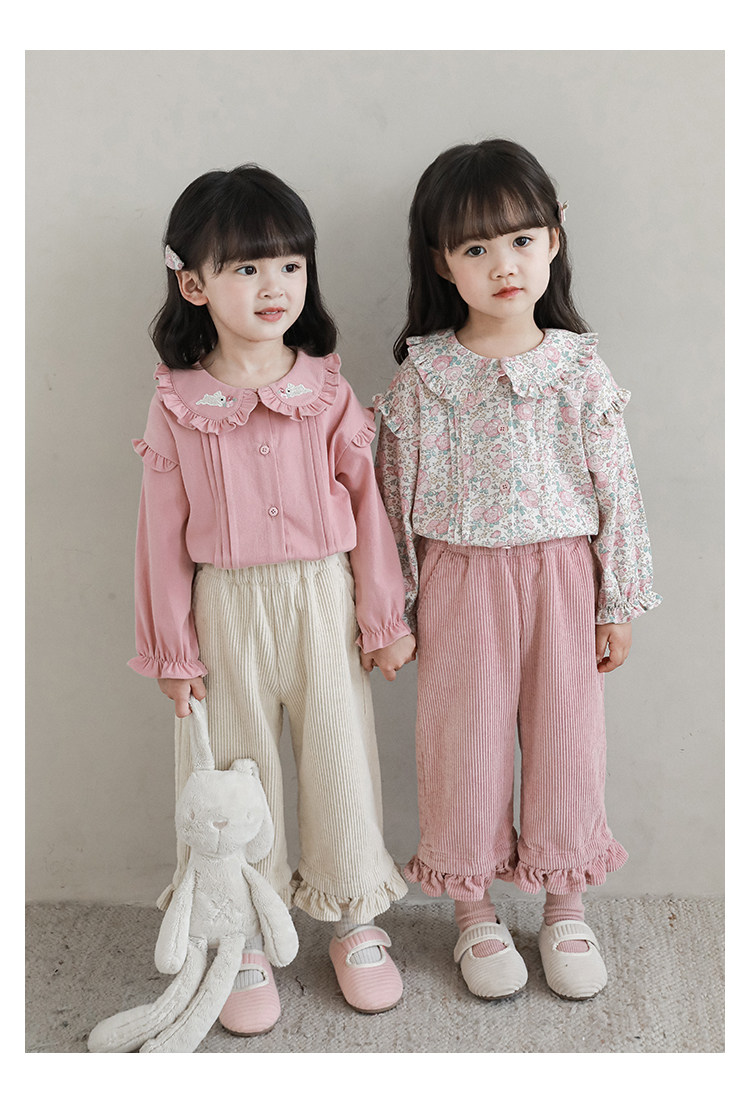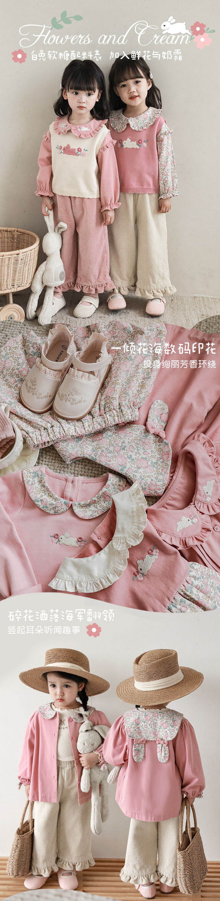 Wulibuyi 소녀의 세트 봄과 가을 꽃 옷깃 셔츠 코트 귀여운 티셔츠 어린이 서양식 조끼 스커트스토어 가기