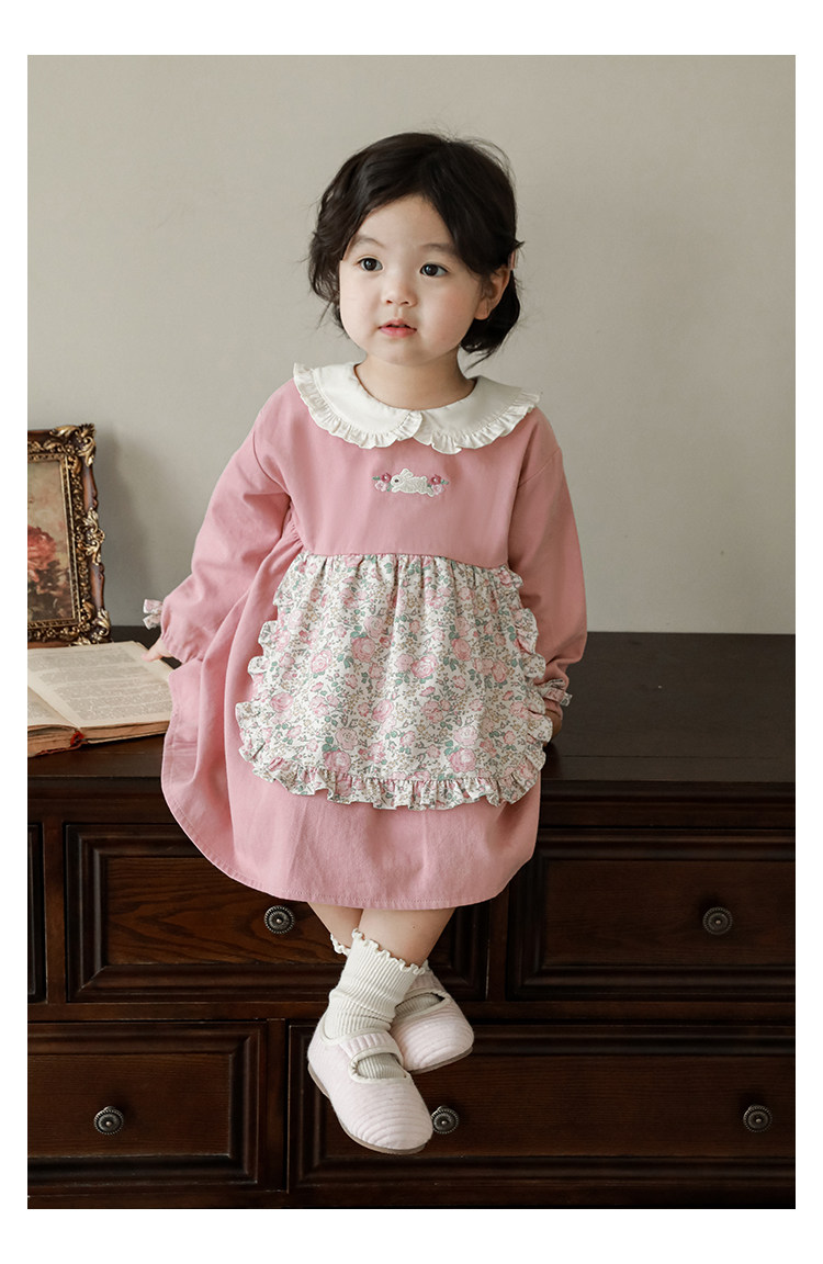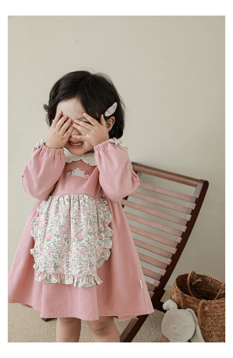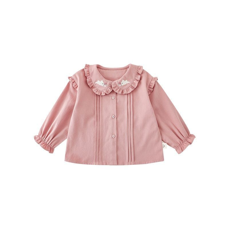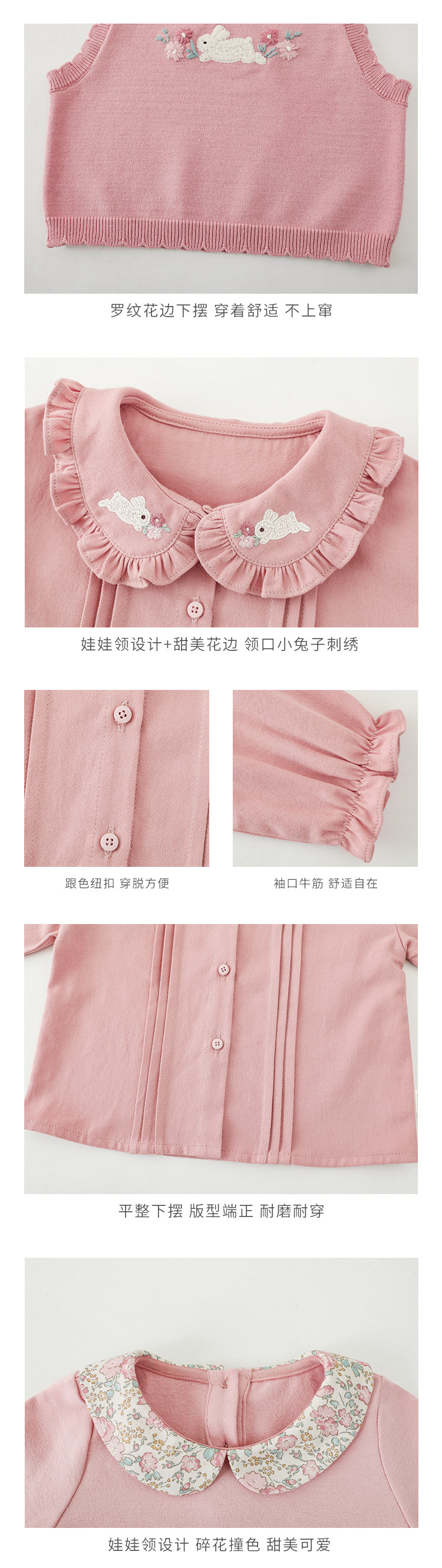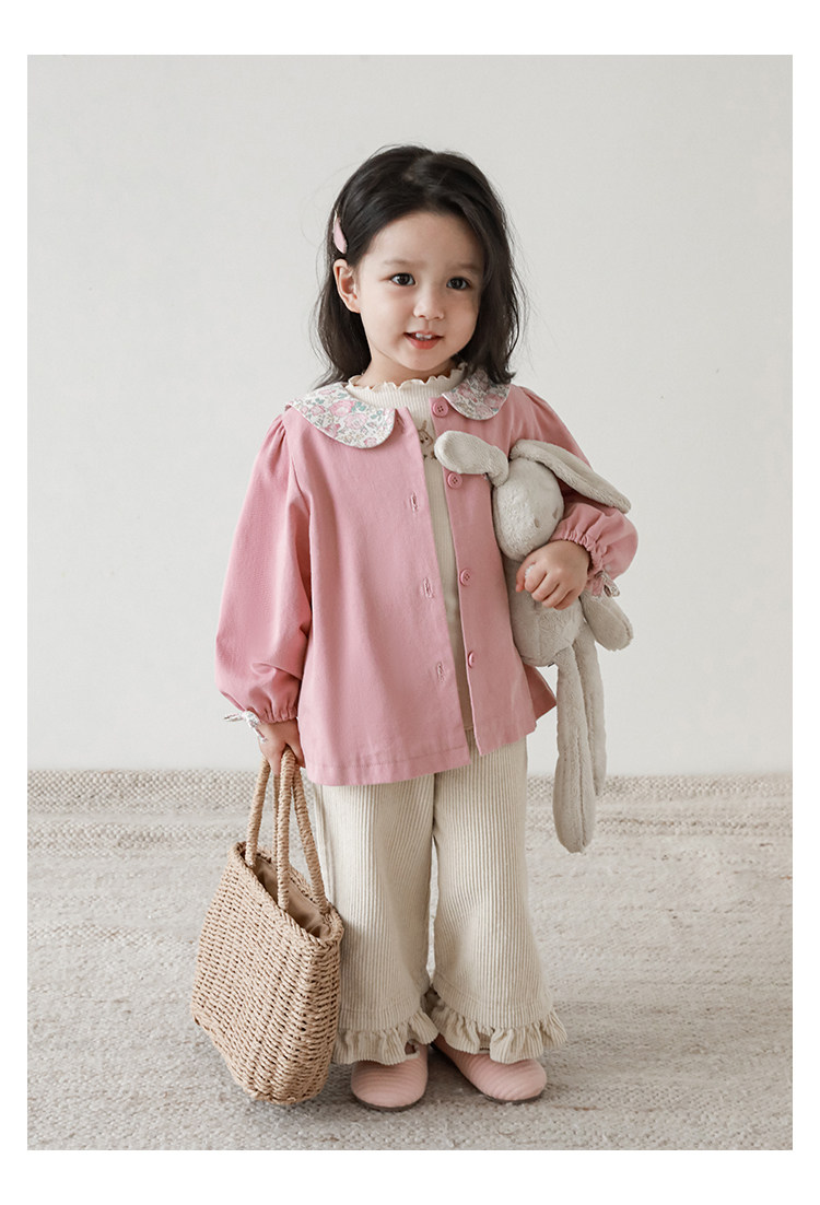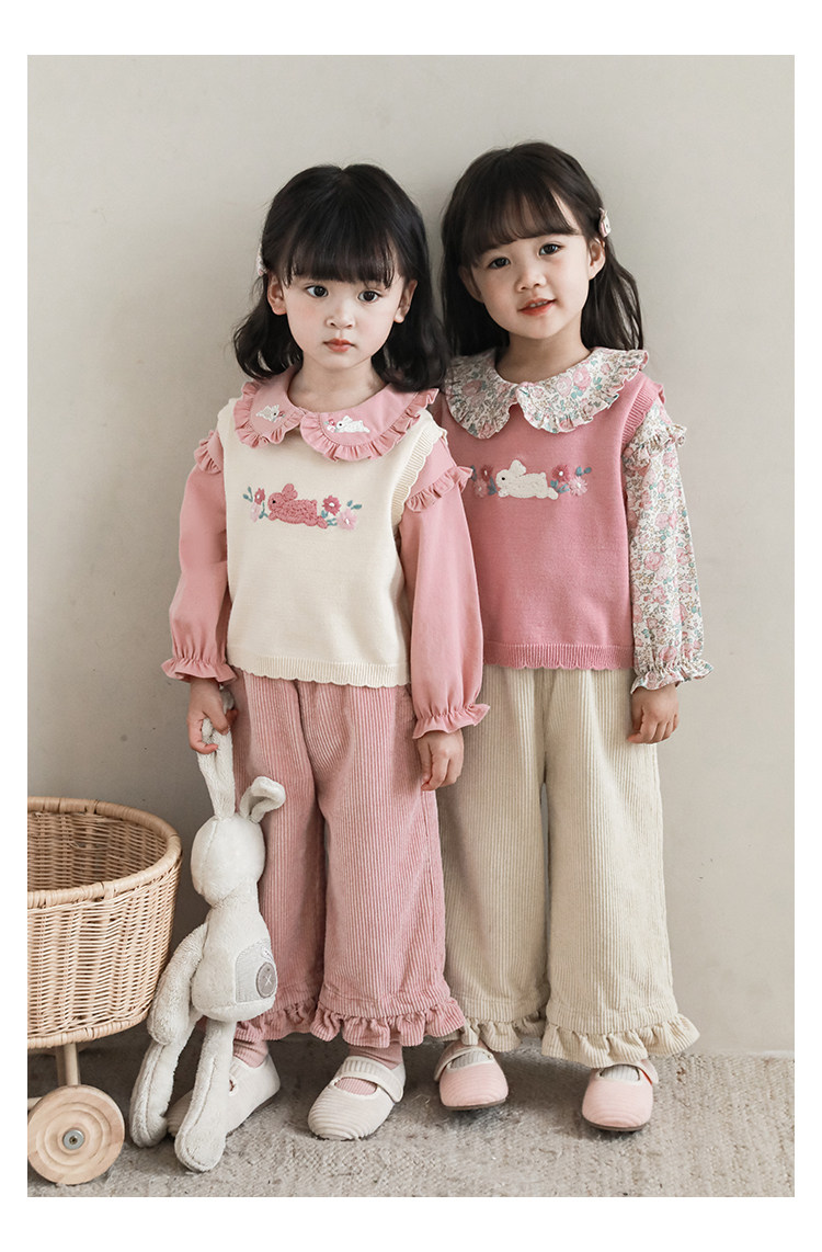 Wulibuyi 소녀의 세트 봄과 가을 꽃 옷깃 셔츠 코트 귀여운 티셔츠 어린이 서양식 조끼 스커트스토어 가기