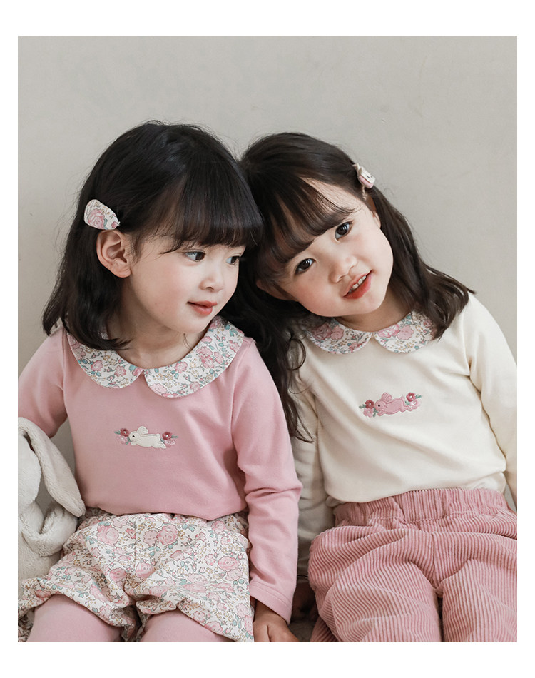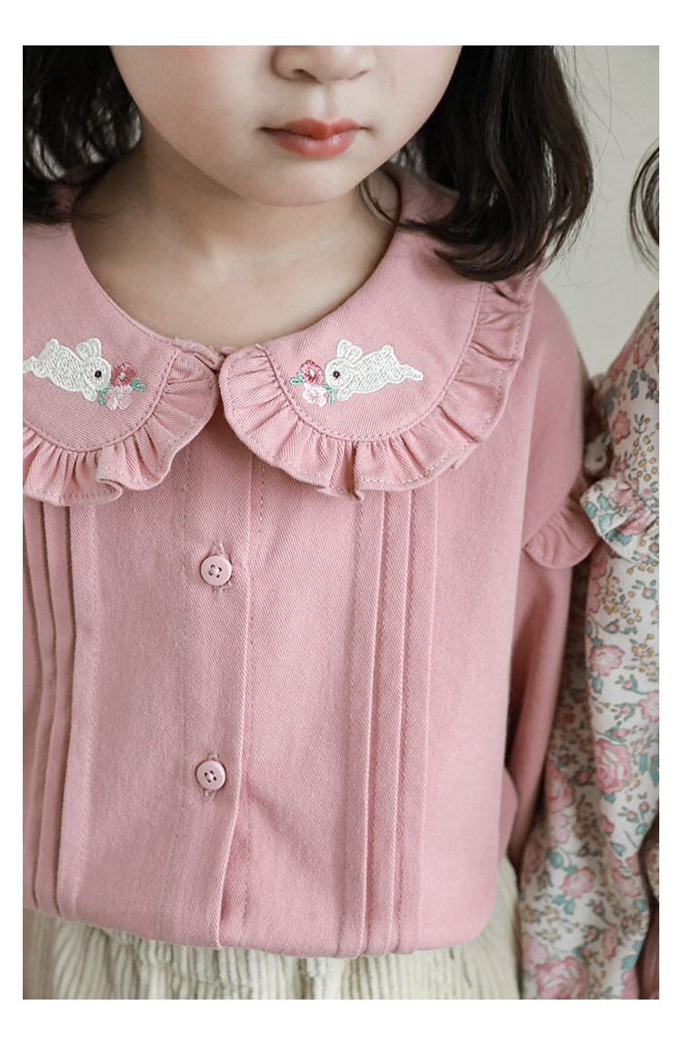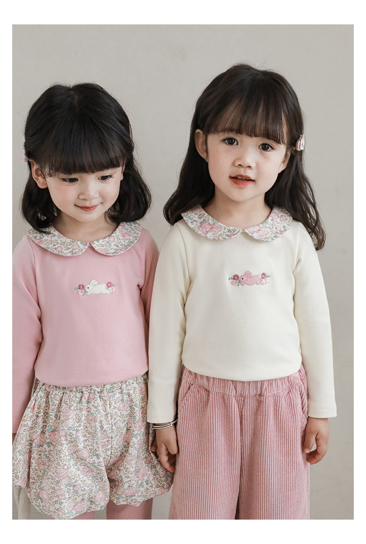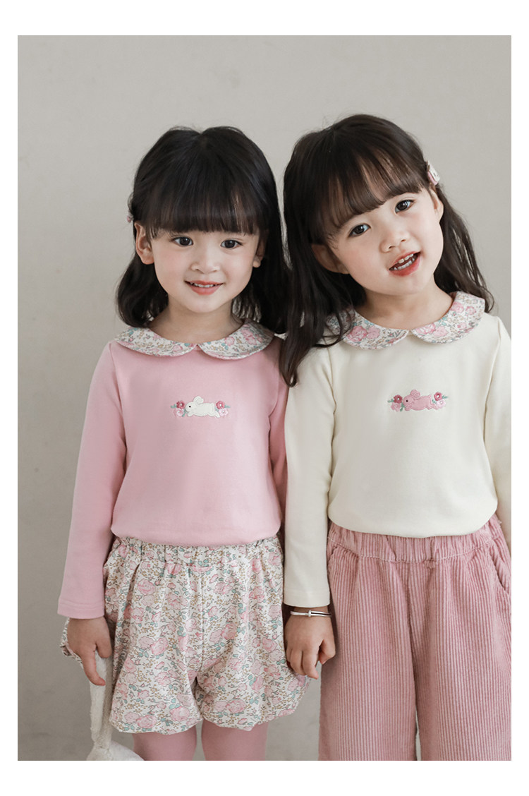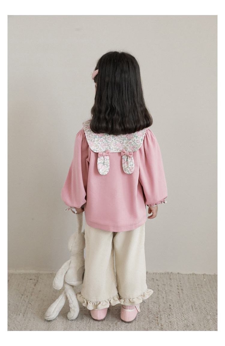 • 셔츠 살구색 기본 핑크 꽃 (Q3108)