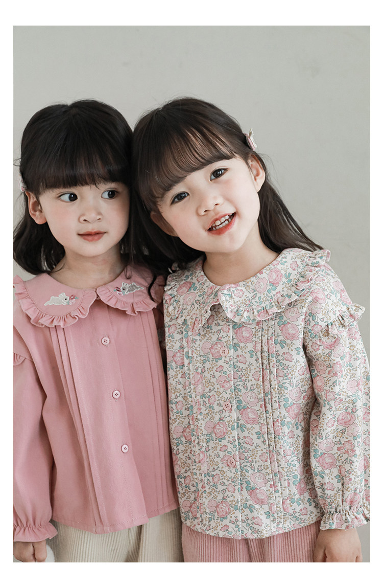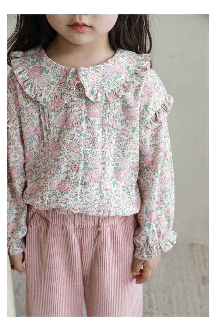 • 셔츠 살구 베이스 핑크 플라워 (Q3108) 선판매