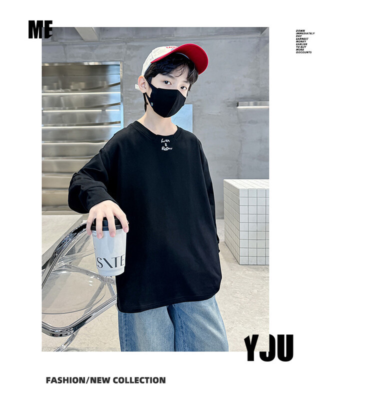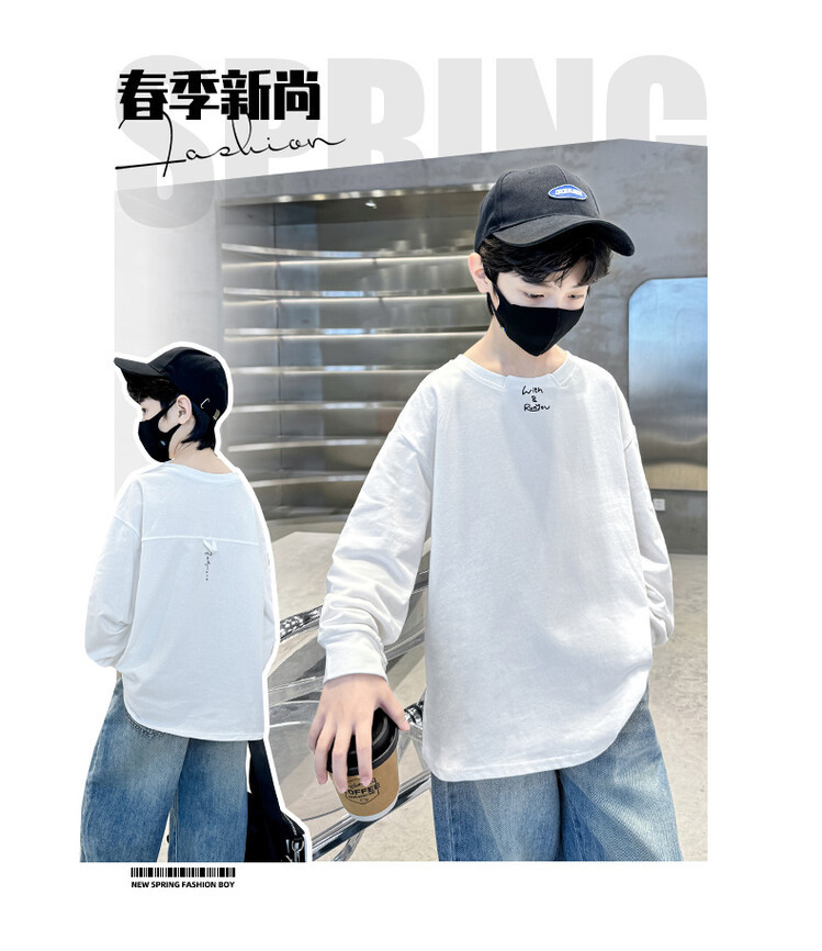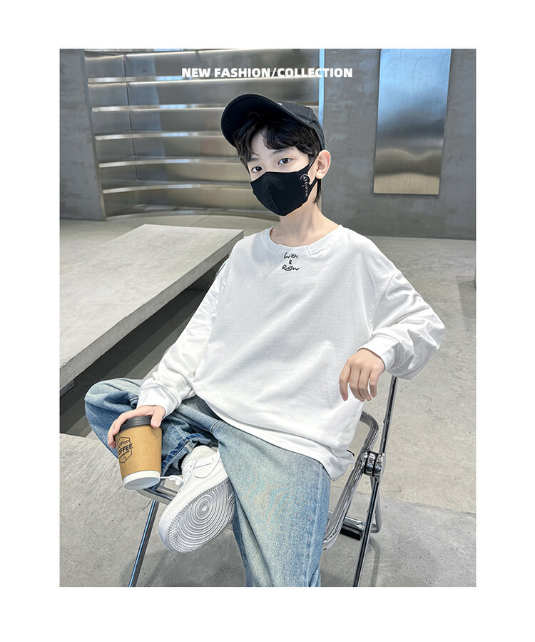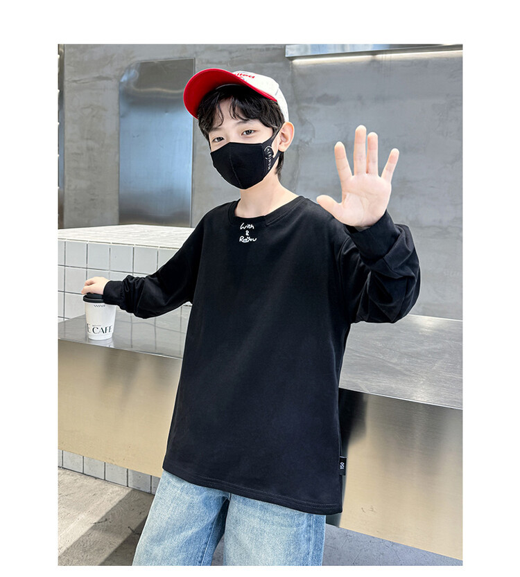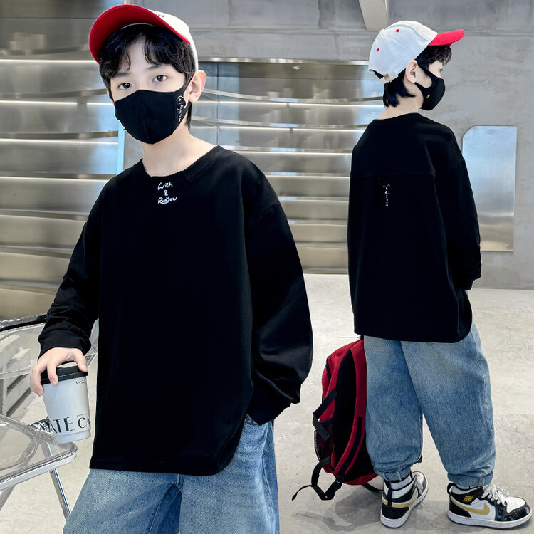남아 가을 긴팔 티셔츠 2026 신상 큰아동 가을옷 한국 스타일 캐주얼 루즈핏 상의 풀오버 베이스 레이어 트렌디