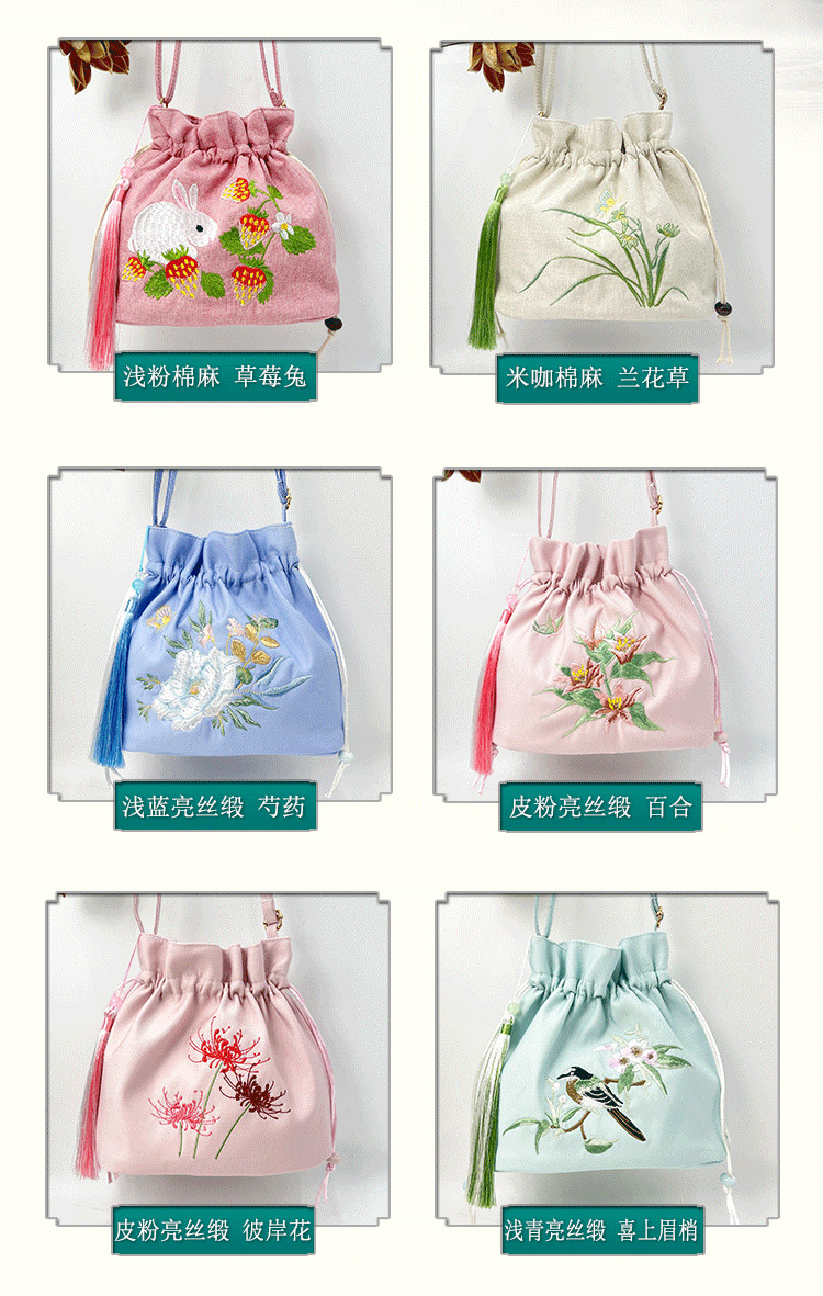 한복 가방, 조임끈, 어깨 크로스바디 자수 가방, 새로운 중국식 가방, 다용도 중국식 수납 가방, 고대 스타일 인기 가방스토어 가기