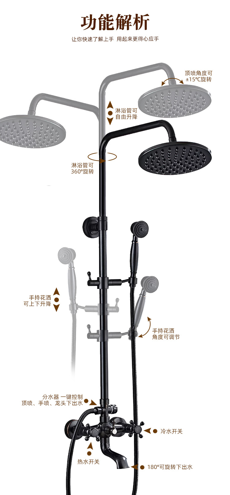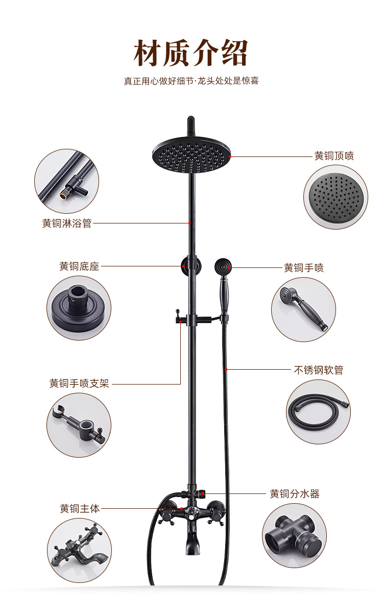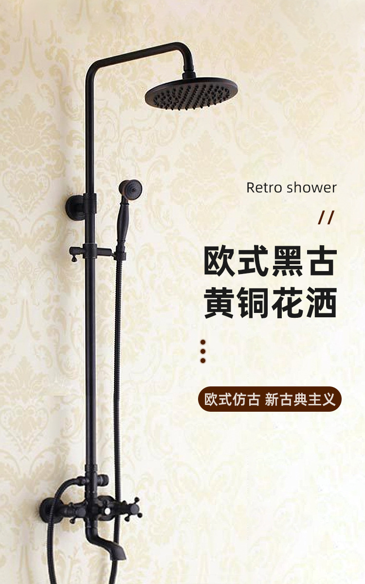 미국식 황동 블랙 샤워기 세트, 욕실용 가정용 강압 핸드헬드 샤워 노즐스토어 가기