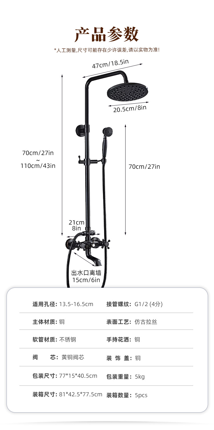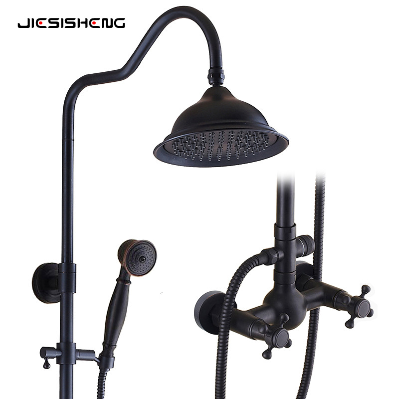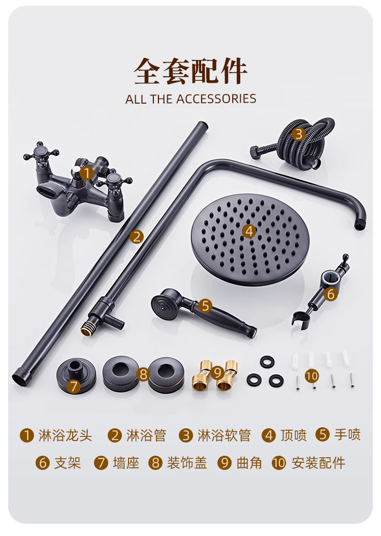 미국식 황동 블랙 샤워기 세트, 욕실용 가정용 강압 핸드헬드 샤워 노즐