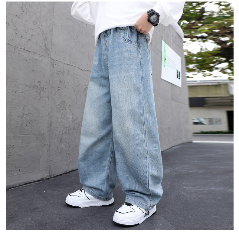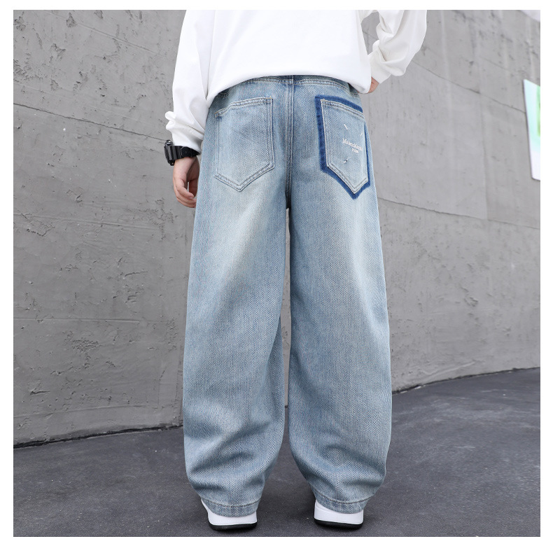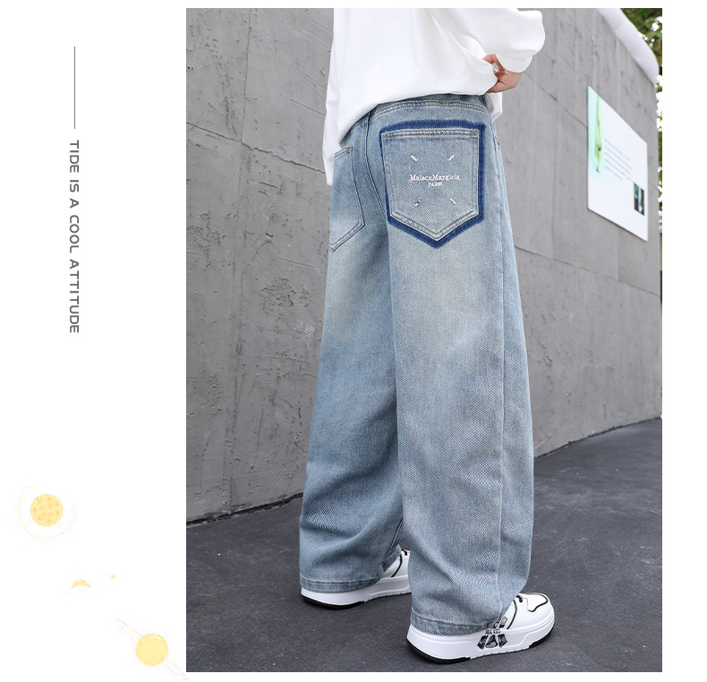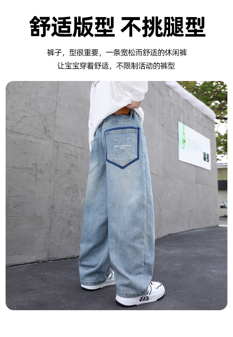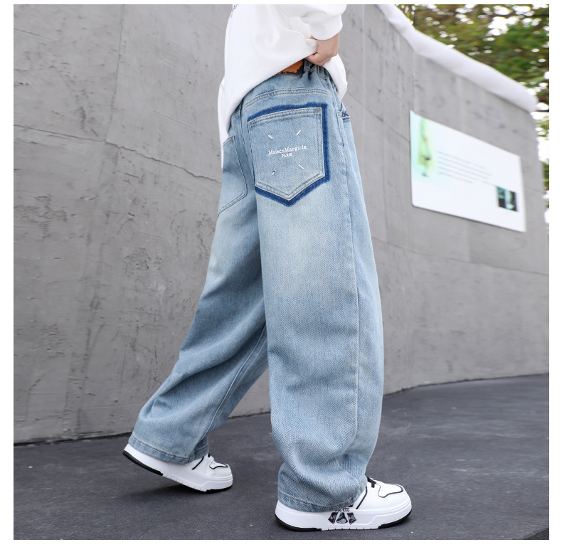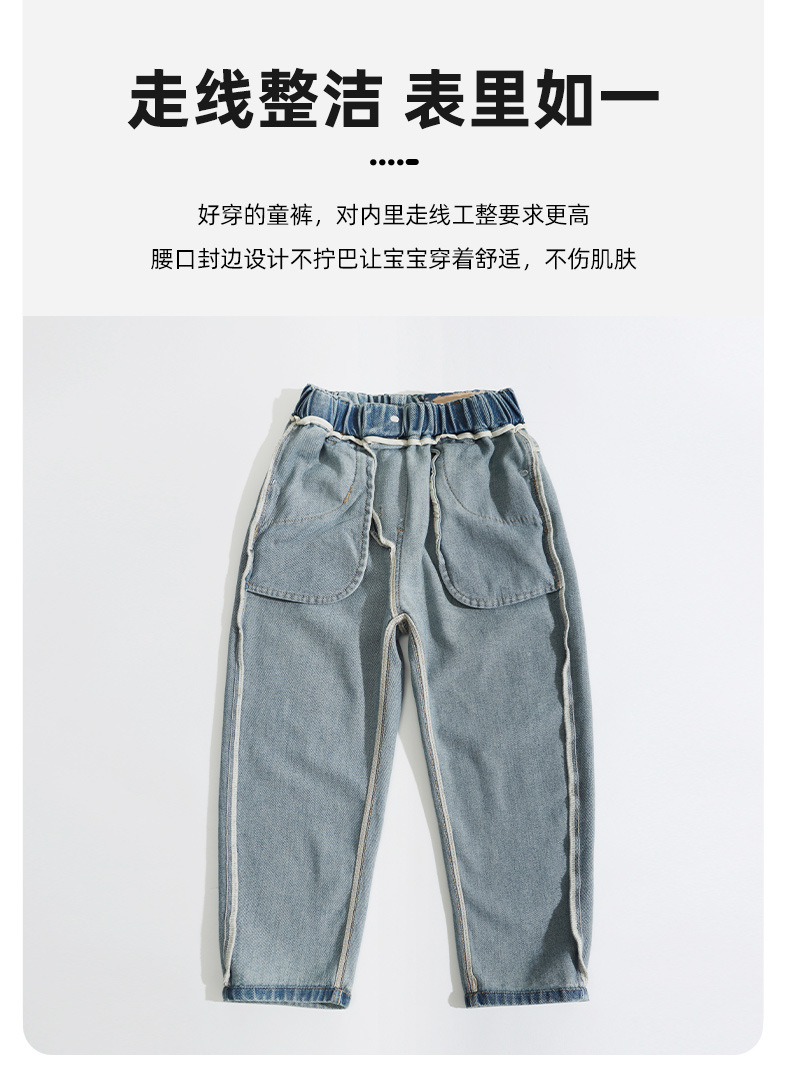남아용 부드러운 데님 팬츠 2025년 가을 신상 아동용 멋진 바지 봄 가을용 큰아동 캐주얼 긴바지 한국 스타일 트렌드스토어 가기