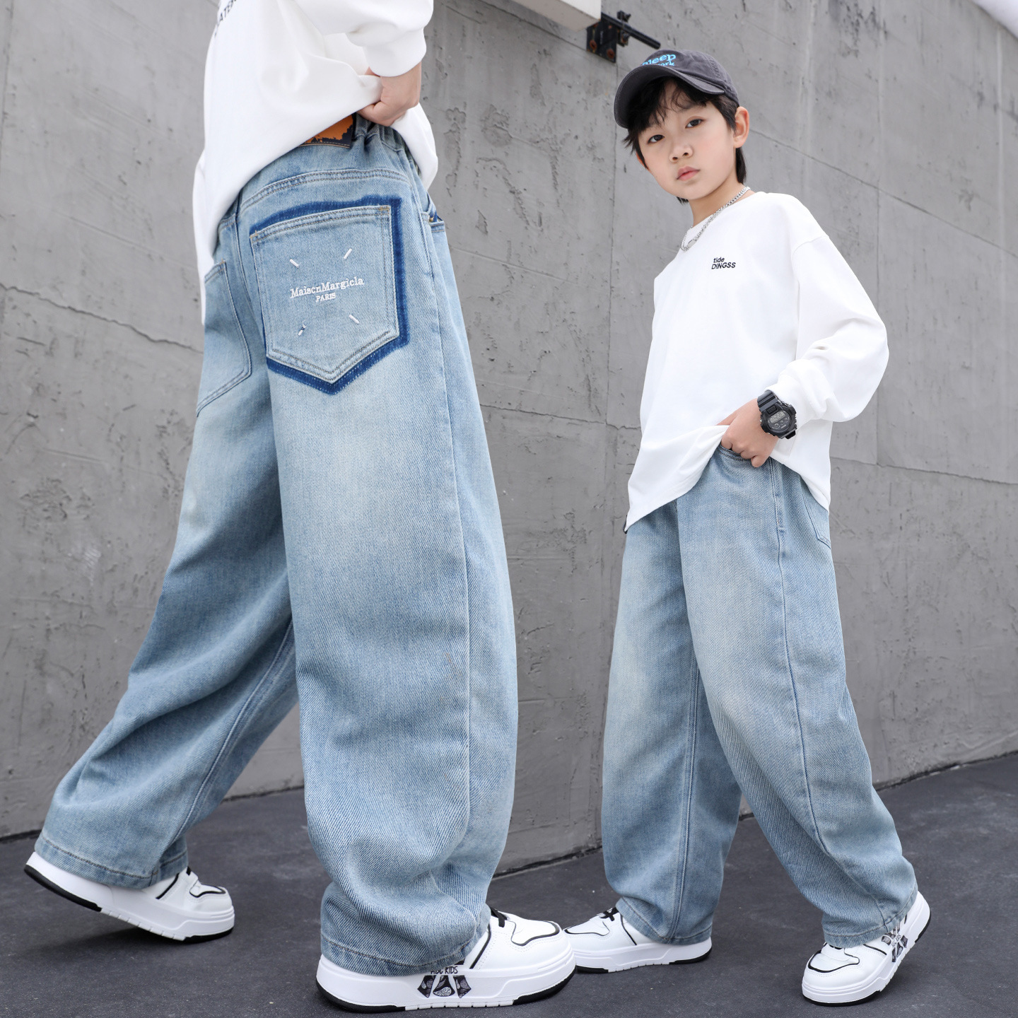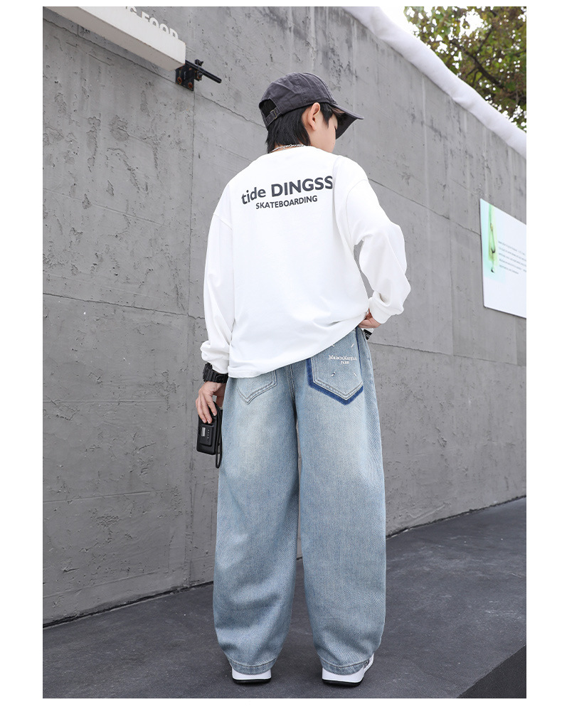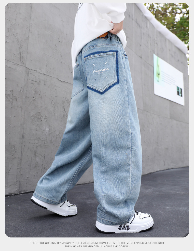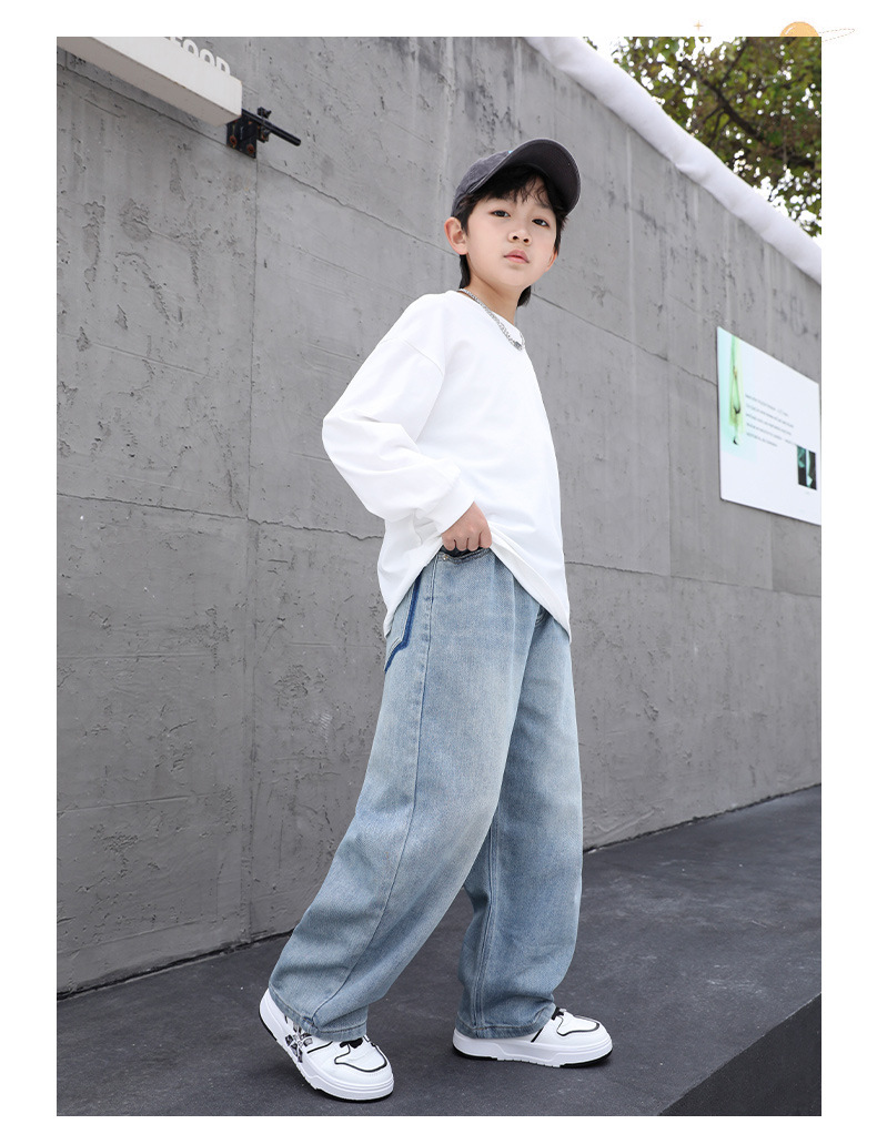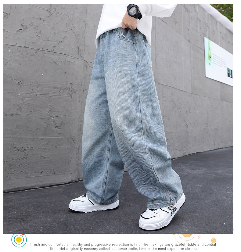 남아용 부드러운 데님 팬츠 2025년 가을 신상 아동용 멋진 바지 봄 가을용 큰아동 캐주얼 긴바지 한국 스타일 트렌드스토어 가기