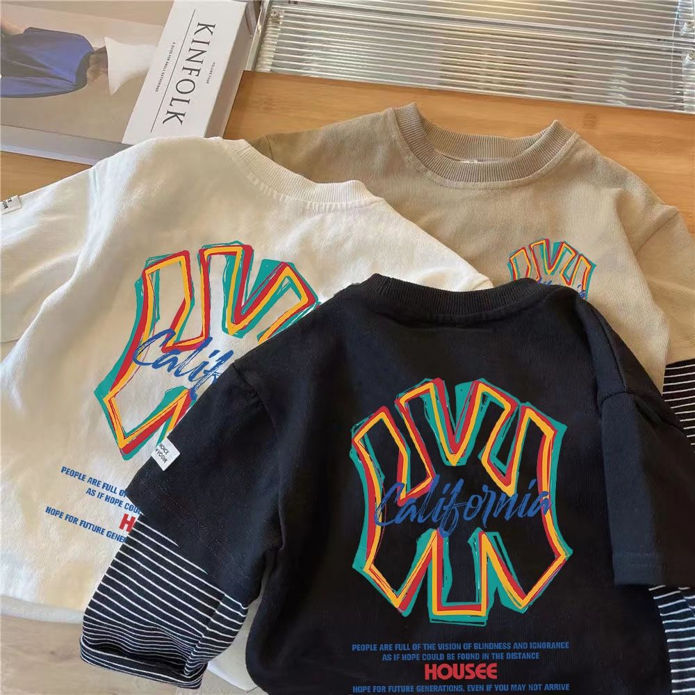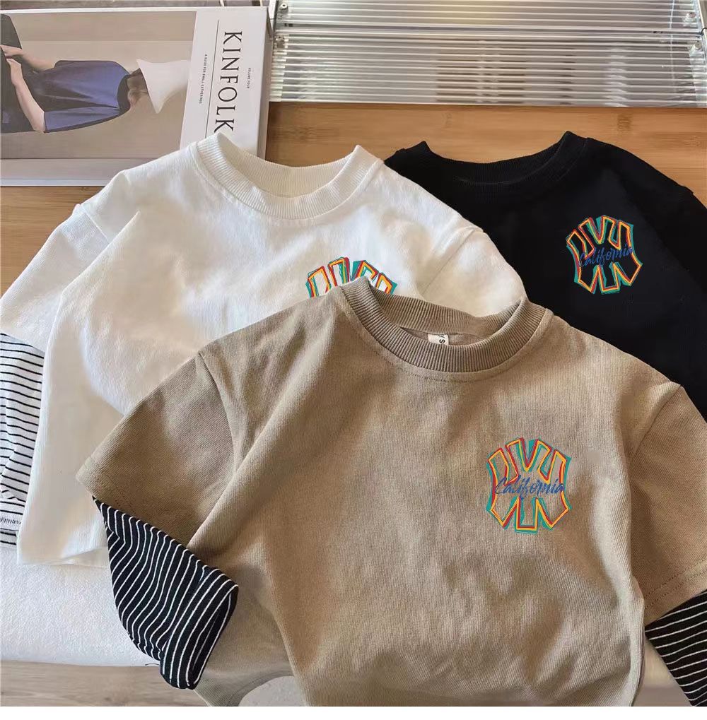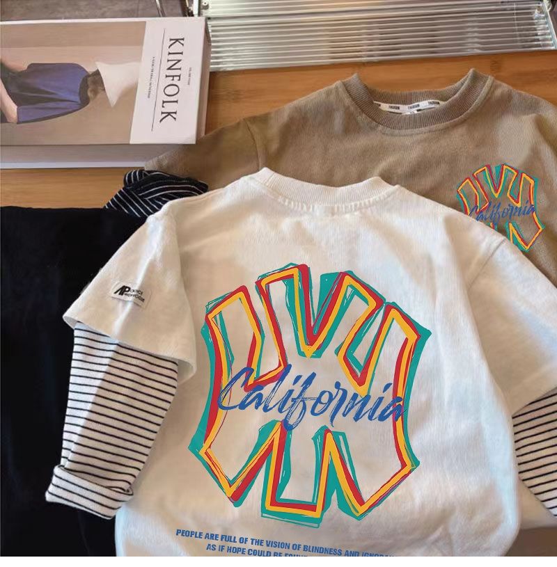 2025 남아용 긴팔 면 티셔츠 봄 가을 얇은 스타일 멋진 아동복 한국 스타일 중소형 아동용 투피스 스타일 이너웨어 티셔츠스토어 가기