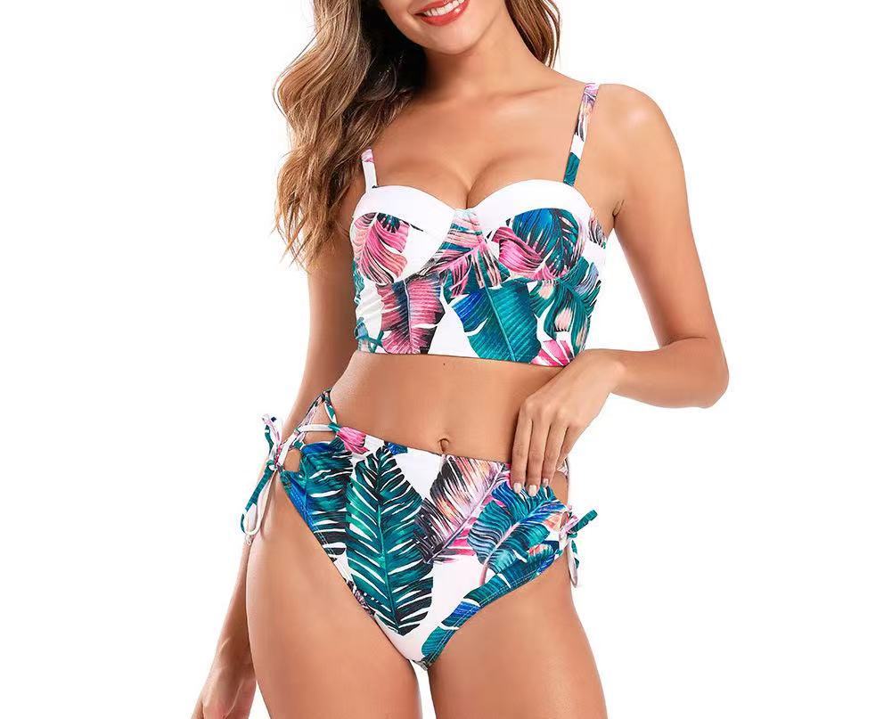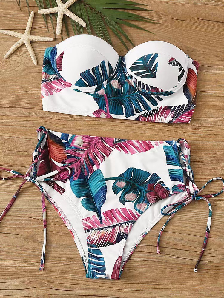2024 새로운 아마존 스트랩 복고풍 하이 허리 비키니 인쇄 유럽과 미국의 대외 무역 수영복 여성 비키니 크로스 국경
