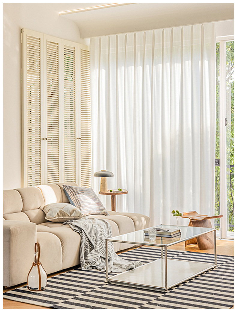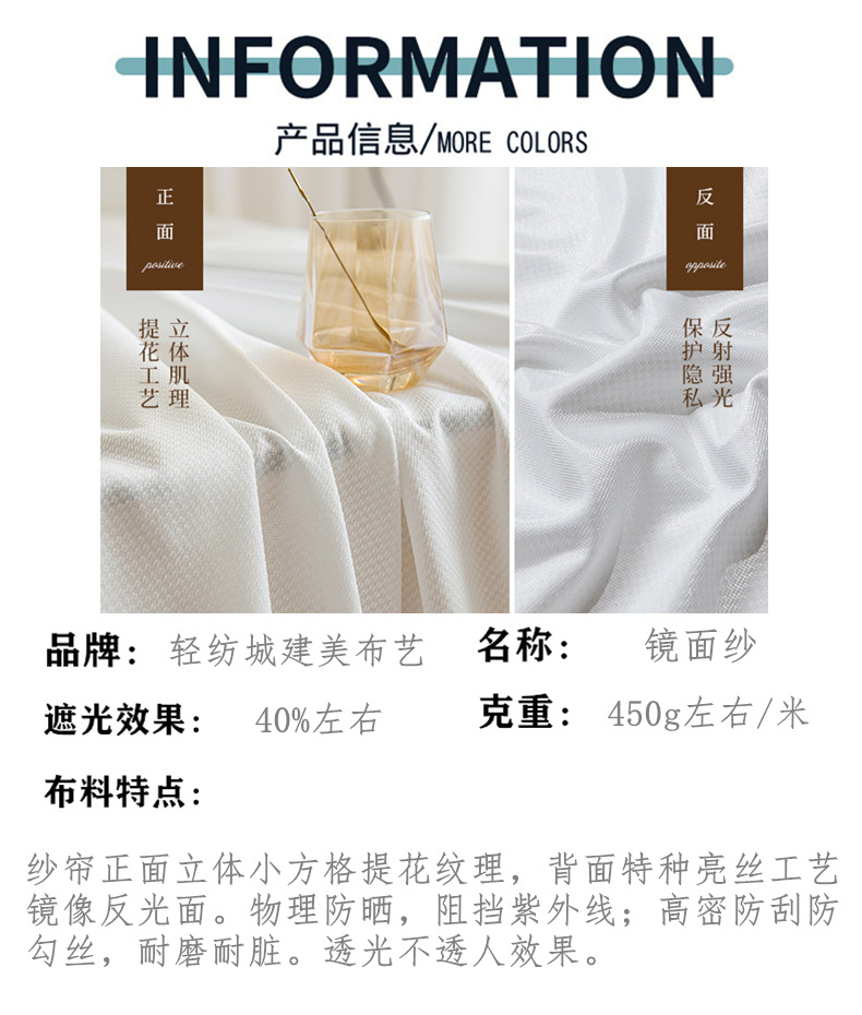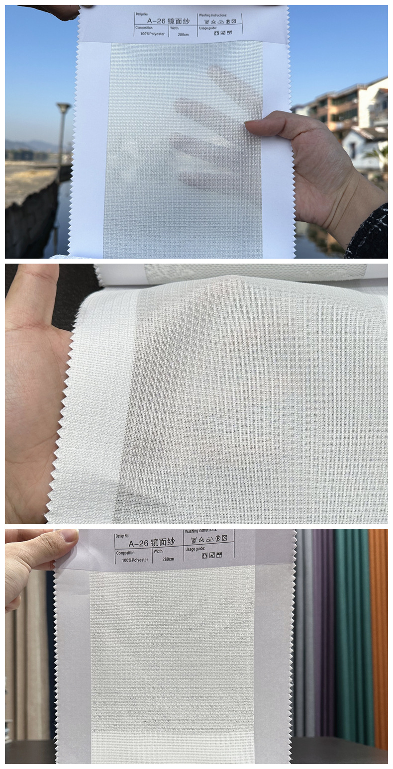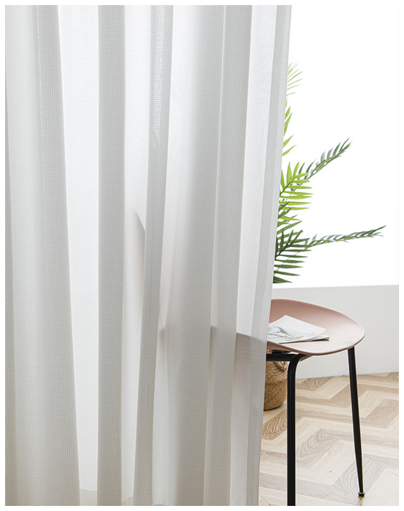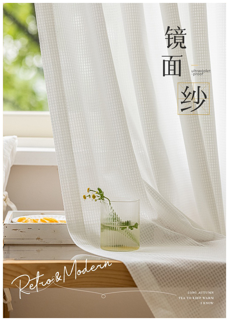 [거울 원사] 새로운 작은 사각형 격자 무늬 투명 태양 보호 단열 두꺼운 모래 커튼 도매 침실 발코니