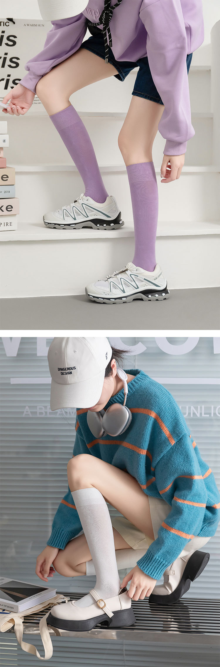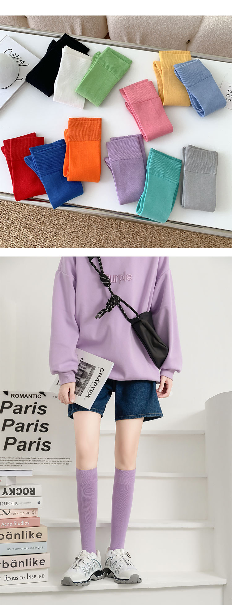 도파민 아래 다리 양말 아이들의 순수한면 양말 뼈없는 캔디 컬러 중간 길이 양말 무릎 길이 스타킹 Zhuji 도매스토어 가기