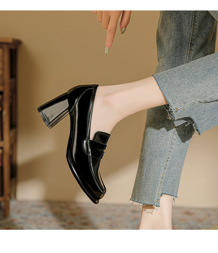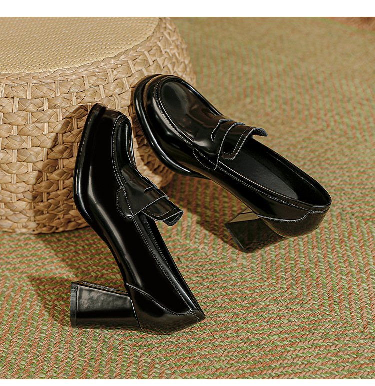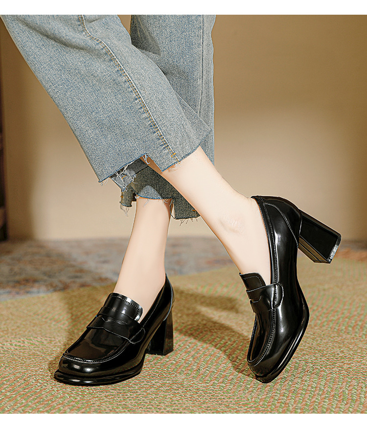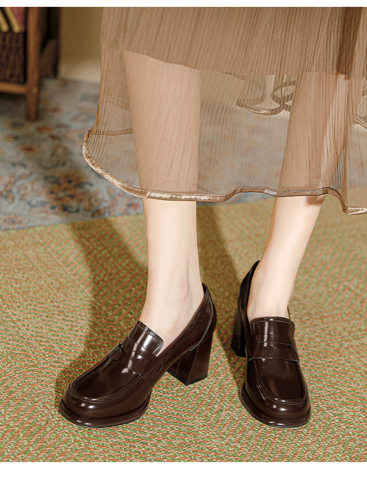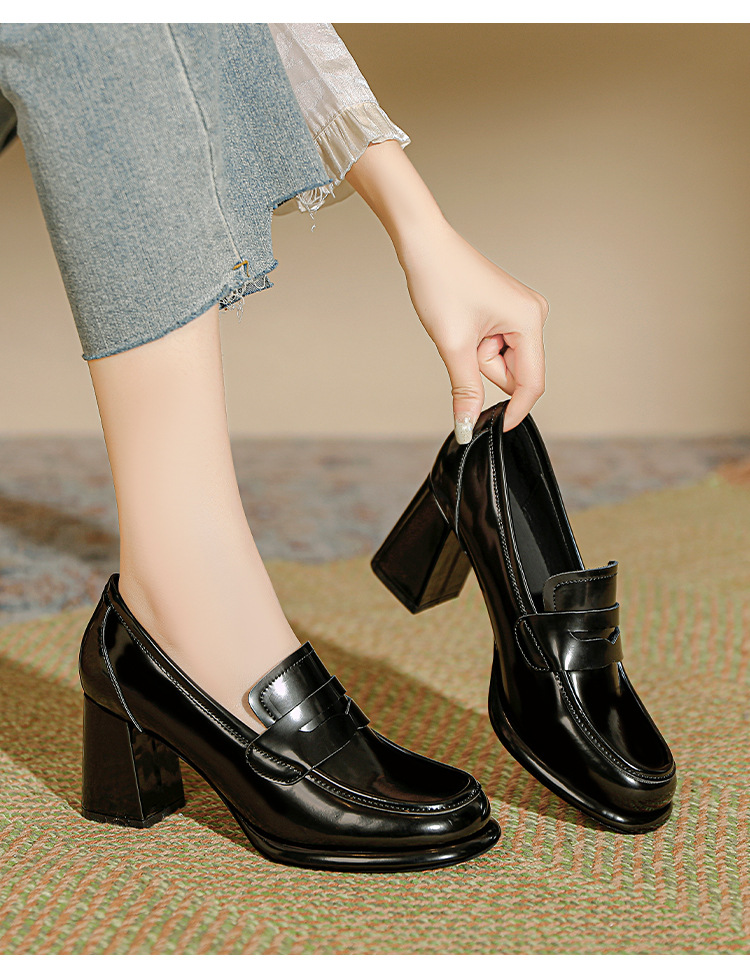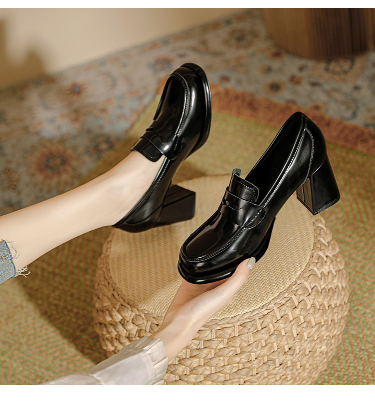 레트로 블랙 싱글 레이어 신발 2024 봄 새로운 플랫폼 하이힐 가죽 신발 영국 여성의 청키 힐 로퍼 패션스토어 가기