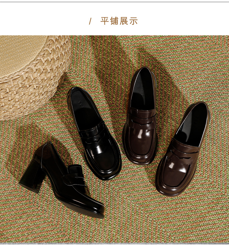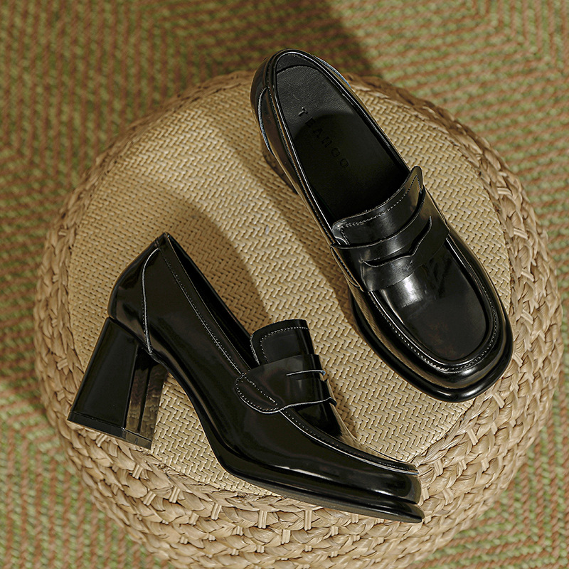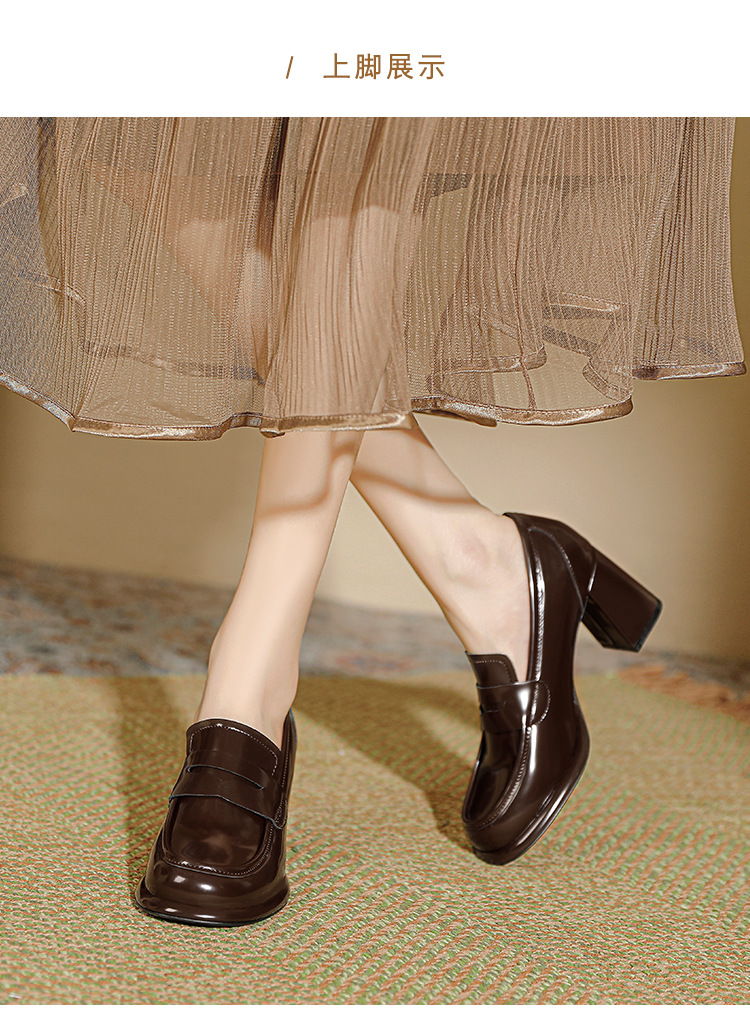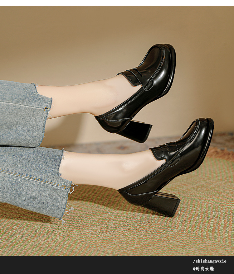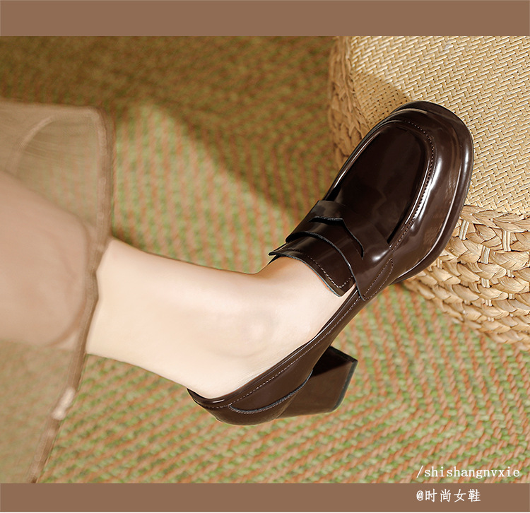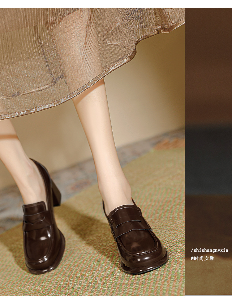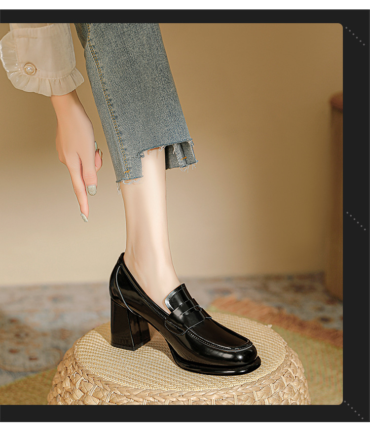 레트로 블랙 싱글 레이어 신발 2024 봄 새로운 플랫폼 하이힐 가죽 신발 영국 여성의 청키 힐 로퍼 패션스토어 가기