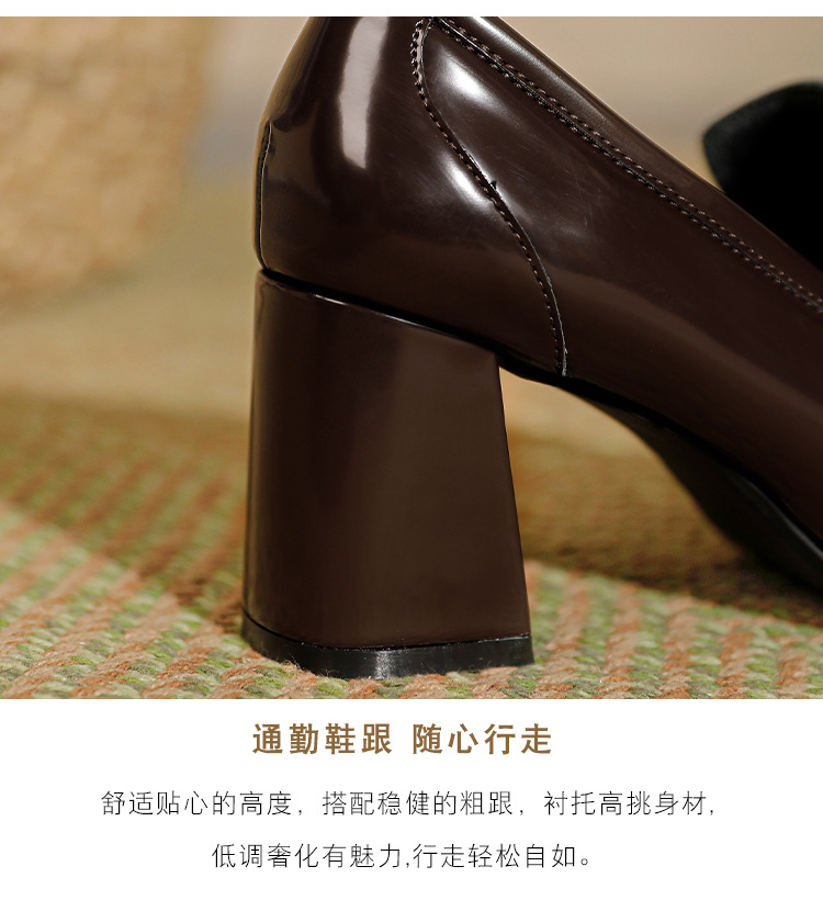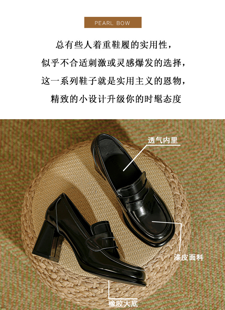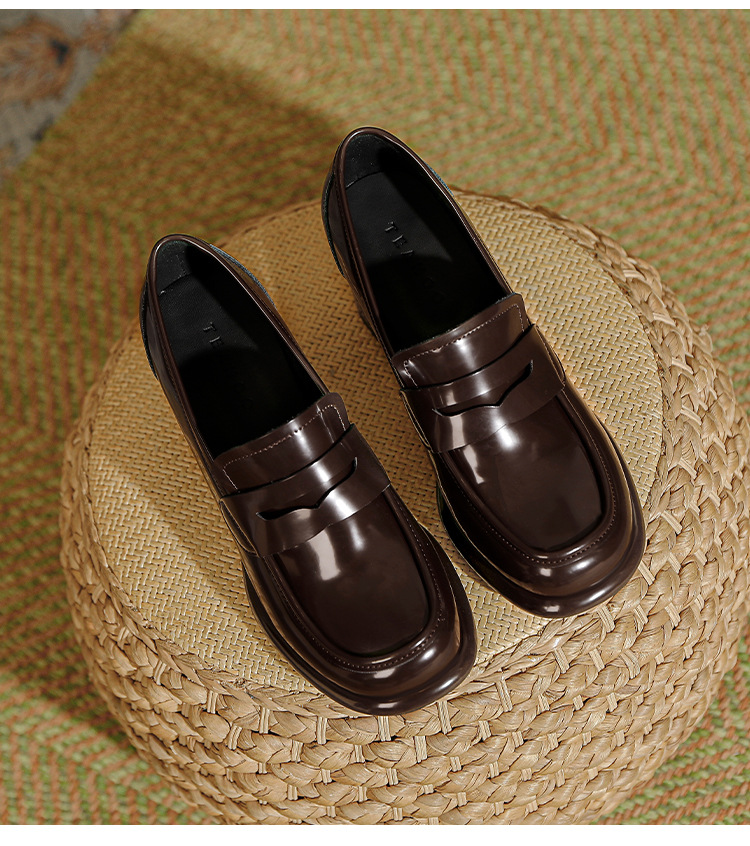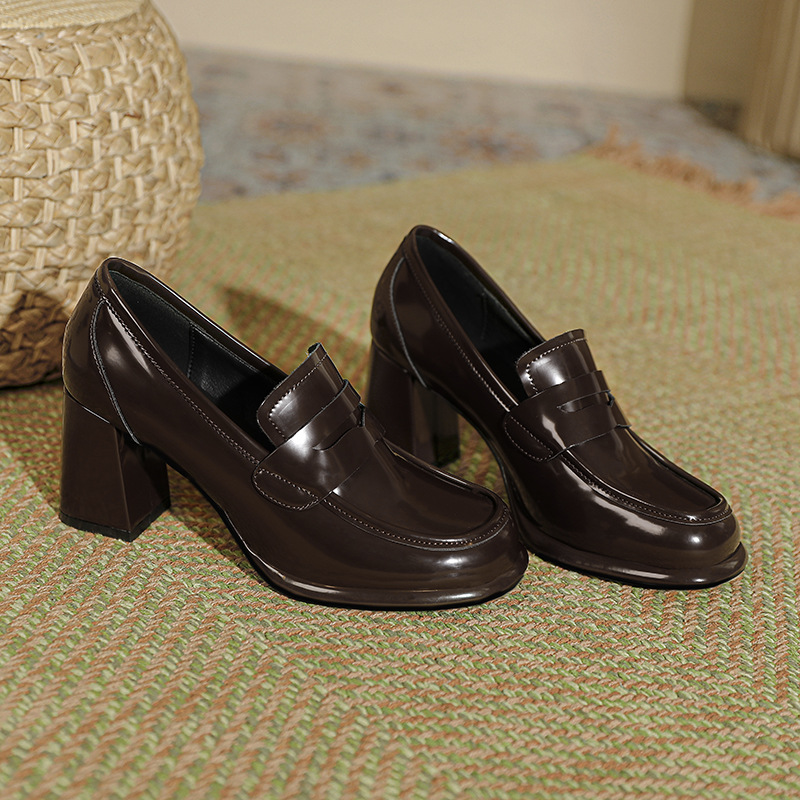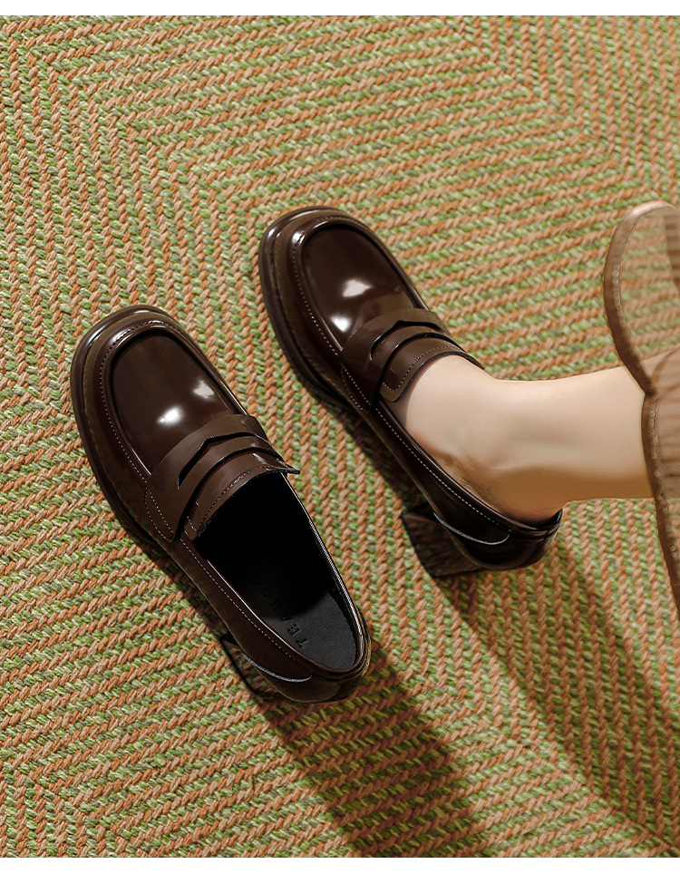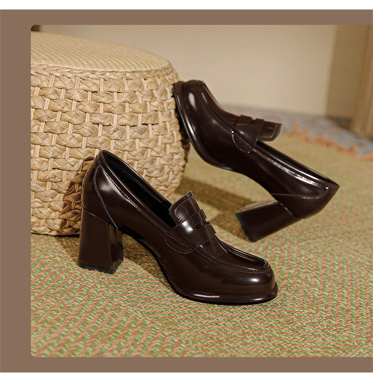 레트로 블랙 싱글 레이어 신발 2024 봄 새로운 플랫폼 하이힐 가죽 신발 영국 여성의 청키 힐 로퍼 패션스토어 가기