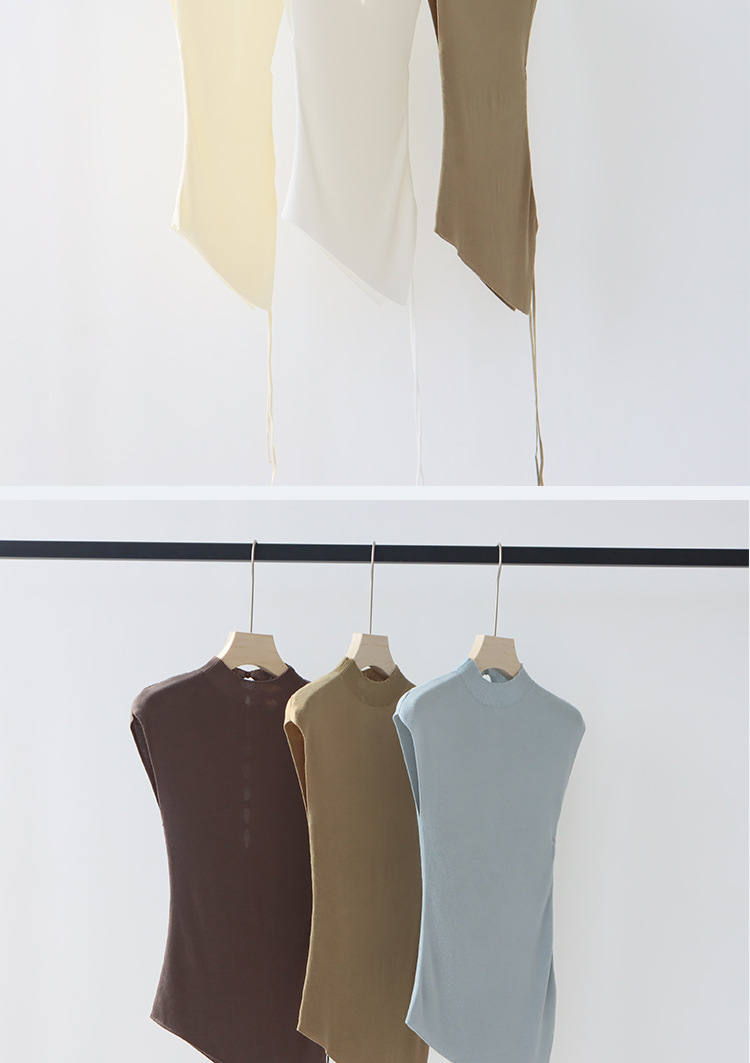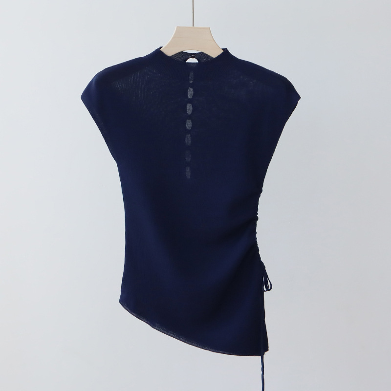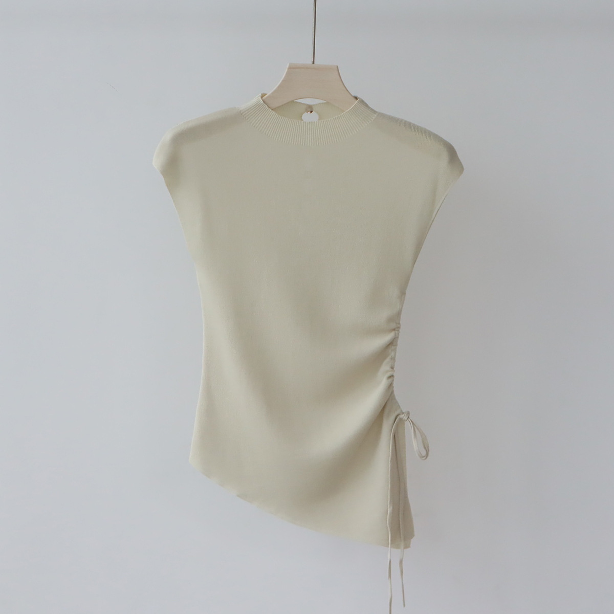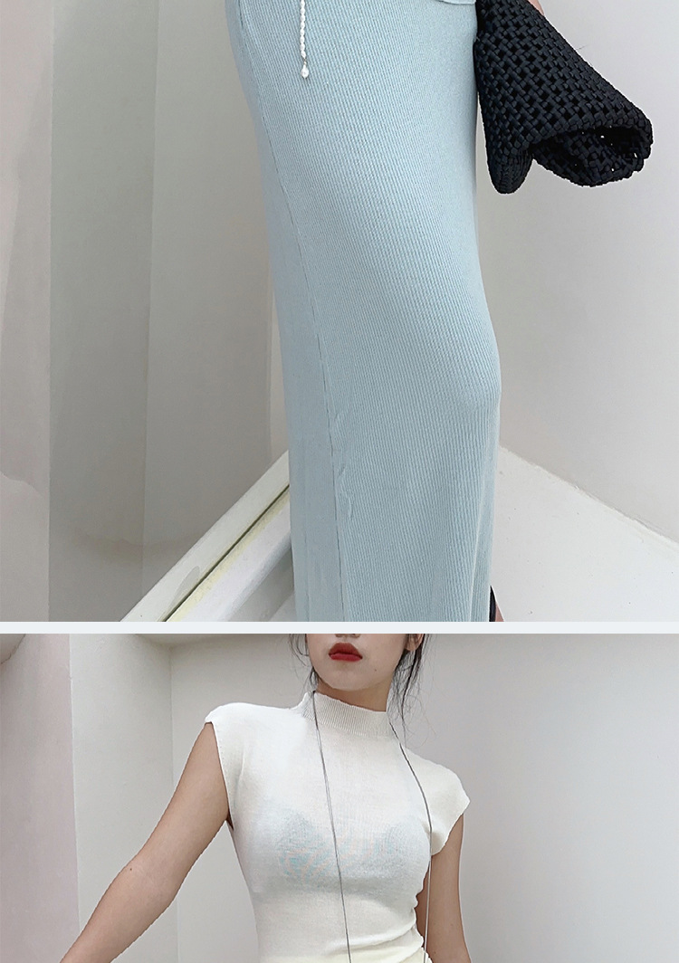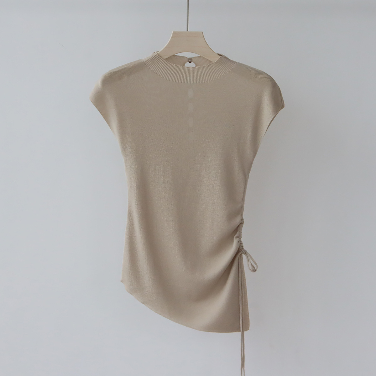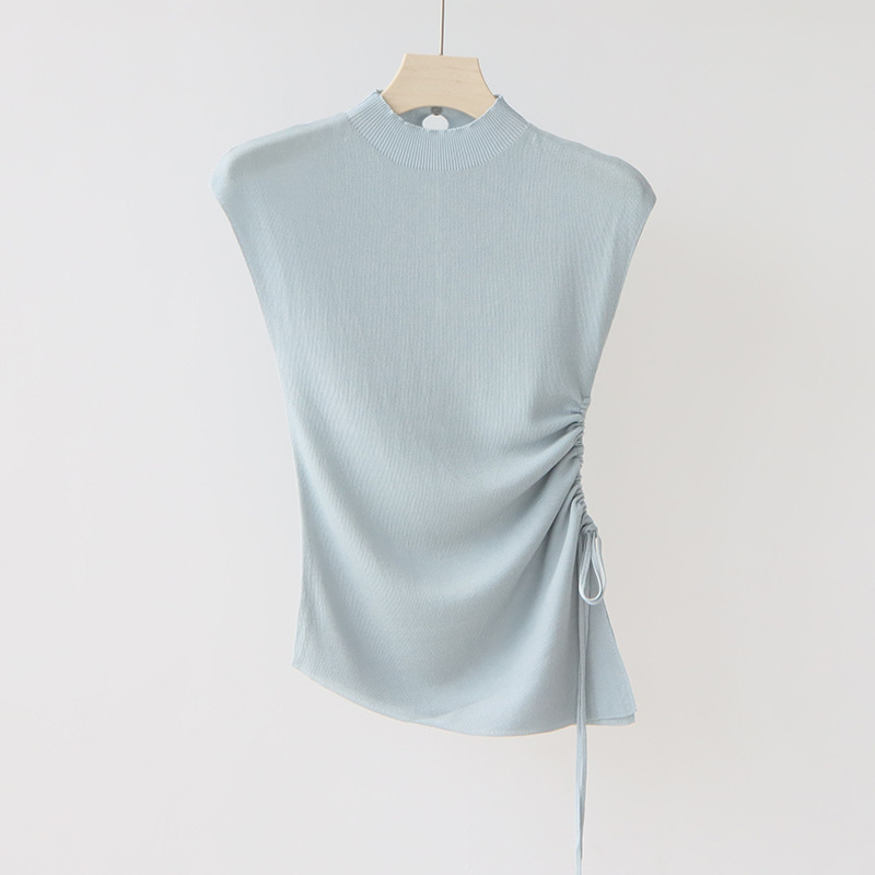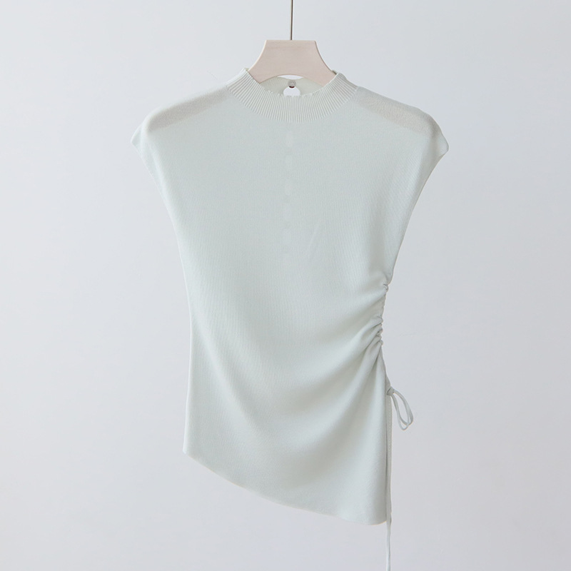 Lyocell Tencel 하프 하이 넥 니트 반팔 티셔츠 여성용 여름 새로운 슬림 핏 슬리밍 내베이스 셔츠 탑스토어 가기