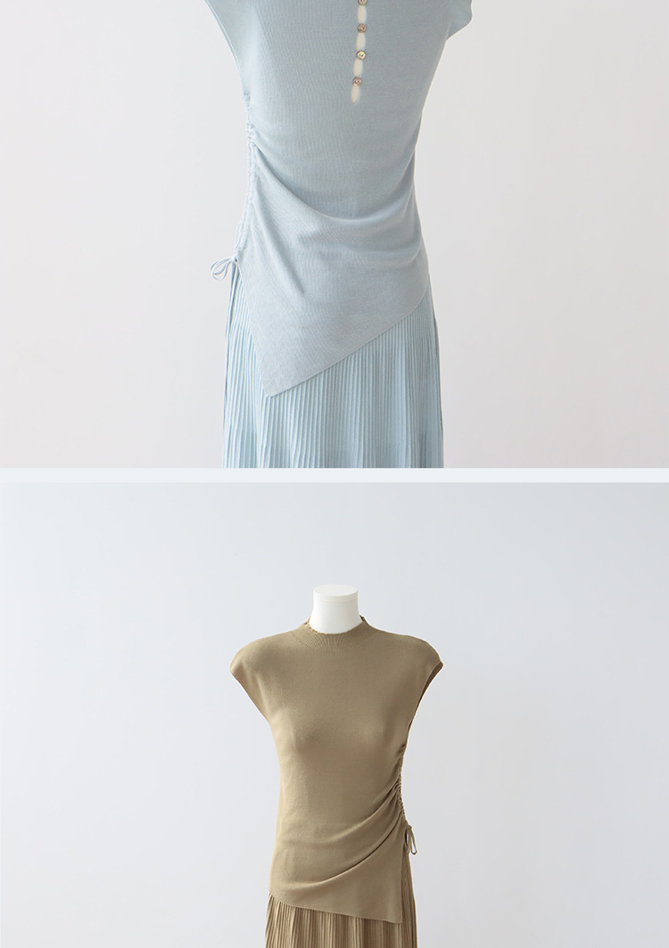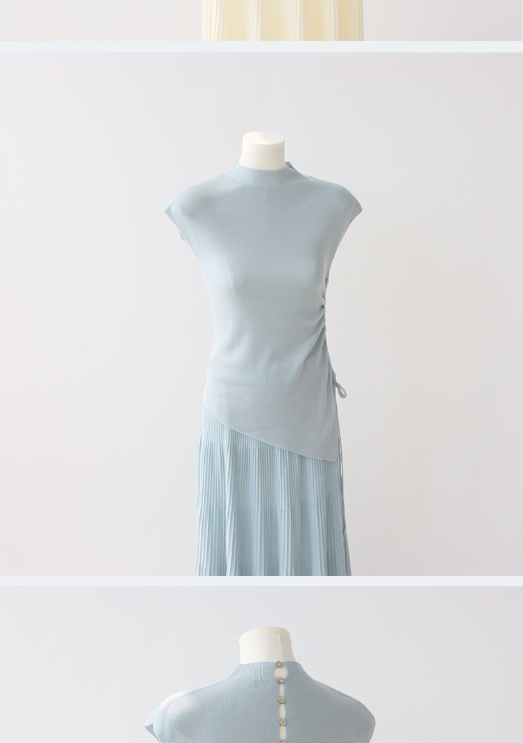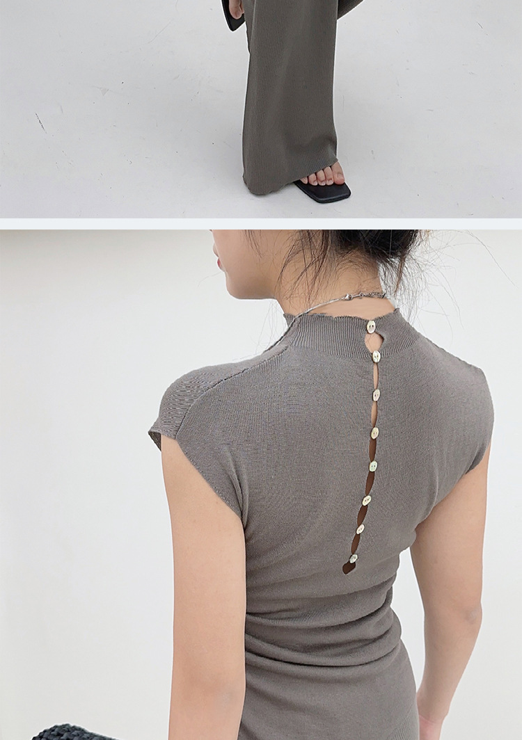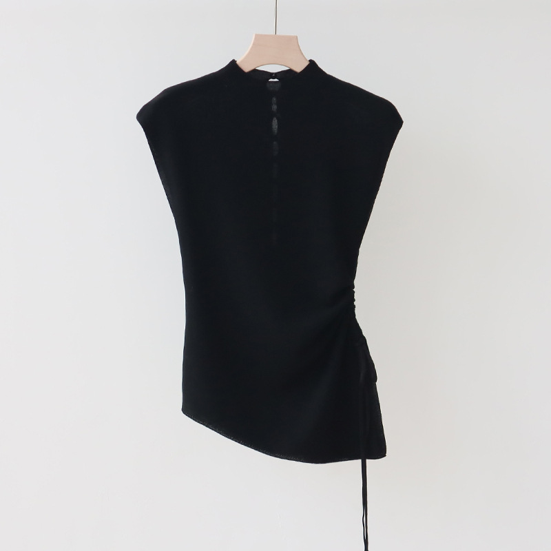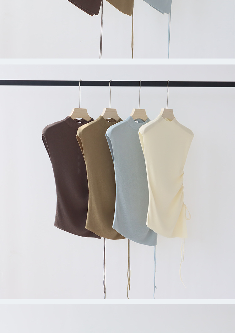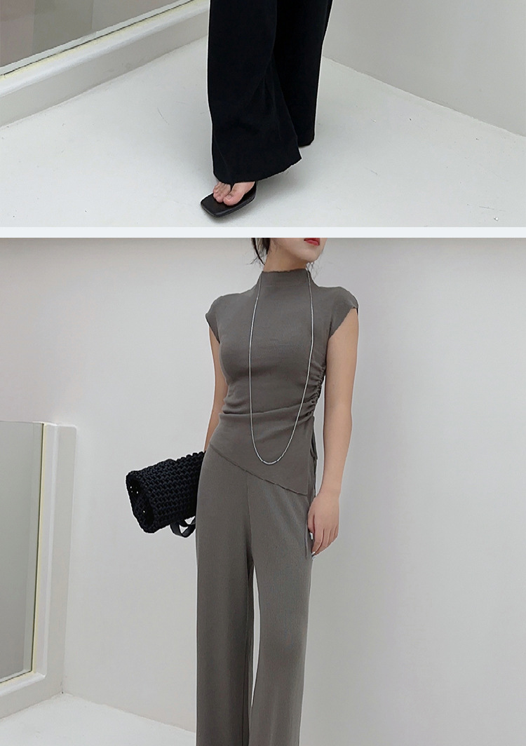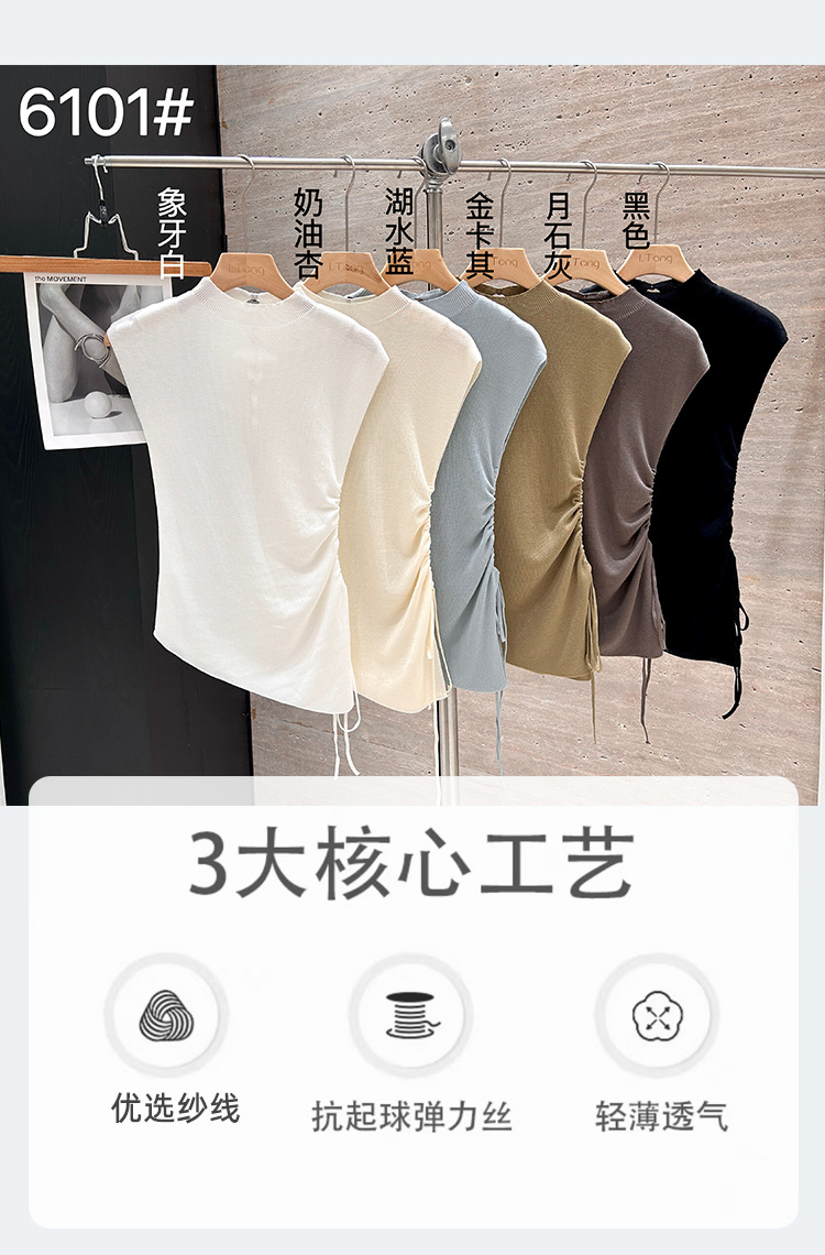 Lyocell Tencel 하프 하이 넥 니트 반팔 티셔츠 여성용 여름 새로운 슬림 핏 슬리밍 내베이스 셔츠 탑스토어 가기