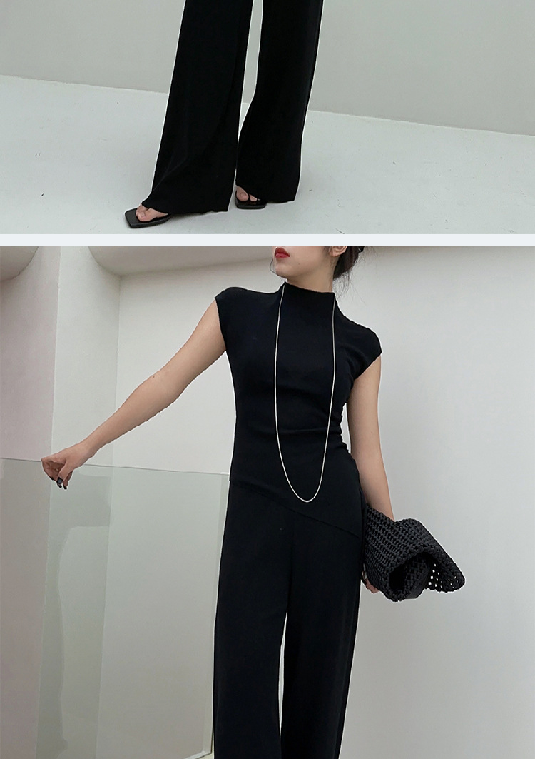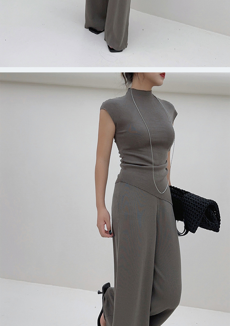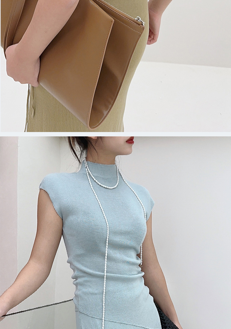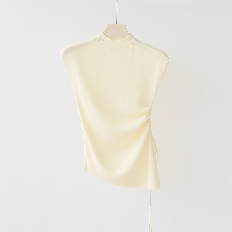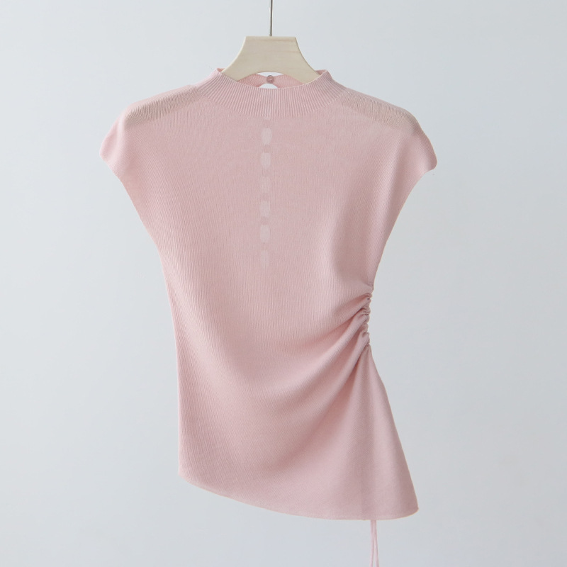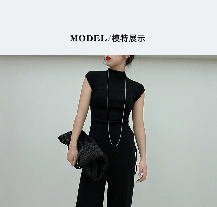 Lyocell Tencel 하프 하이 넥 니트 반팔 티셔츠 여성용 여름 새로운 슬림 핏 슬리밍 내베이스 셔츠 탑