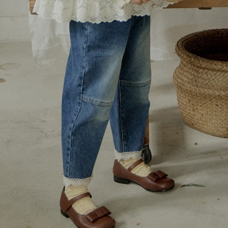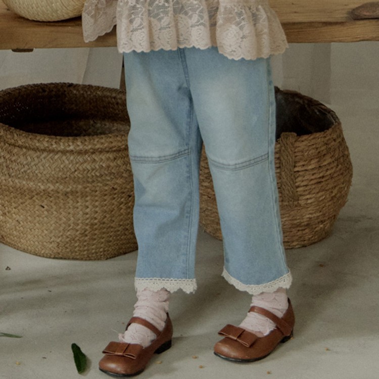 • Kq0123-라이트 데님 레이스 바지