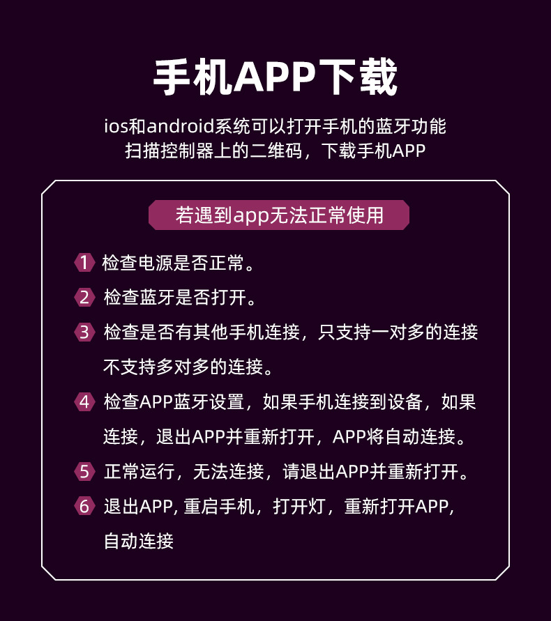 • 블루투스 휴대 전화 앱 (육각형) 원격 제어
