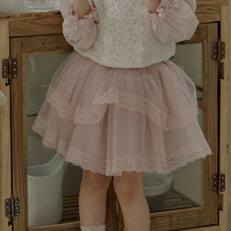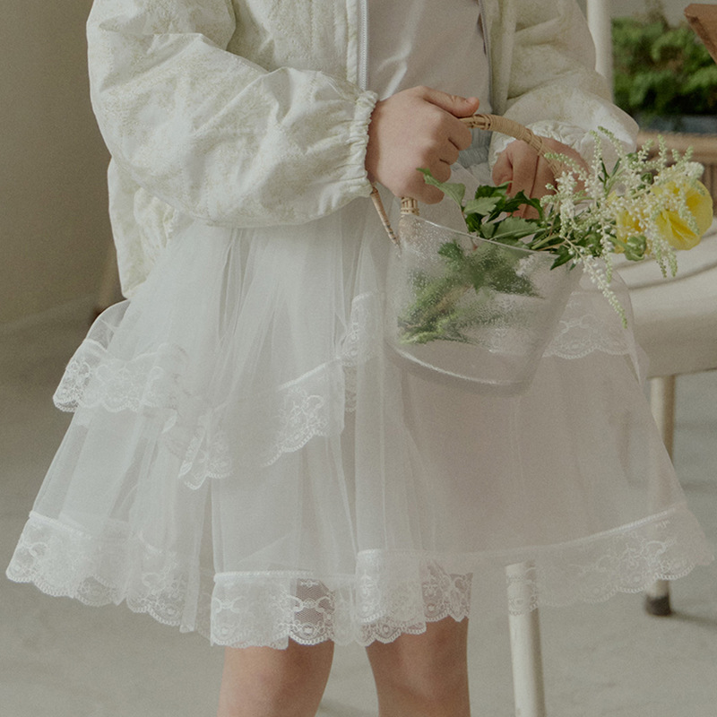여자 스커트 2025 봄 한국 어린이 여자 서양식 부드러운 다층 푹신한 원사 공주 스타일 스커트 재고 있음