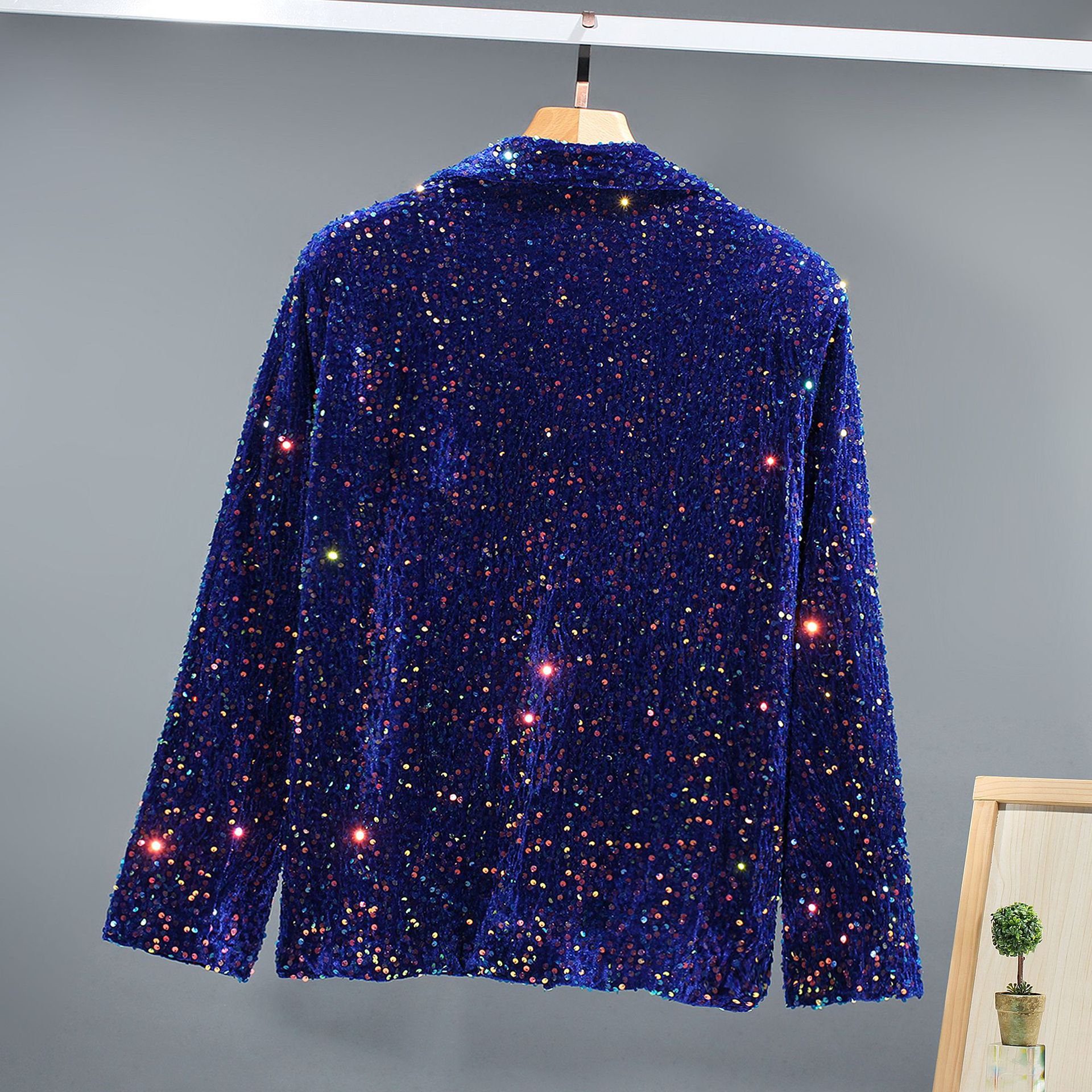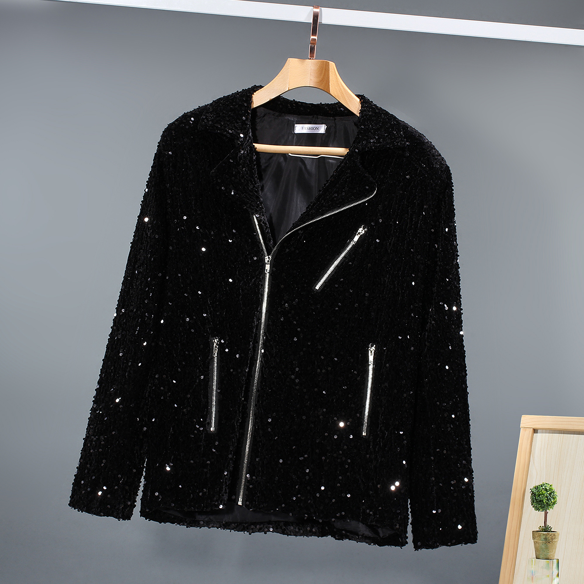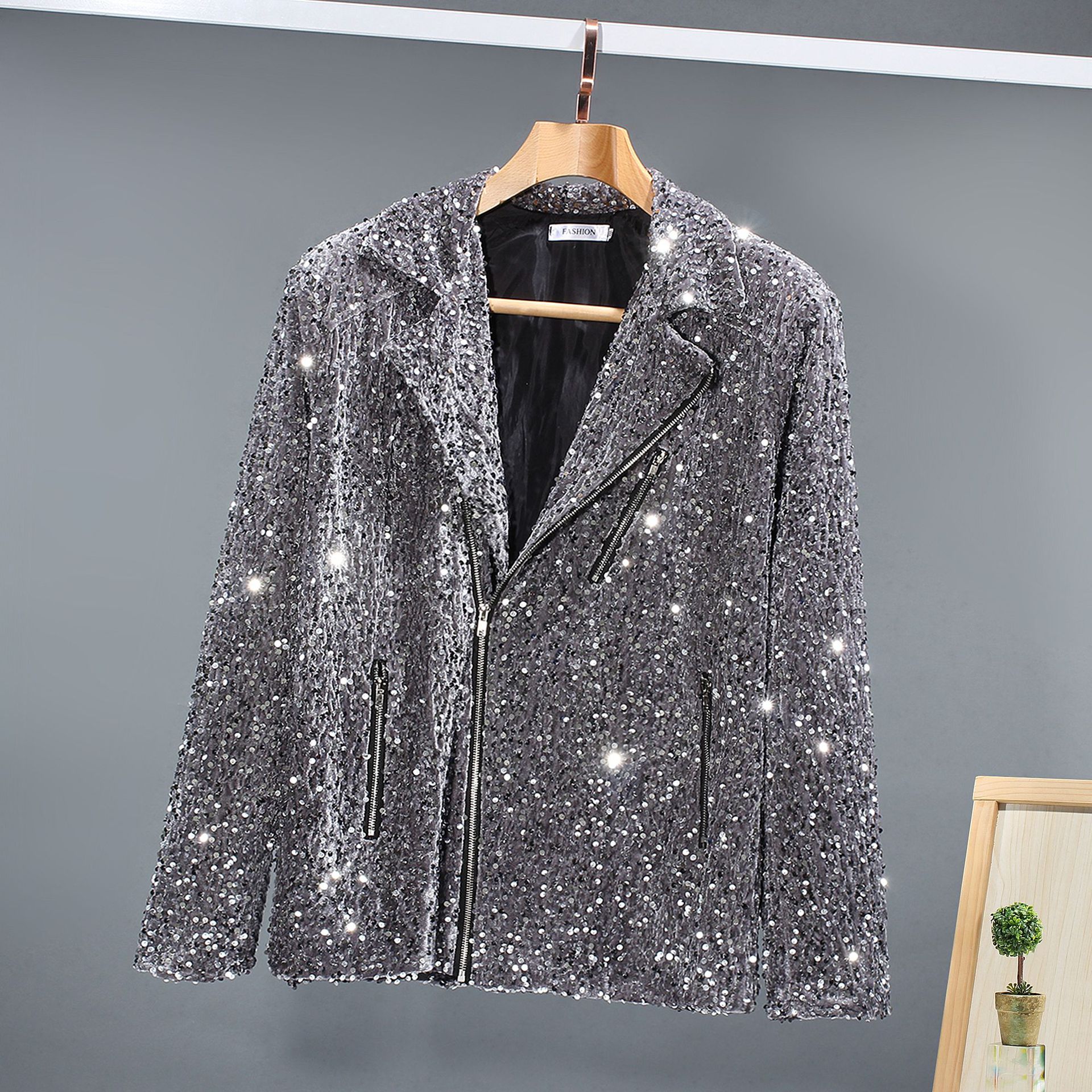 대외 무역 튀김 거리 인터넷 유명인 스타일 스팽글 남녀 오토바이 캐주얼 재킷 무대 스팽글 단색 그룹 공연 의류 남성스토어 가기