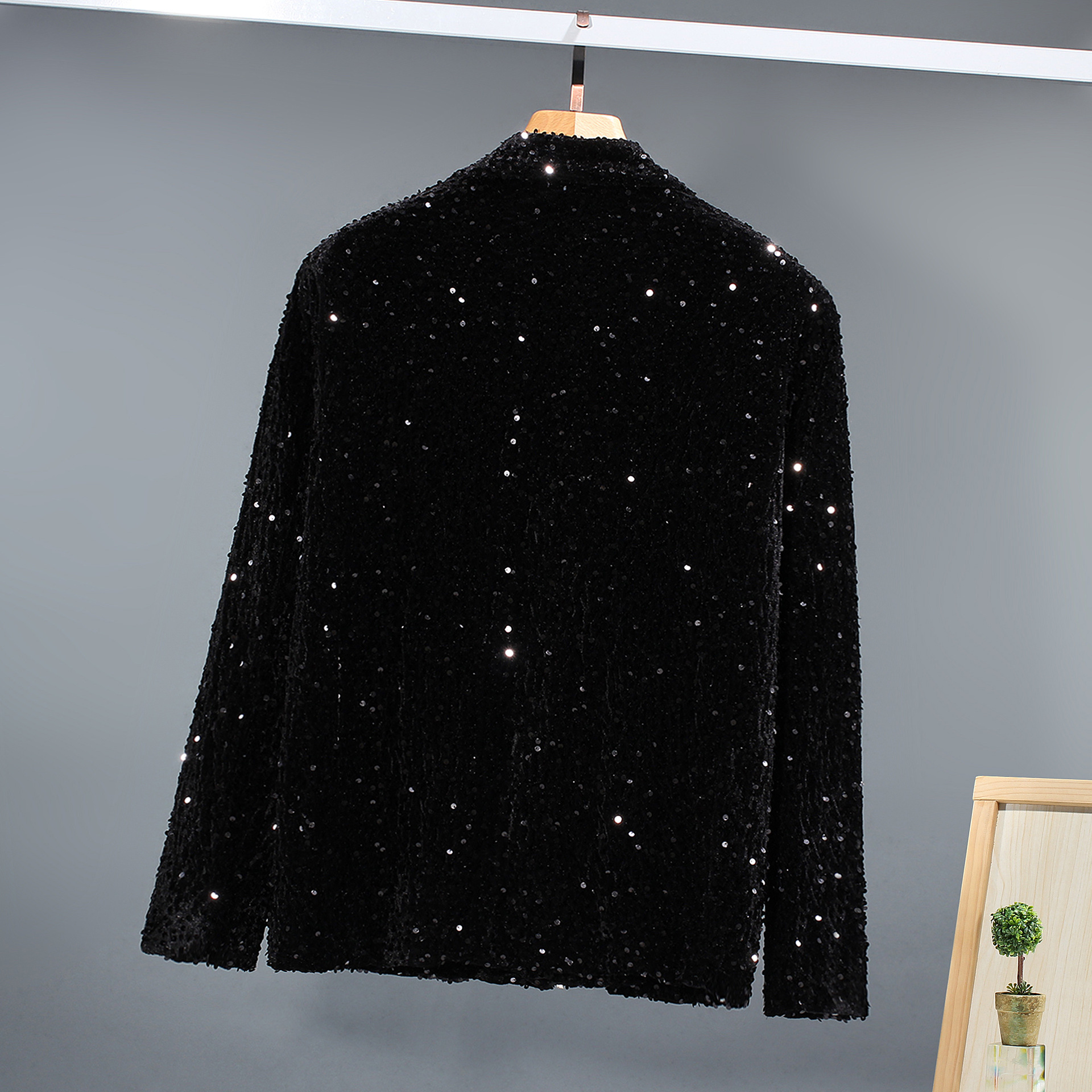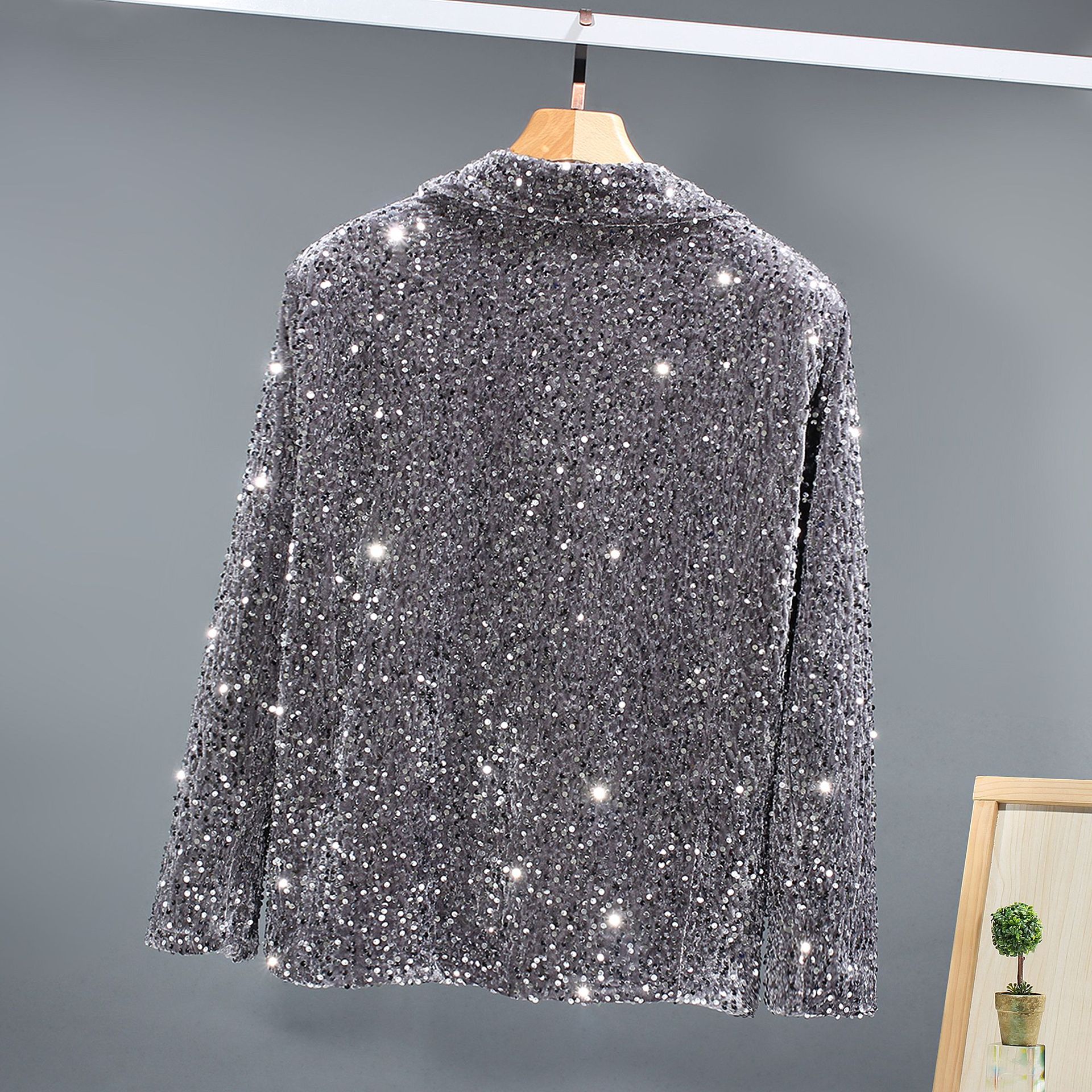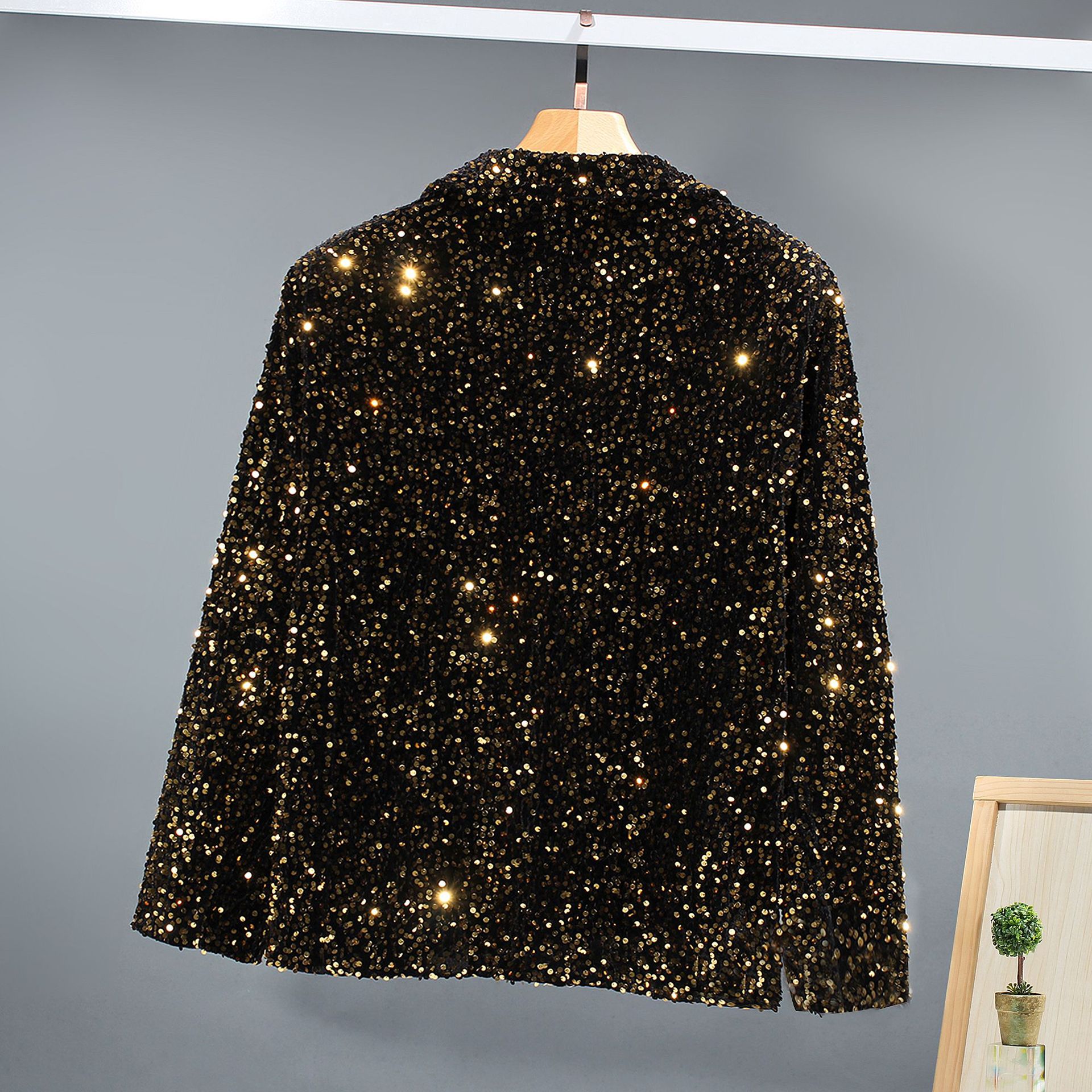 대외 무역 튀김 거리 인터넷 유명인 스타일 스팽글 남녀 오토바이 캐주얼 재킷 무대 스팽글 단색 그룹 공연 의류 남성스토어 가기