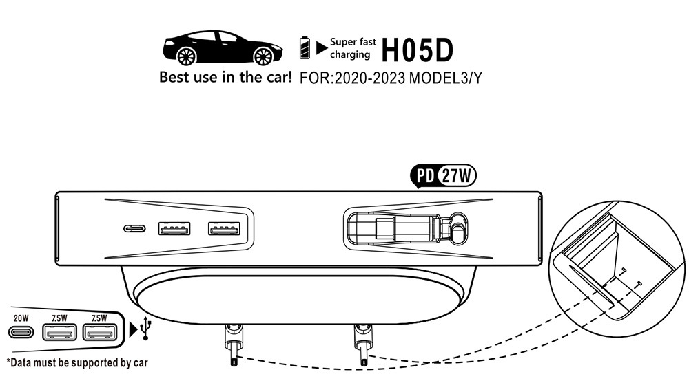 Tesla tesla model3Y 확장 Dock 1 m 텔레스코픽 라인 27W-PD 고속 충전 USBHUB에 적용 가능