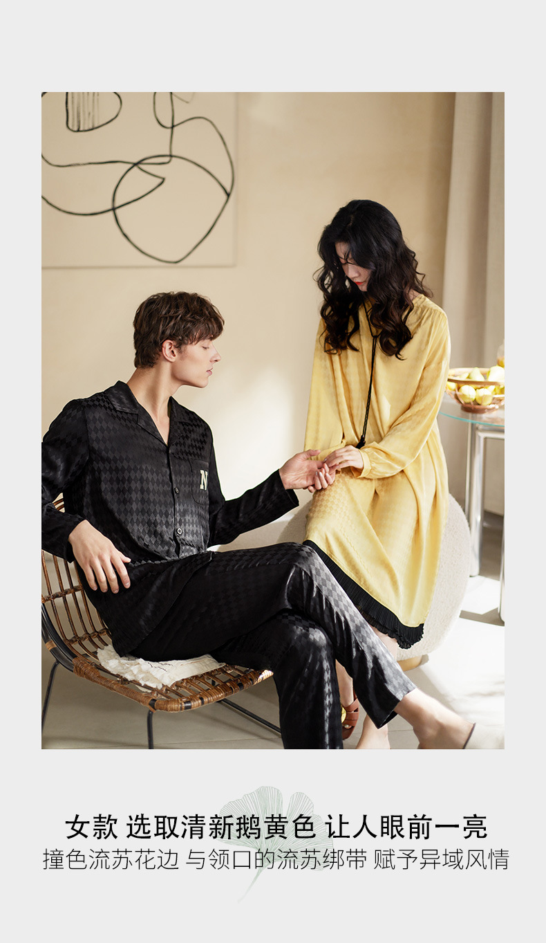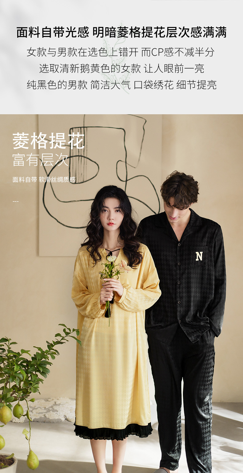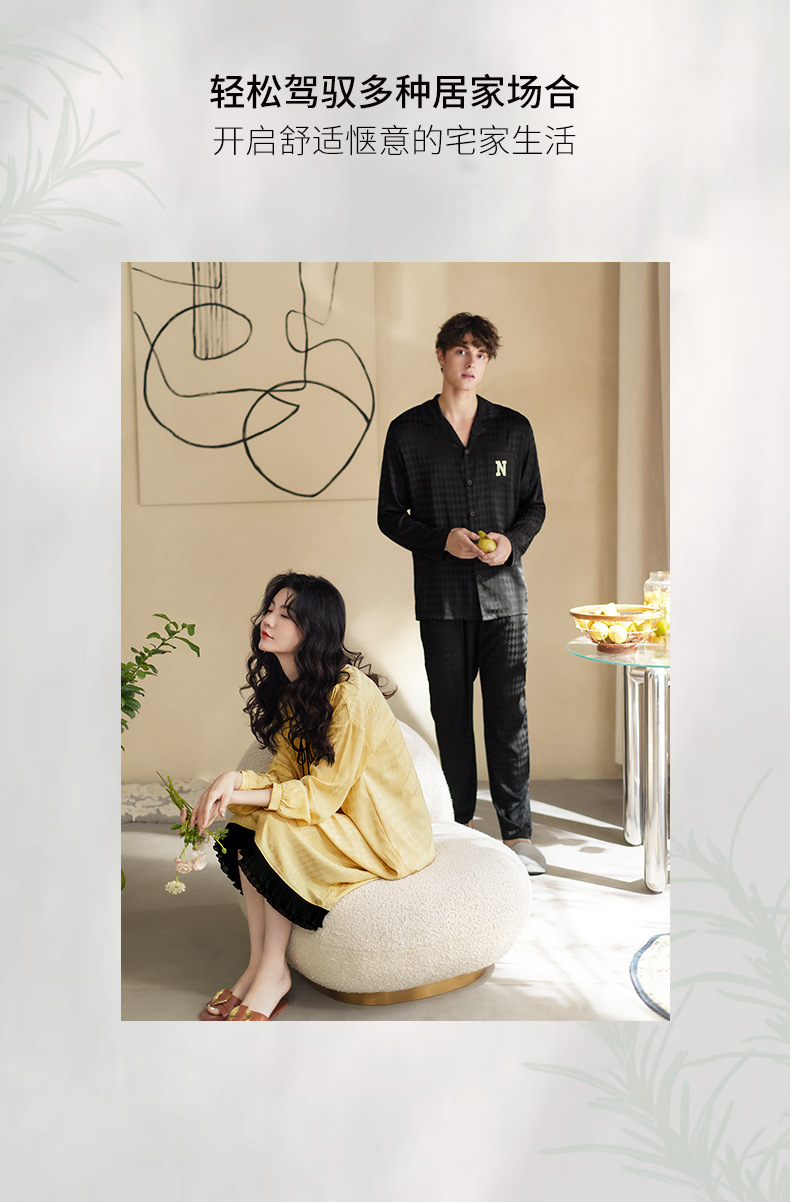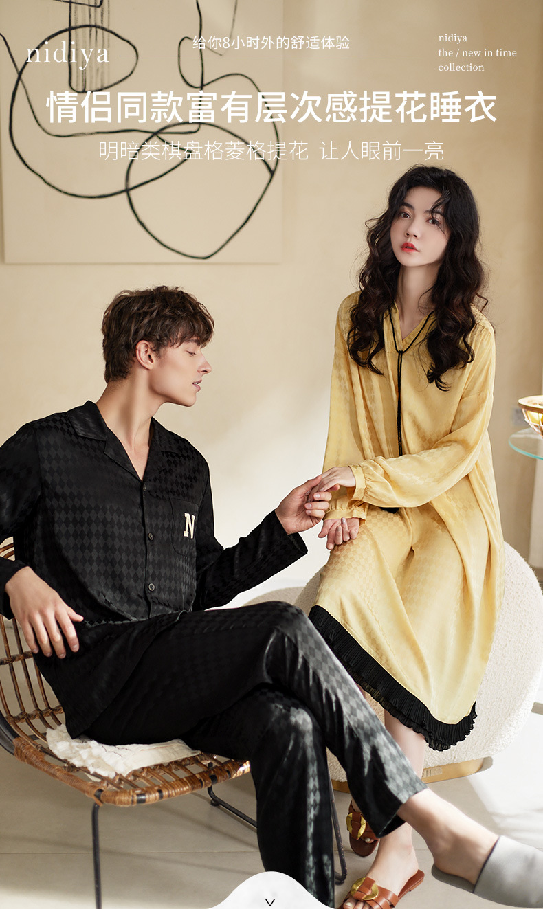 Nidiya 커플 잠옷 봄 아이스 실크 여성 나이트 드레스 옷깃 카디건 긴 소매 캐주얼 남성 봄과 가을 홈웨어 세트스토어 가기