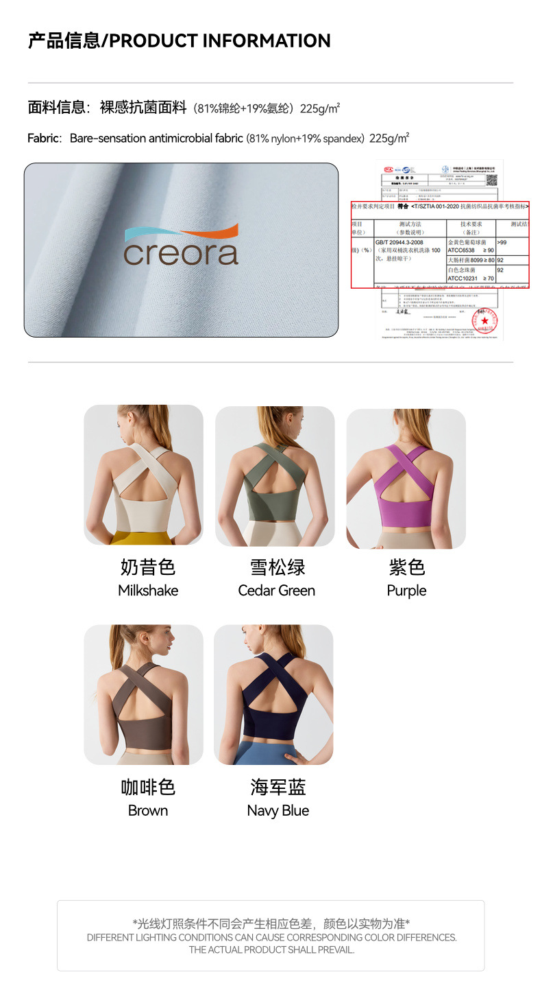 크로스보더 고강도 충격방지 스포츠 브라 러닝 피트니스 누드느낌 브라 크로스 섹시 백 디자인 항균 요가탑