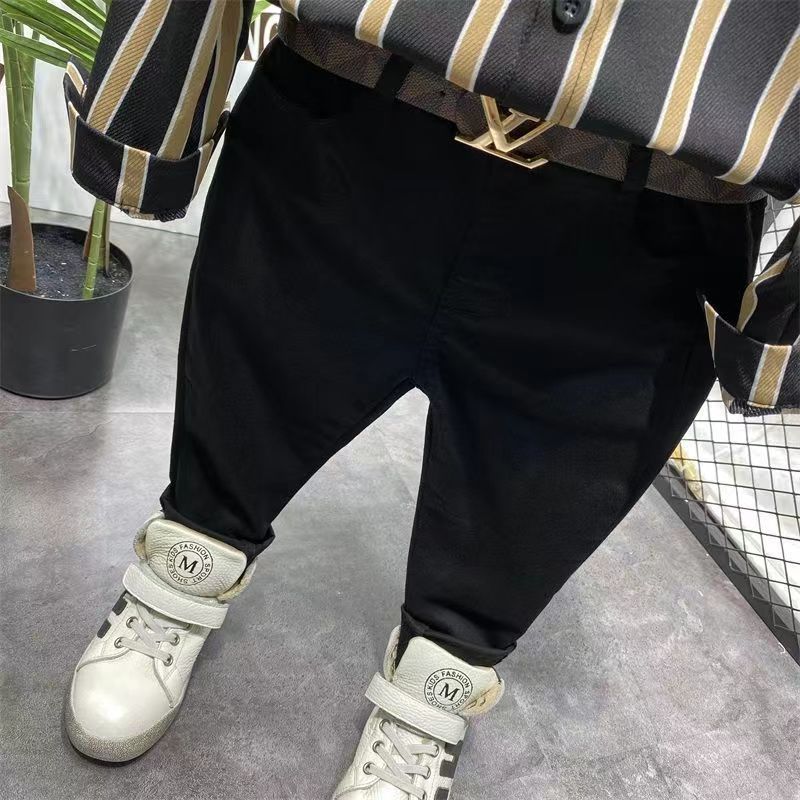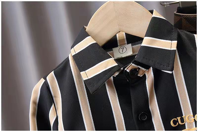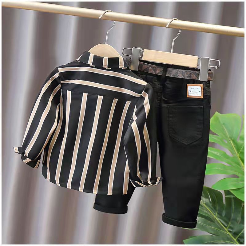 소년 봄, 가을 정장 2025 소년과 소녀 패션 스트라이프 긴팔 셔츠 슬림 스트레치 캐주얼 바지 2 피스 세트