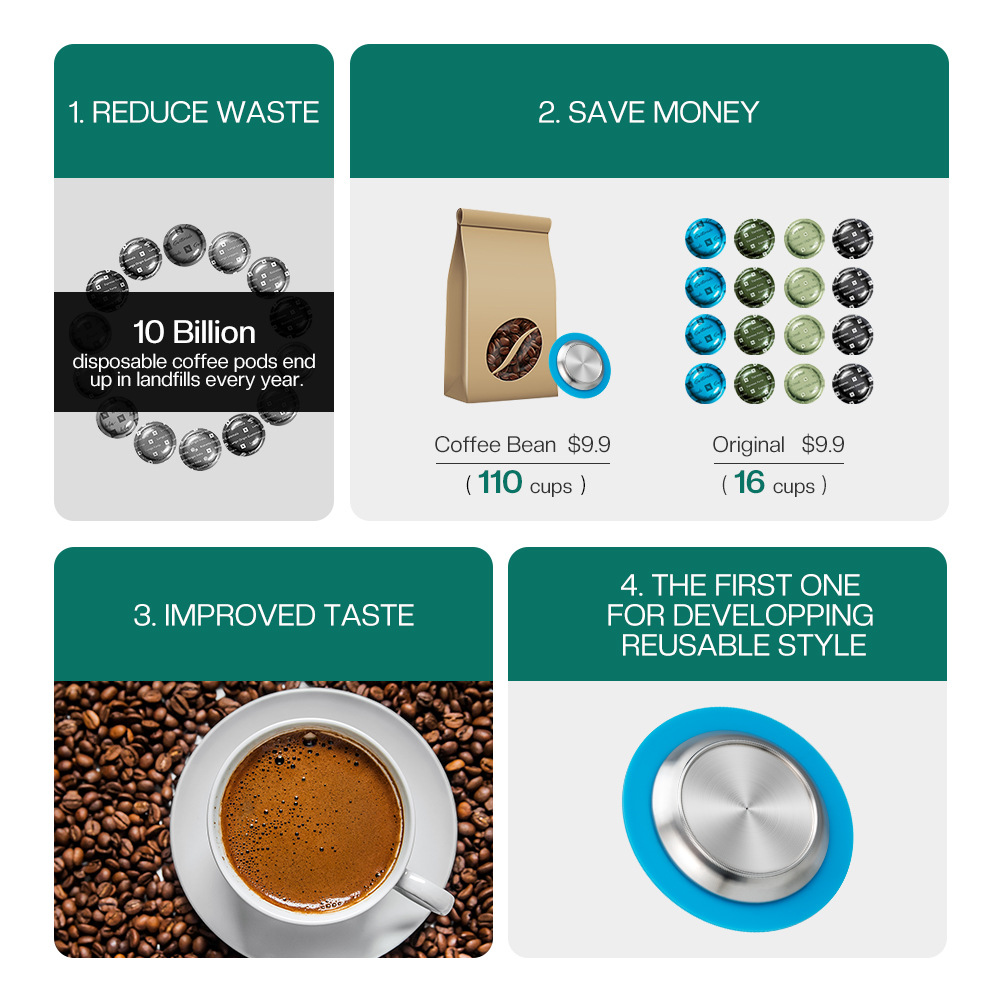 Zenius 커피 머신 캡슐 쉘 스테인레스 스틸 필터 재사용 캡슐 커피 필터 파우더 패키지와 호환