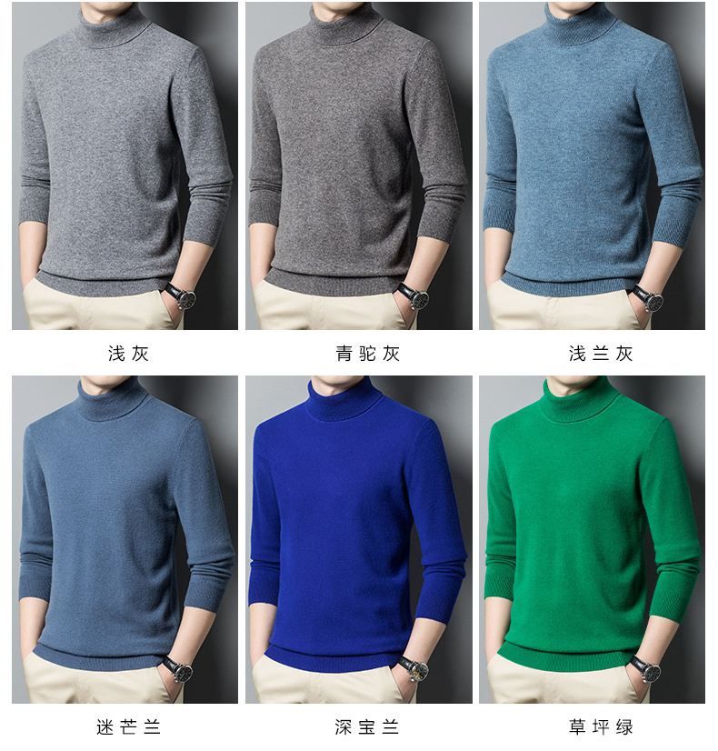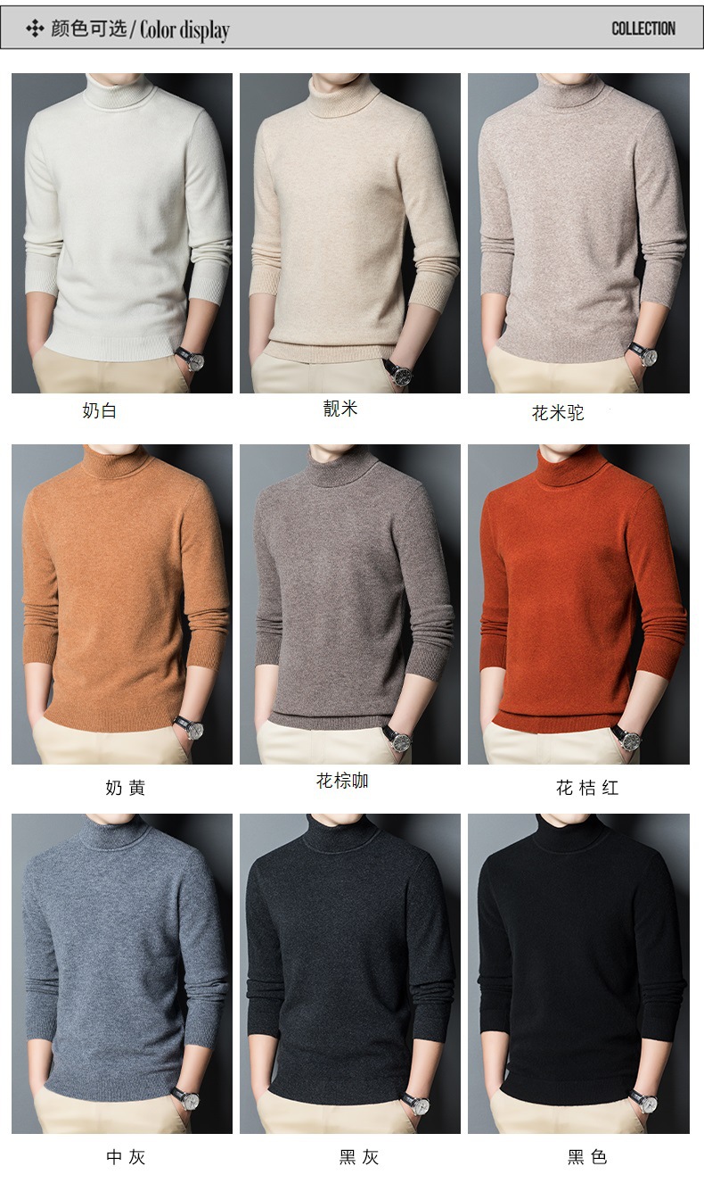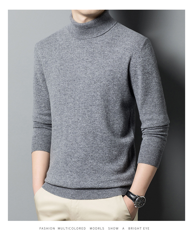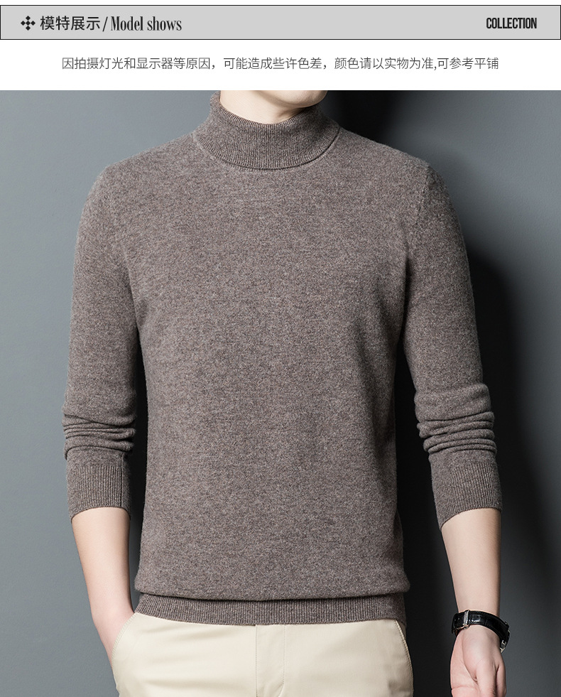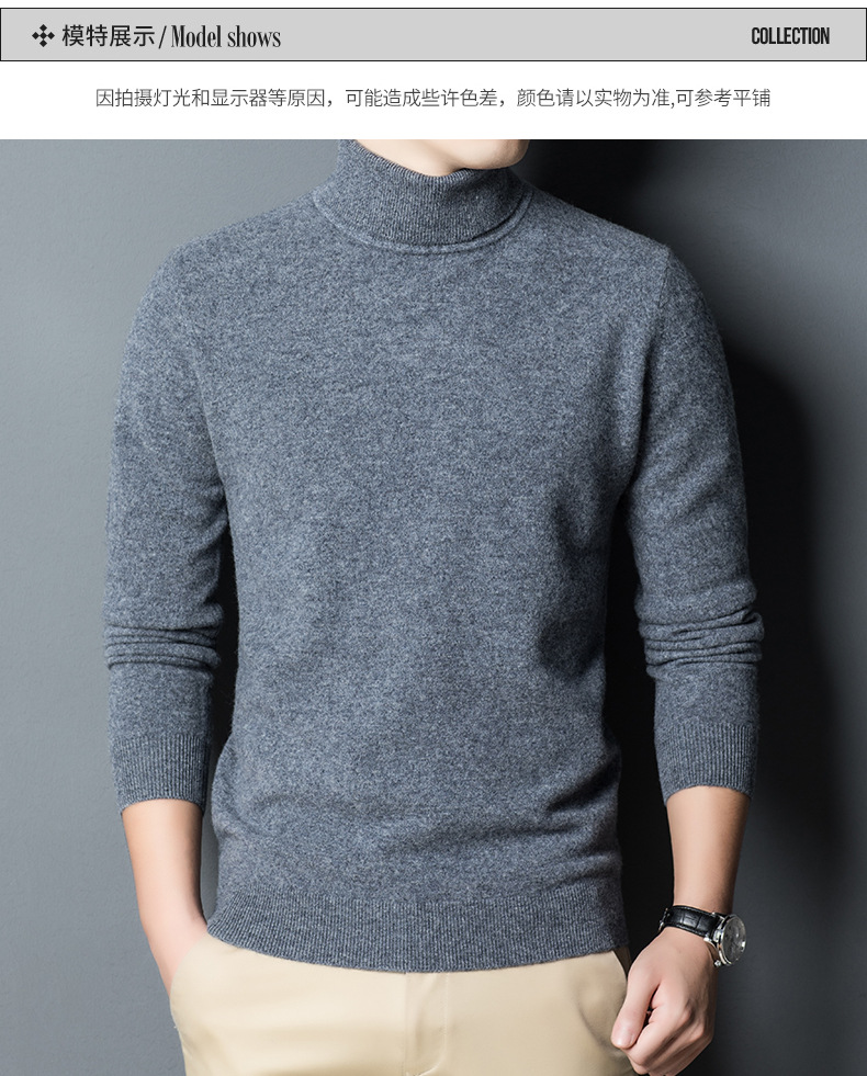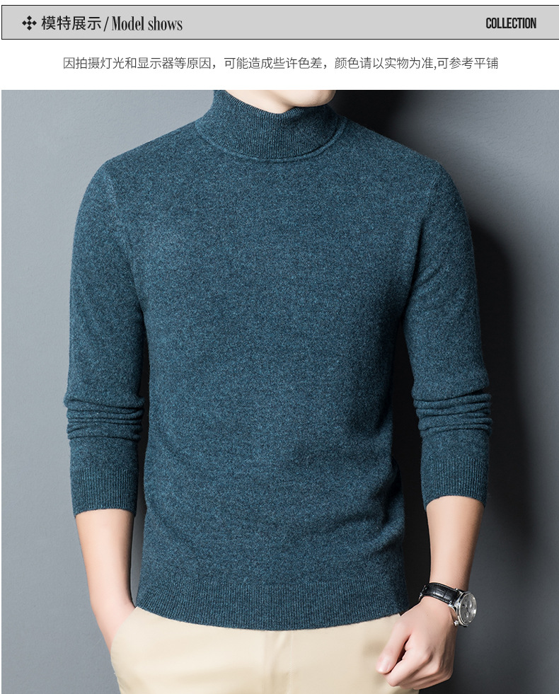 가을과 겨울 푸 위안 모직 스웨터 남자 100% 울 터틀넥 단색 따뜻한 니트 바닥 스웨터 남자스토어 가기