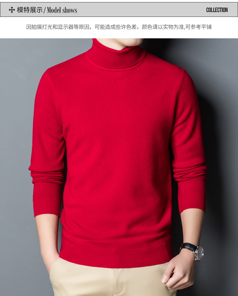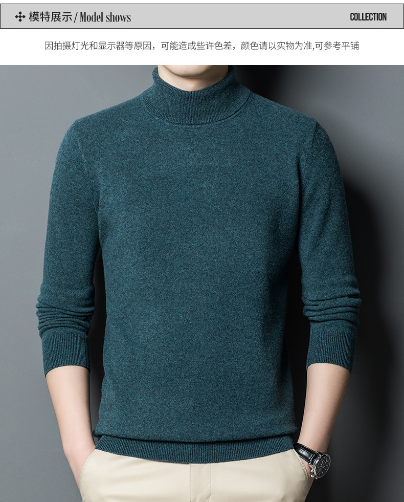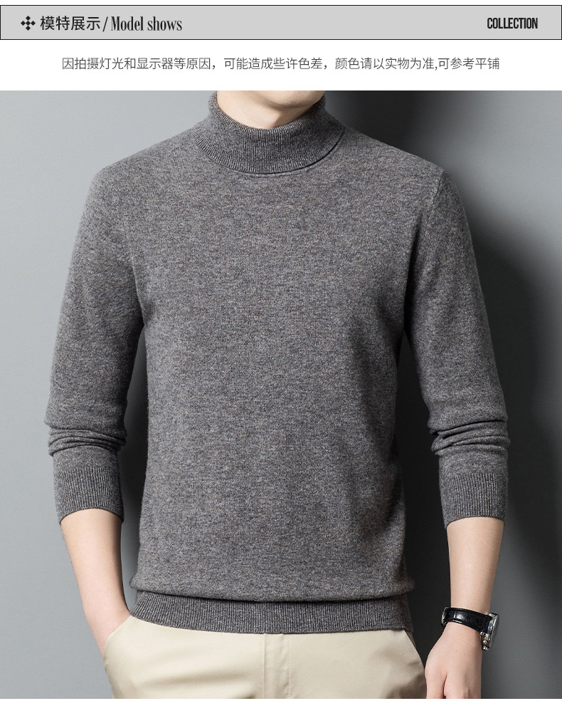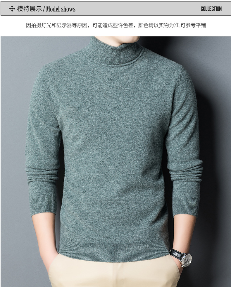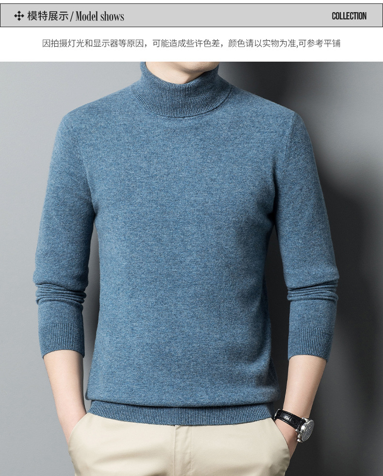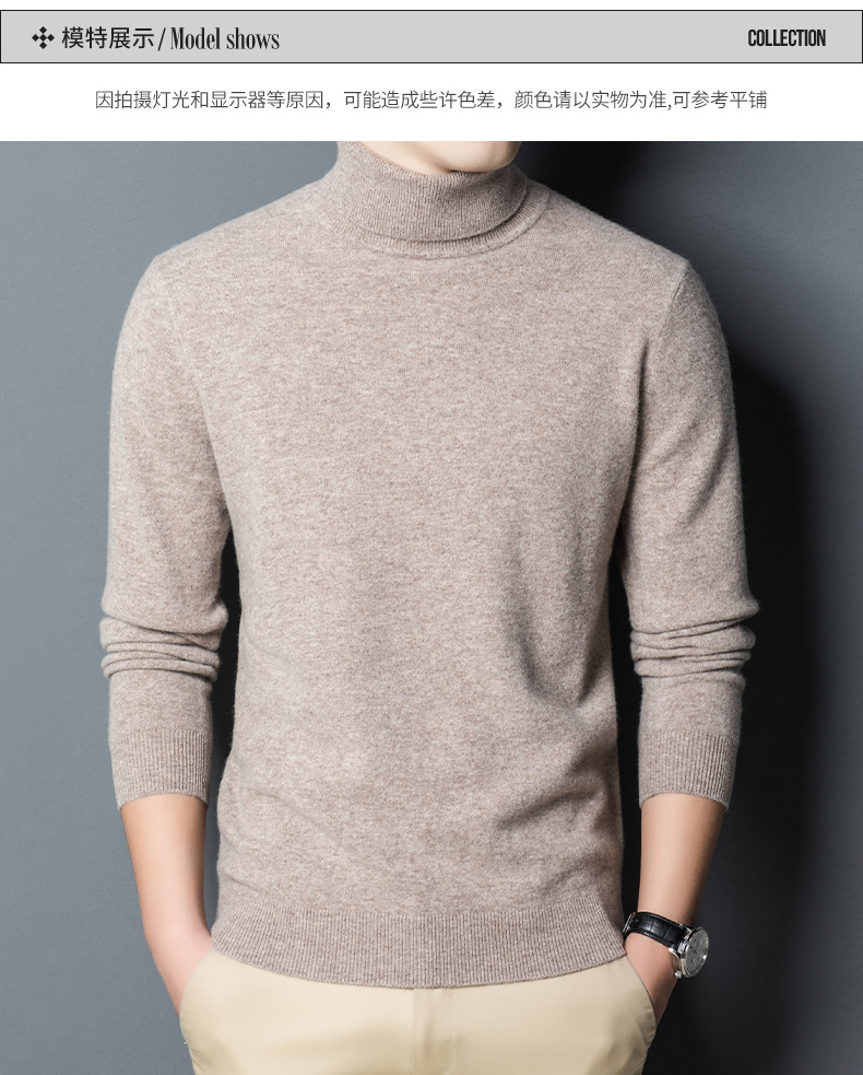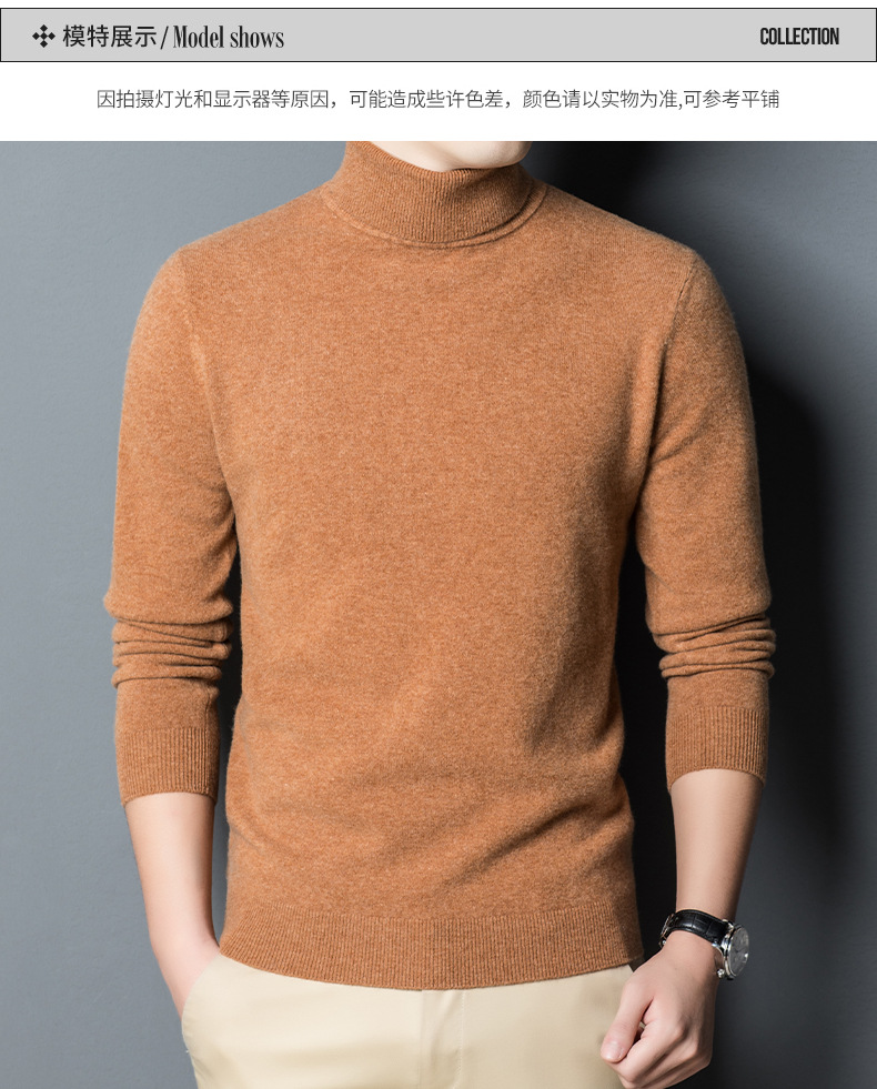 가을과 겨울 푸 위안 모직 스웨터 남자 100% 울 터틀넥 단색 따뜻한 니트 바닥 스웨터 남자스토어 가기