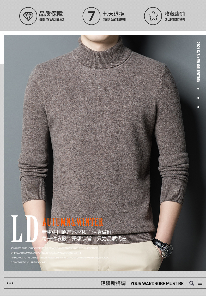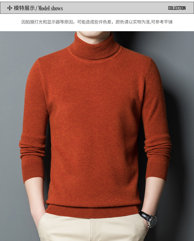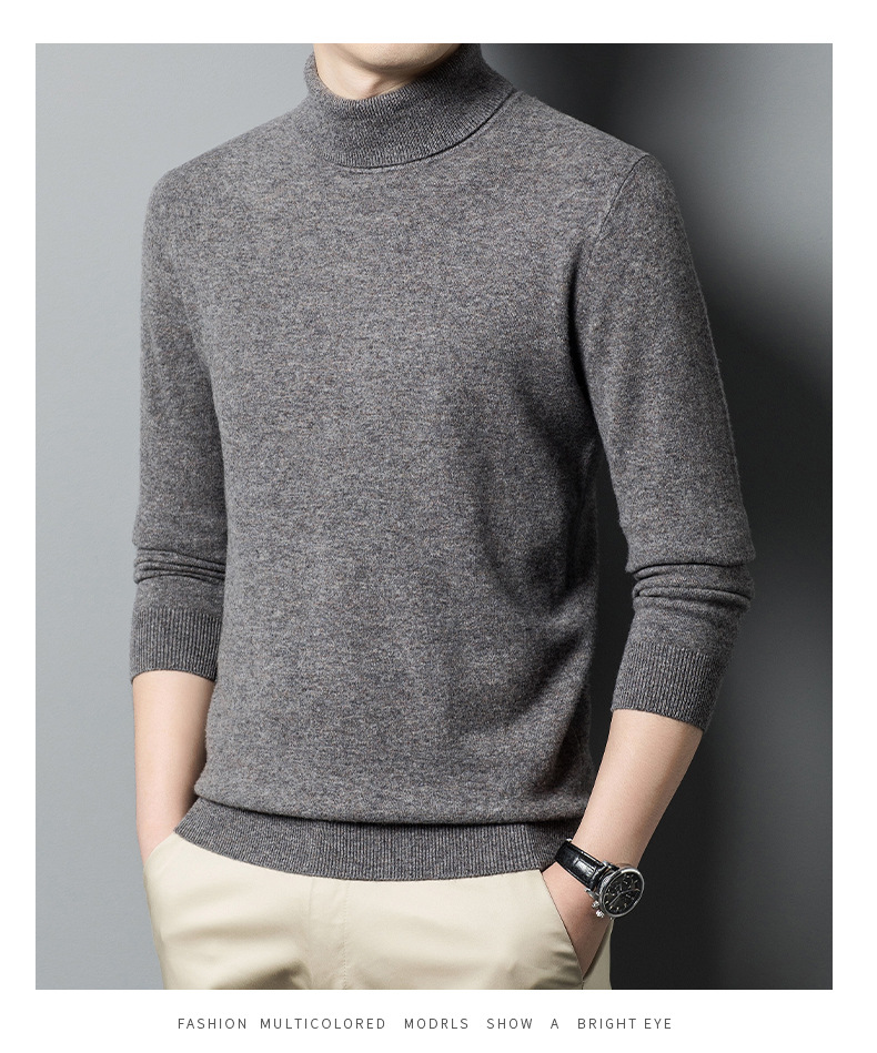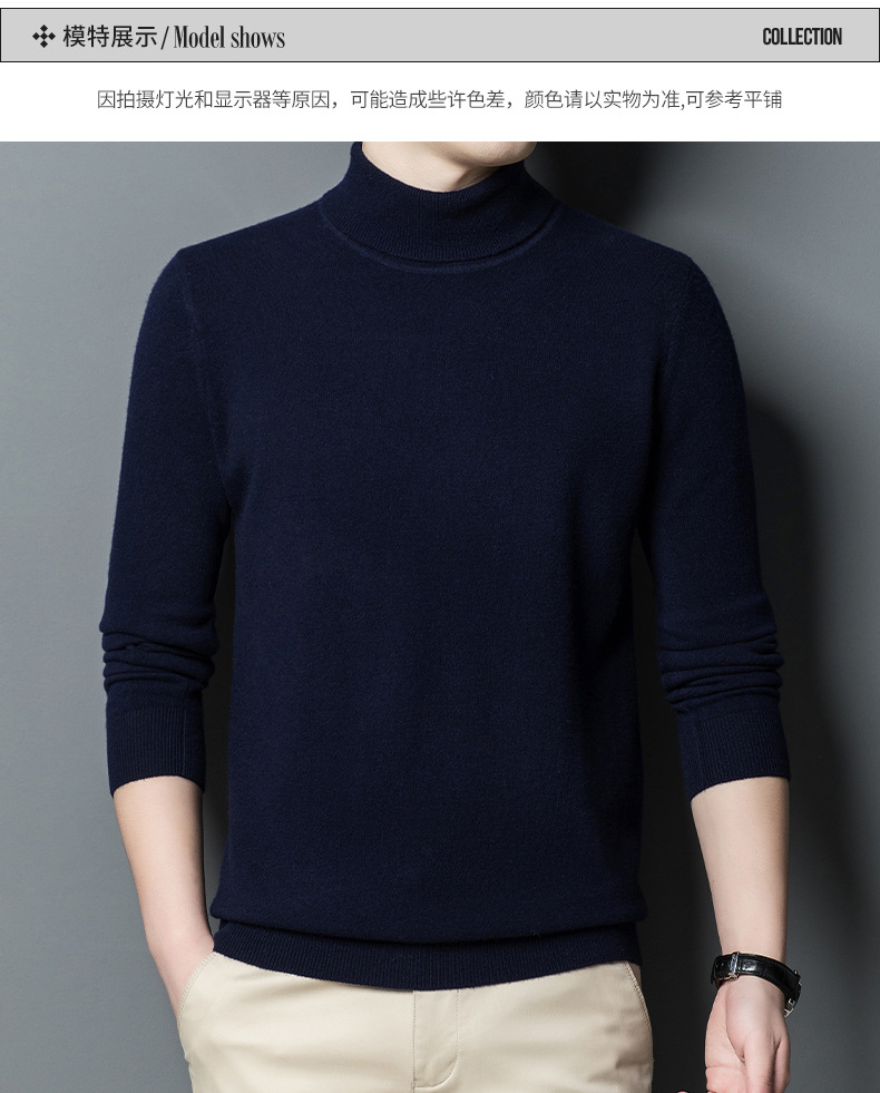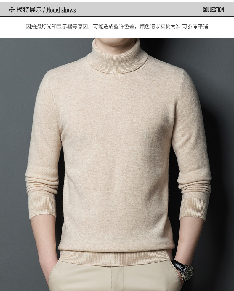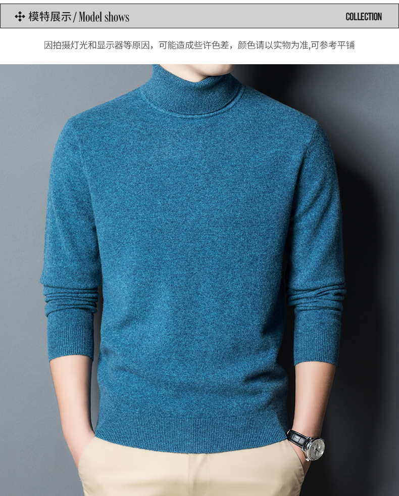 가을과 겨울 푸 위안 모직 스웨터 남자 100% 울 터틀넥 단색 따뜻한 니트 바닥 스웨터 남자스토어 가기