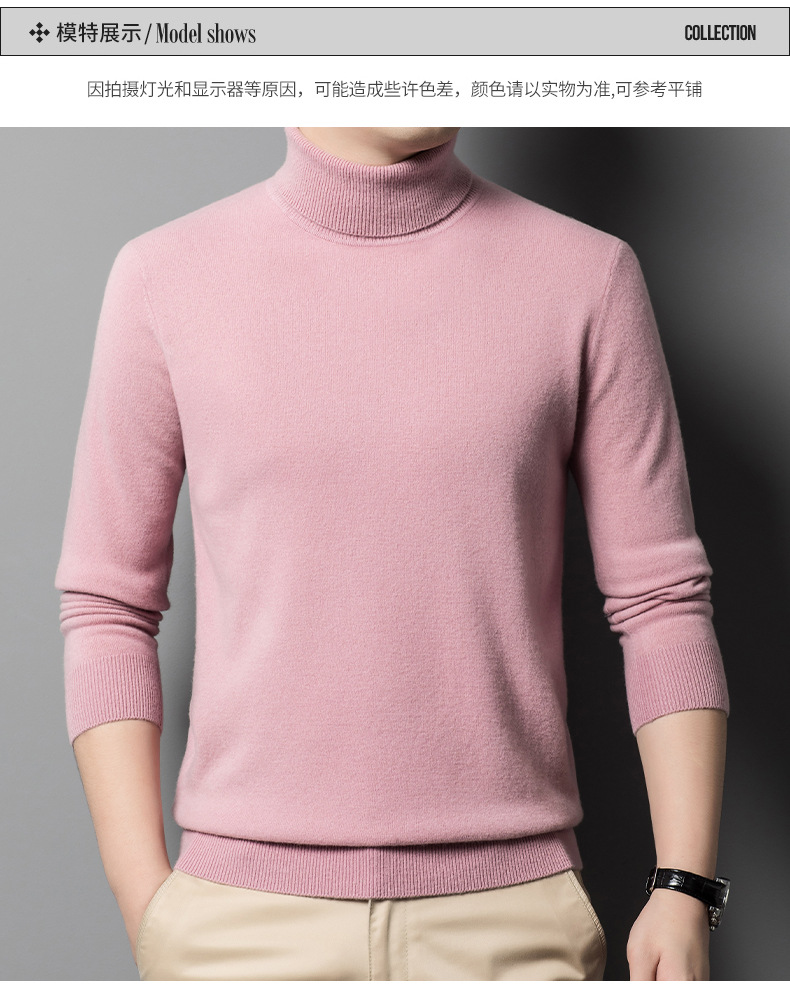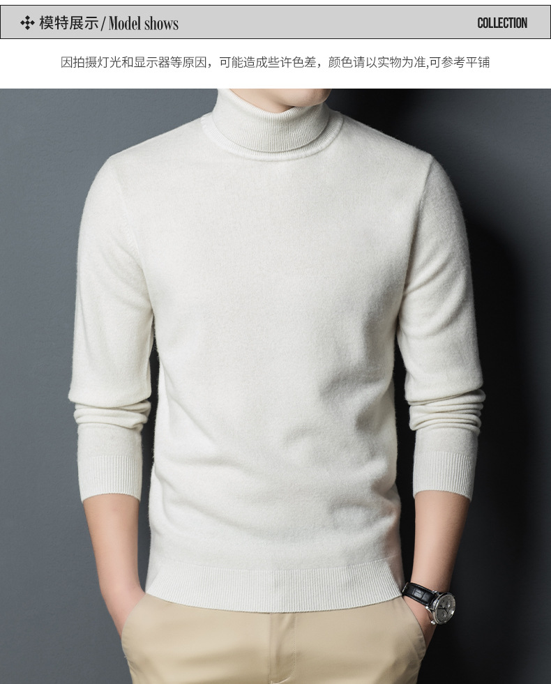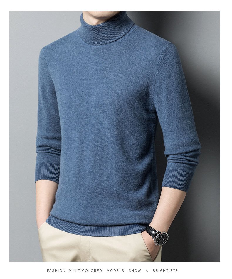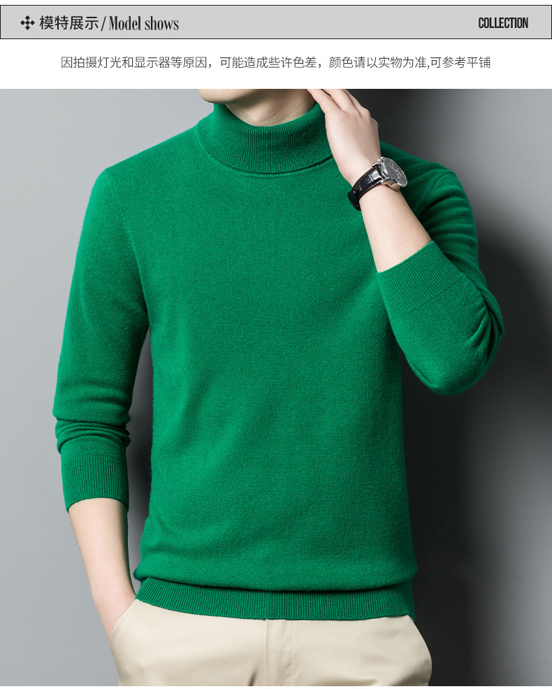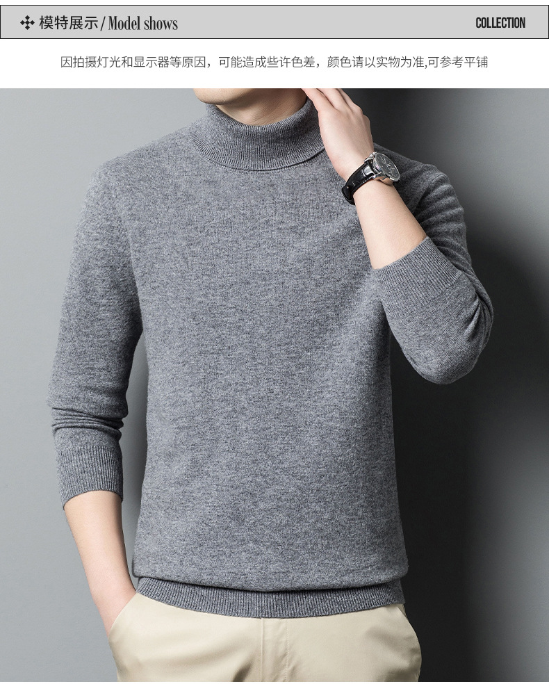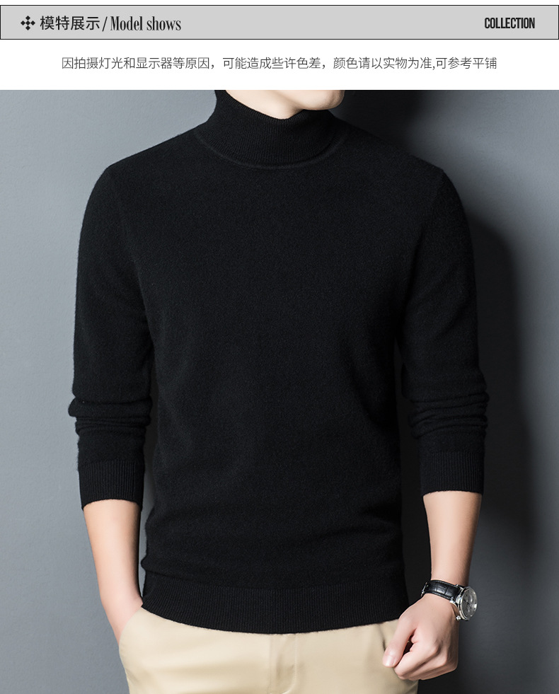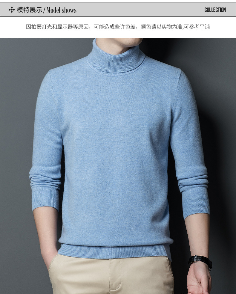 가을과 겨울 푸 위안 모직 스웨터 남자 100% 울 터틀넥 단색 따뜻한 니트 바닥 스웨터 남자스토어 가기