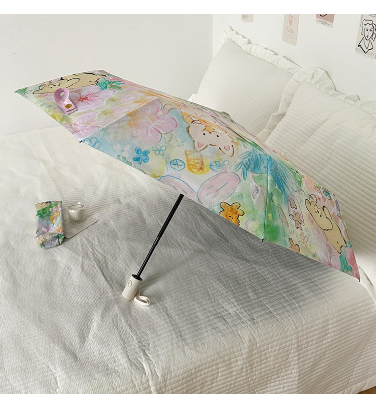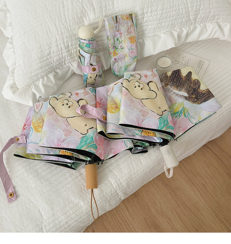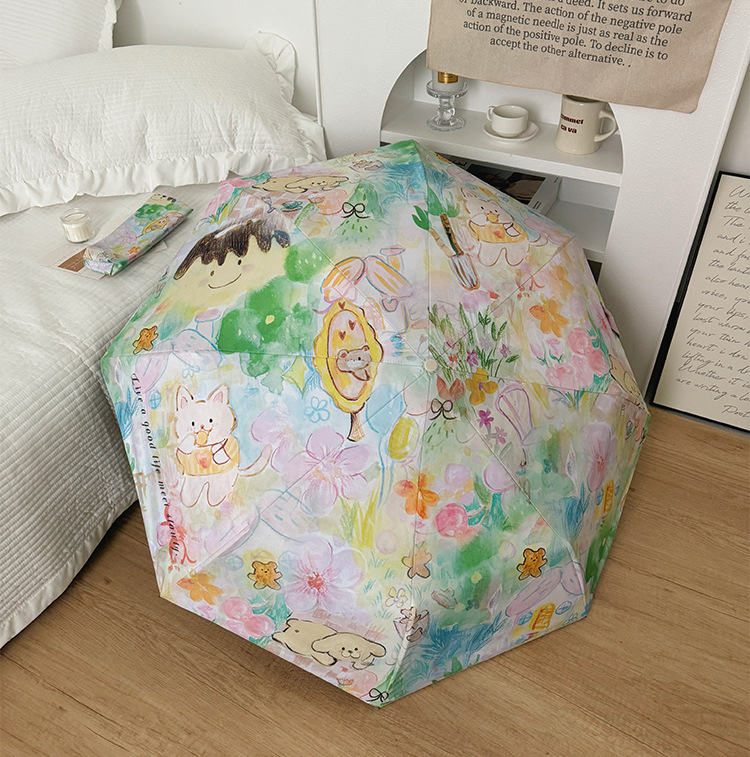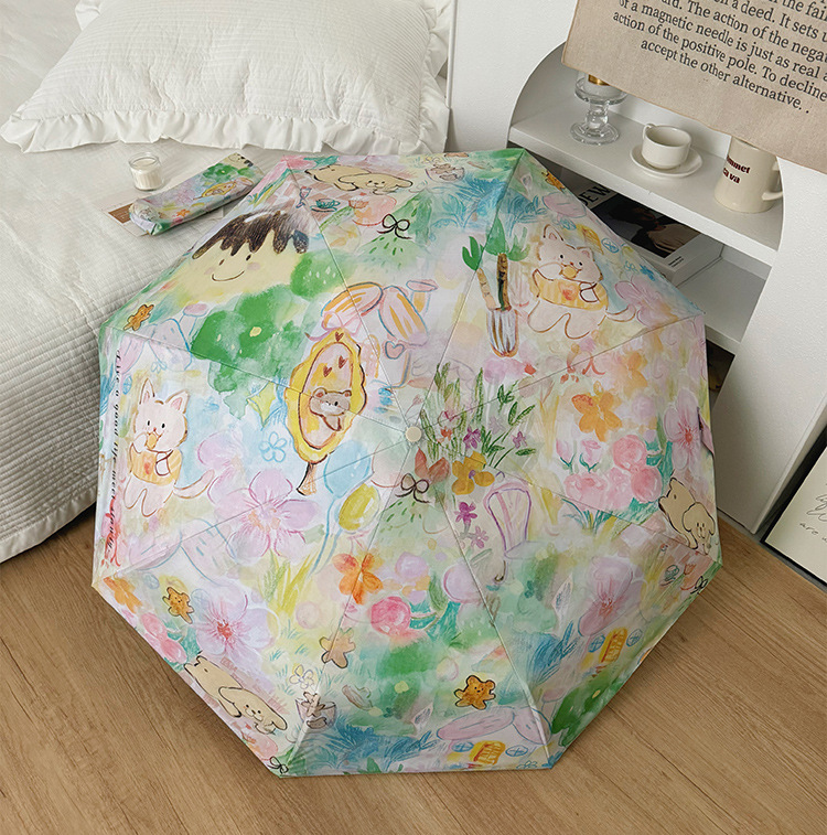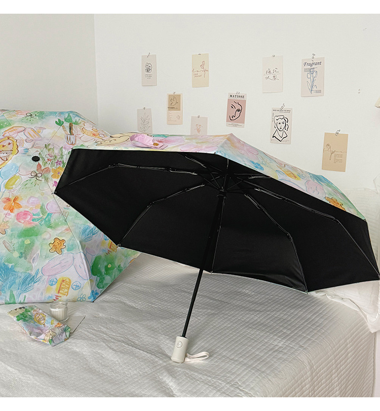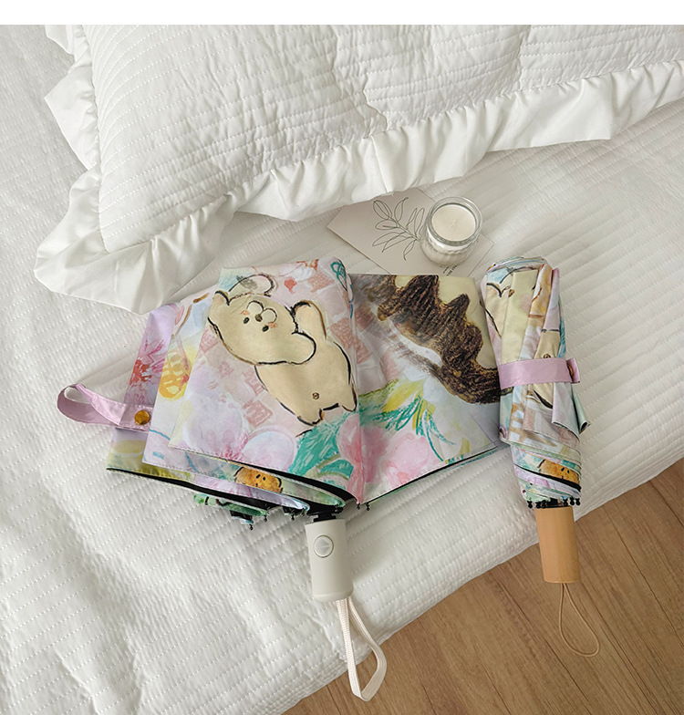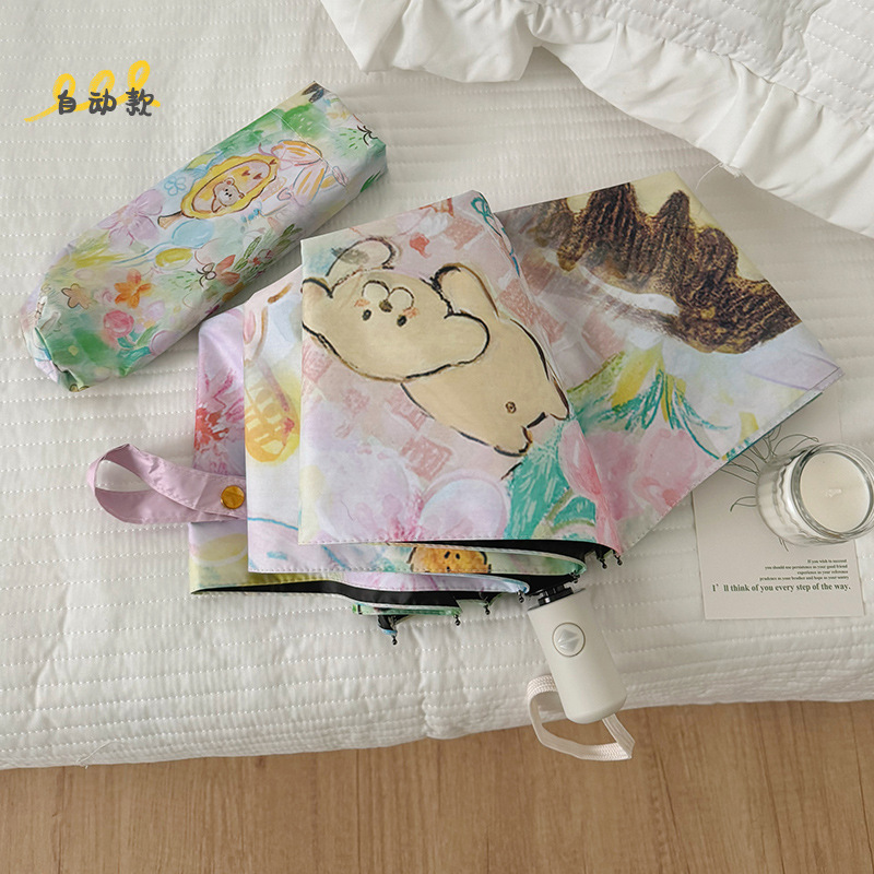 새로운 유화, 스타일 우산 태양 보호 자외선 보호 태양 우산 비 이중 사용 강화 자동 우산 휴대용 우산스토어 가기