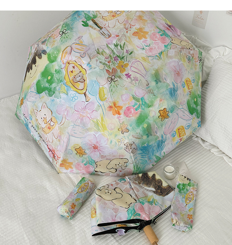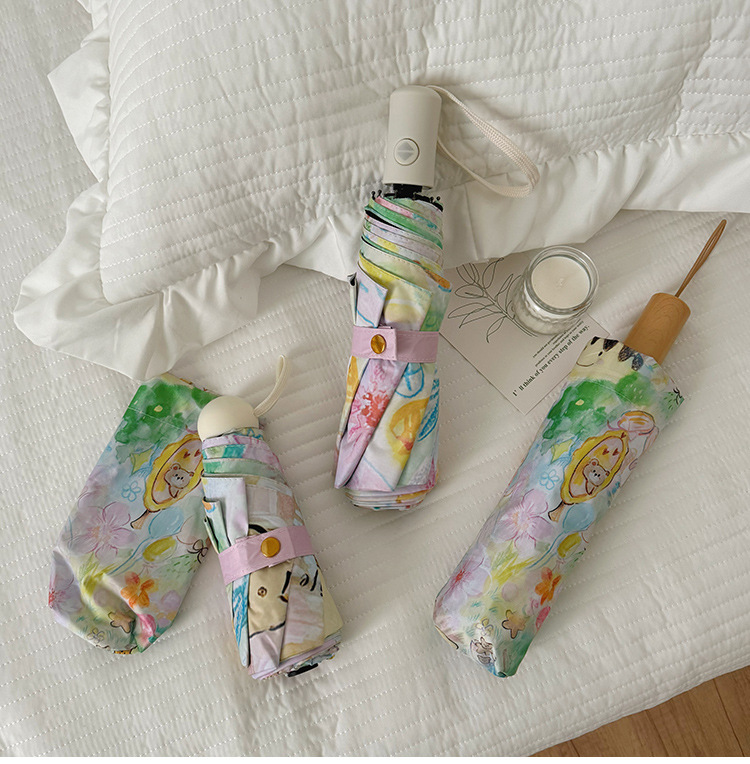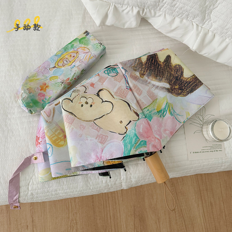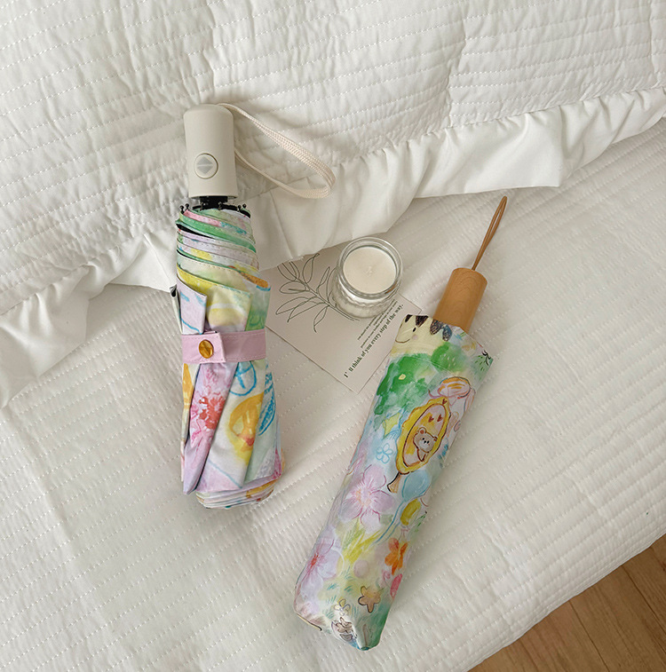 새로운 유화, 스타일 우산 태양 보호 자외선 보호 태양 우산 비 이중 사용 강화 자동 우산 휴대용 우산
