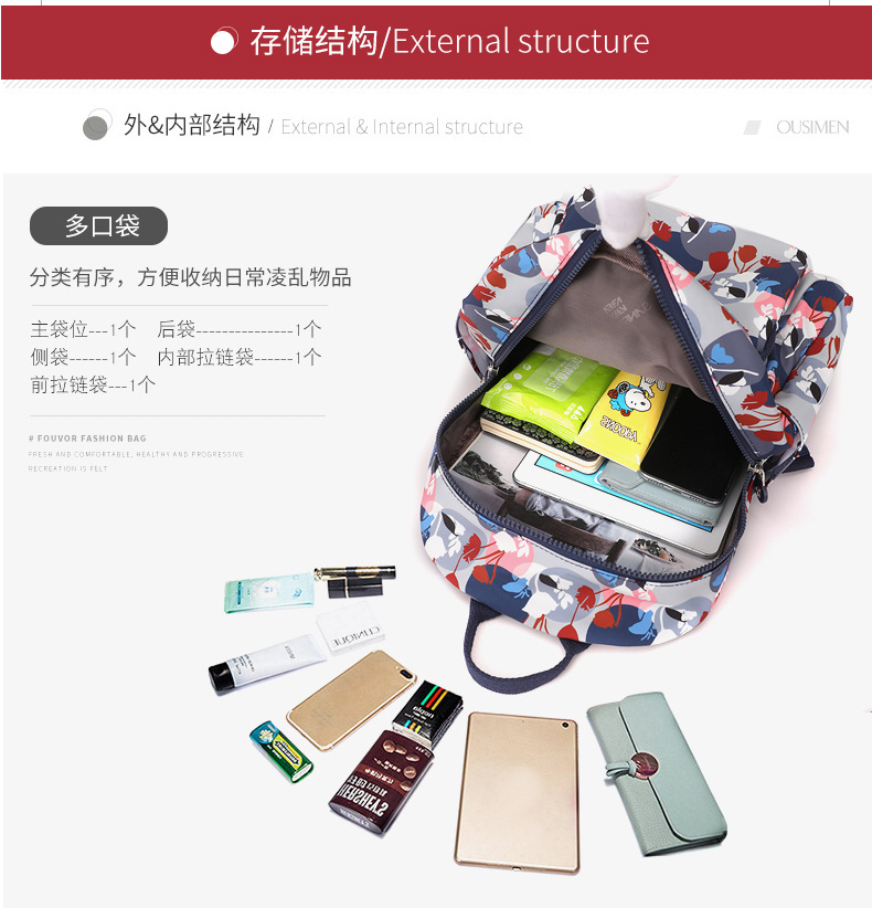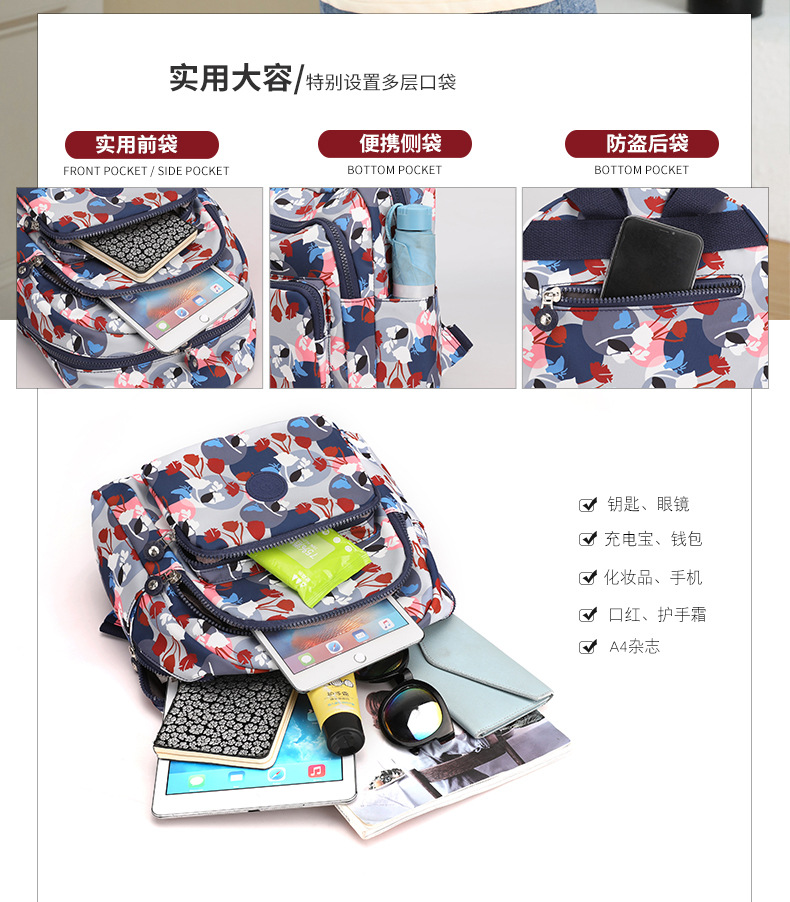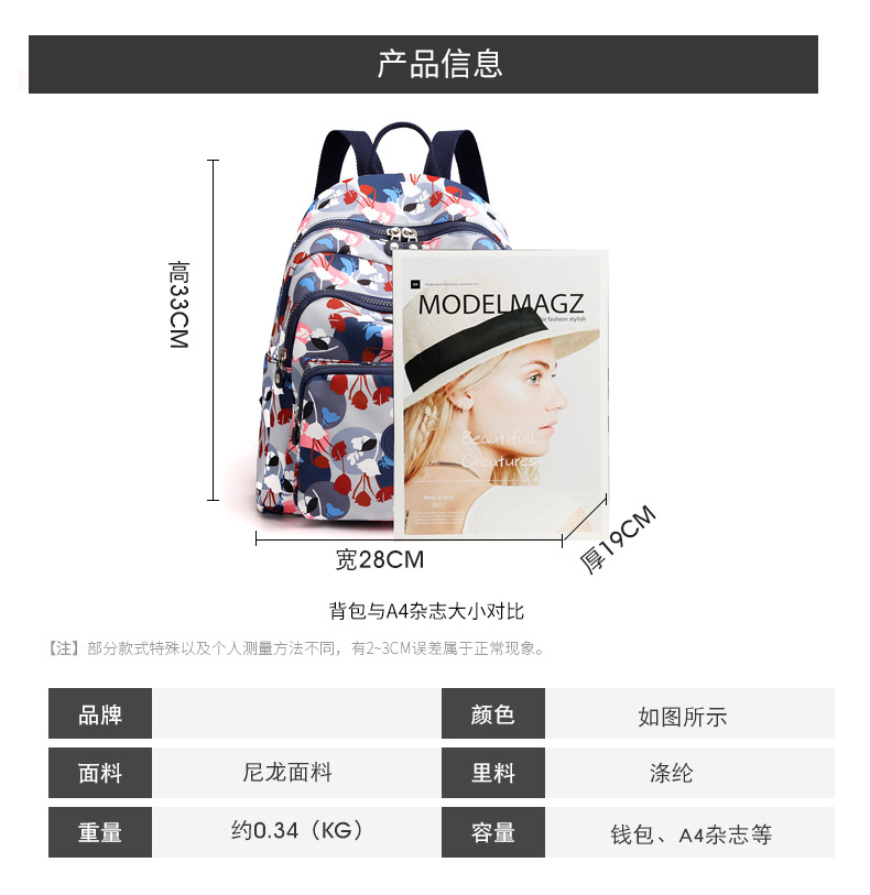 크로스보더 캐주얼 대용량 여성 백팩 2026 패션 프린트 여행용 백팩 나일론 천 통근 트렌디 백팩