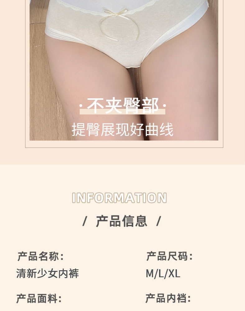 신장 긴팔 면화 여성 속옷 달콤한 미드 허리 5A 순수한면 항균 가랑이 통기성 소녀 브리프