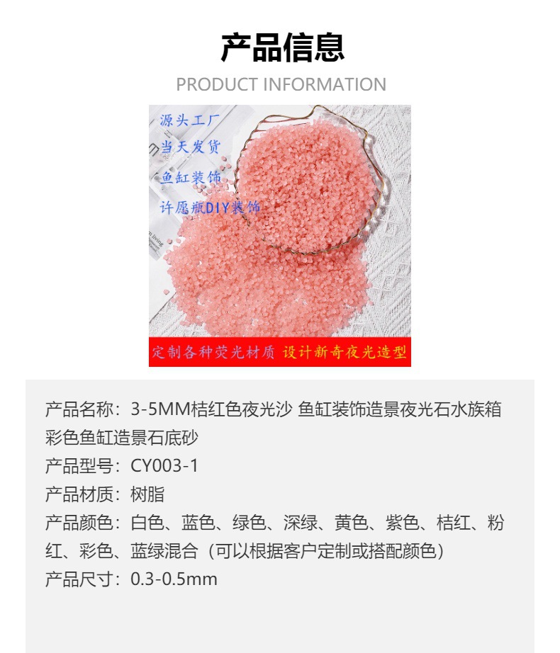 3-5MM 주황색 야광 모래 어항 장식 야광석 수족관 조경석 바닥 모래 주황색 수제스토어 가기