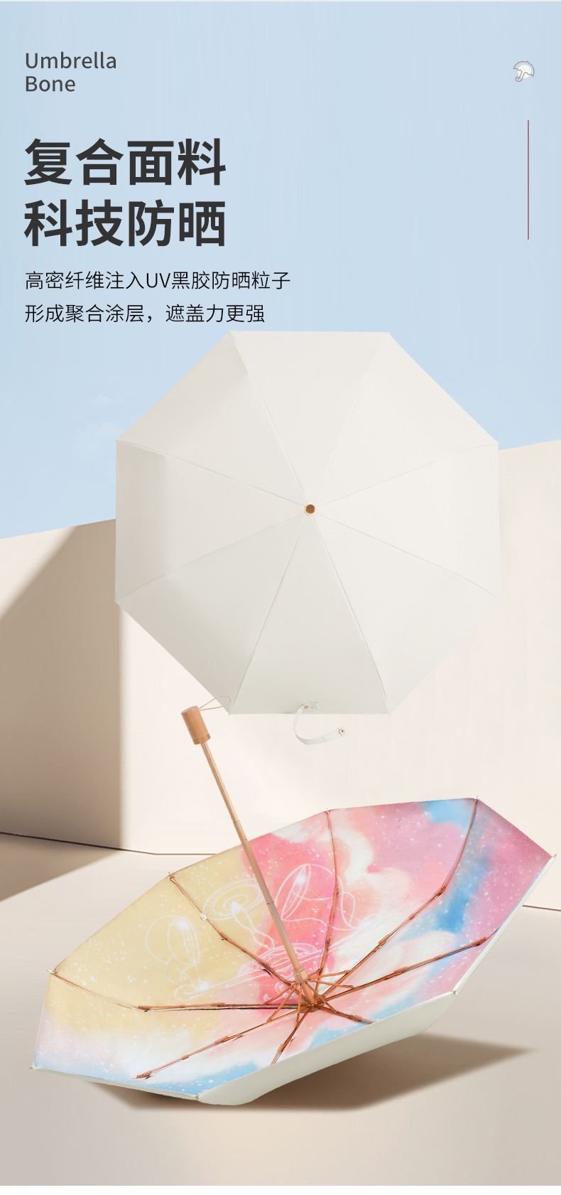 이중층 태양 우산 자외선 차단 양산 이중층 우산 블랙 글로시 초강력 자외선 차단 방풍 우산
