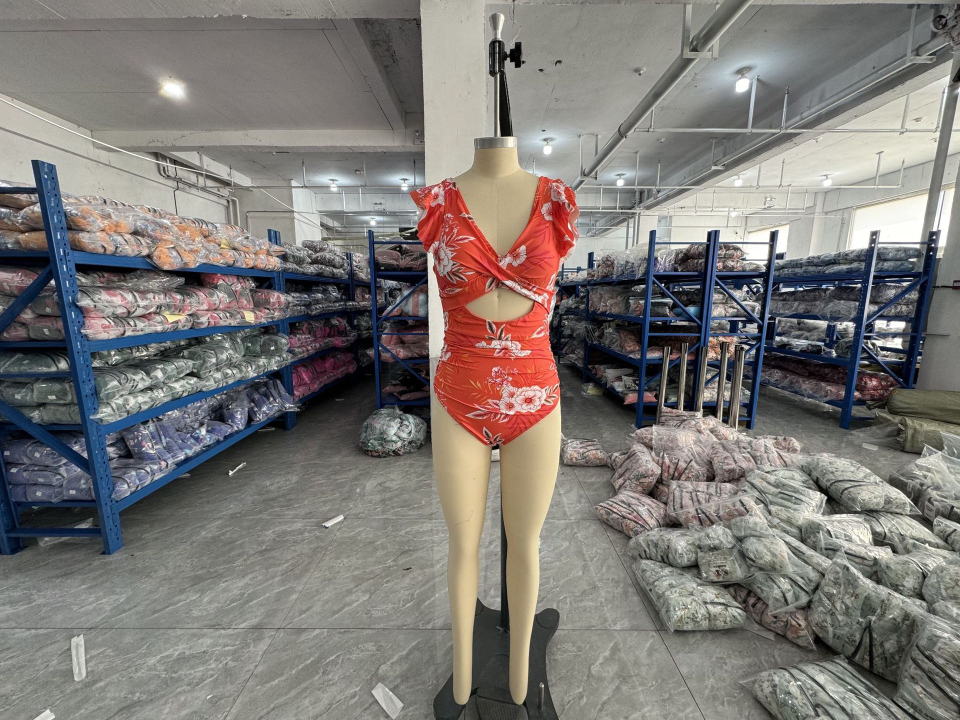 24 새로운 아마존 수영복 폭발 원피스 크로스 플라이 수영복 여성용 러플 대외 무역 수영복 비키니스토어 가기