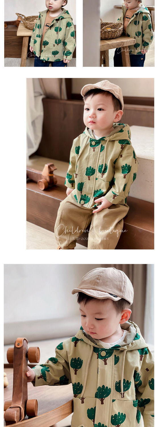 [작은그로브] 작은 나무 인쇄 후드 윈드브레이커 가을 아기 소년들과 소녀 보물 방풍 재킷 코트스토어 가기